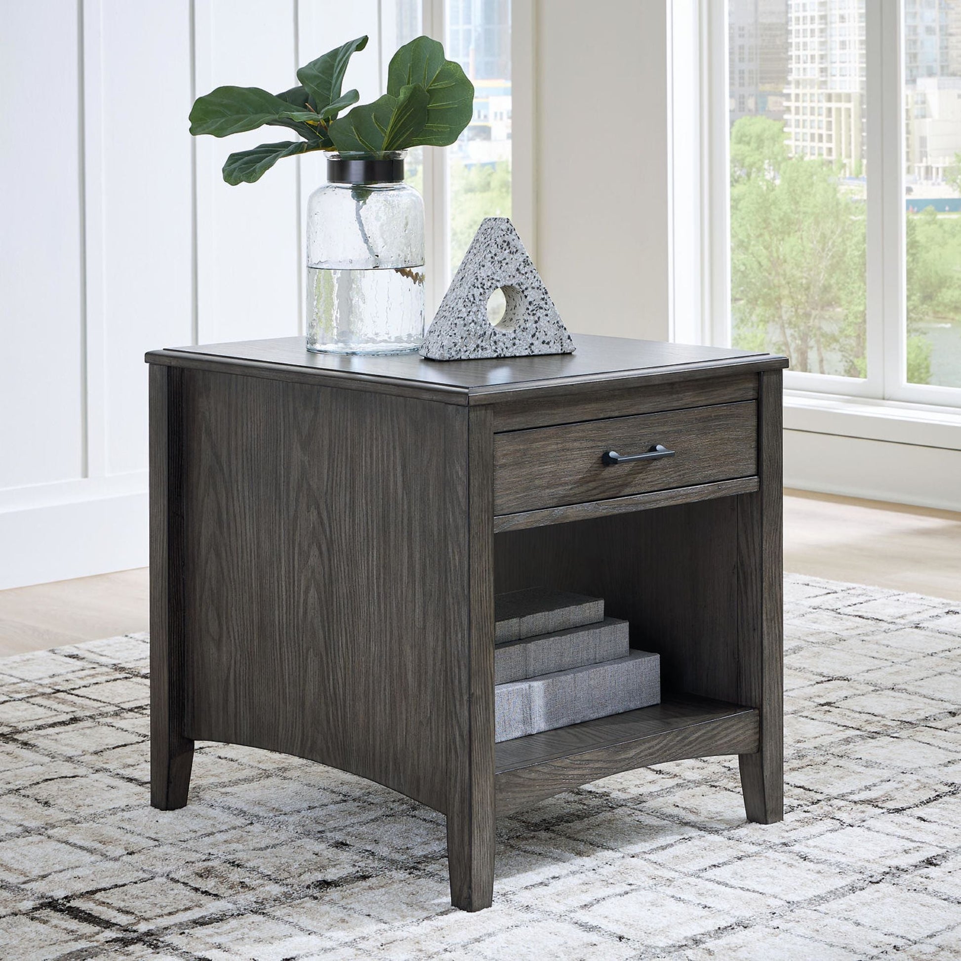 À la fois épurée et chaleureuse, la table d'appoint Montillan possède de nombreux atouts qui en font un choix idéal pour votre décoration. Parfait exemple du style « contemporain décontracté », cette pièce design séduit par sa texture de bois veiné en relief. Une étagère ouverte et un tiroir permettent de ranger facilement les petits objets comme votre liseuse, vos télécommandes et autres indispensables du quotidien. Enfin, sa finition gris-brun moyen, contrastant avec le grain de bois noirci, est d'une grande douceur.