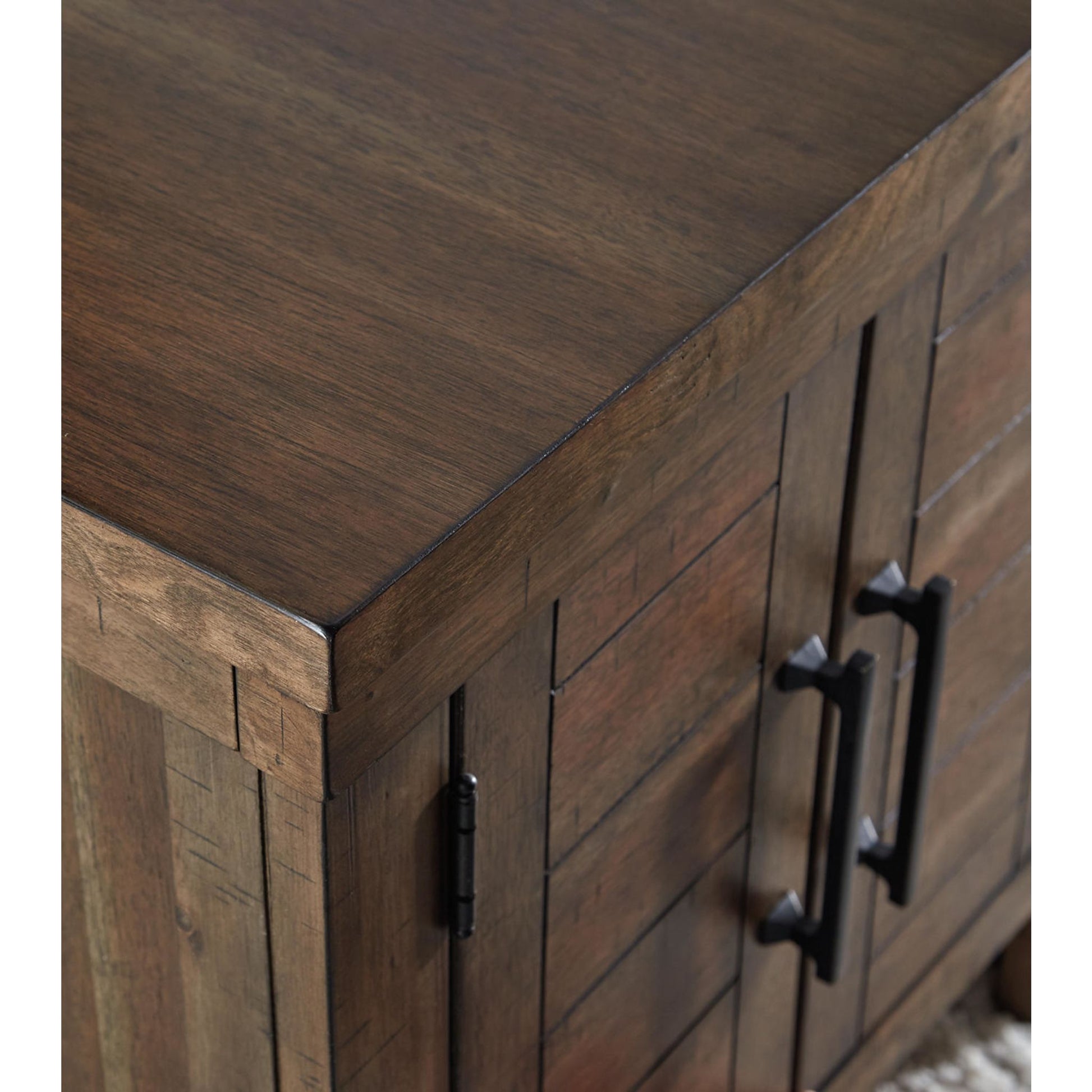 La table d'appoint Moriville peut sembler simple au premier abord. Mais en y regardant de plus près, on découvre toute sa beauté dans les détails. Avec ses portes d'armoire à effet planches, sa finition brun tabac et ses poignées couleur bronze vieilli, elle rayonne de charme. Grâce à son espace de rangement et son plateau, cette table d'appoint vous sera utile pendant de nombreuses années.
