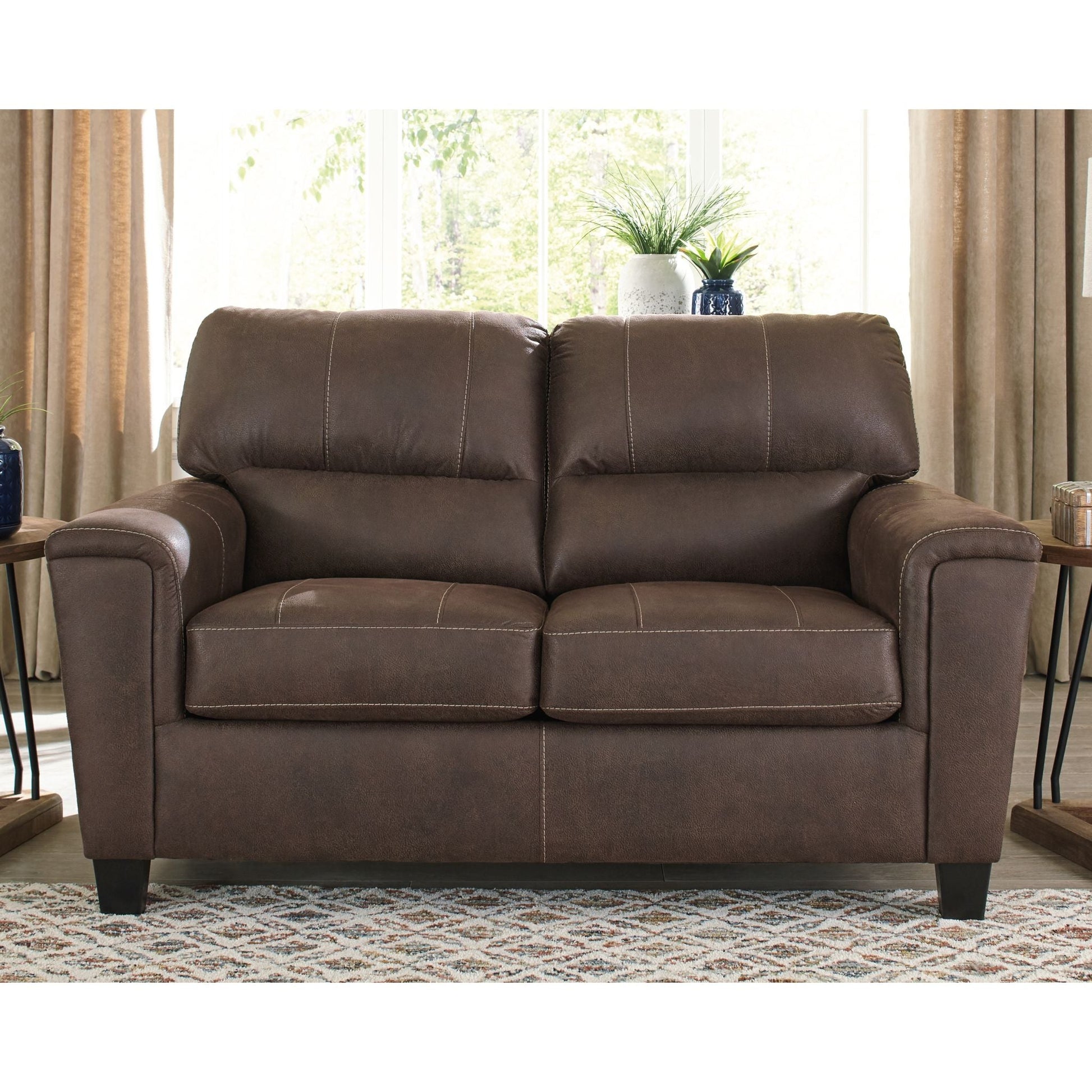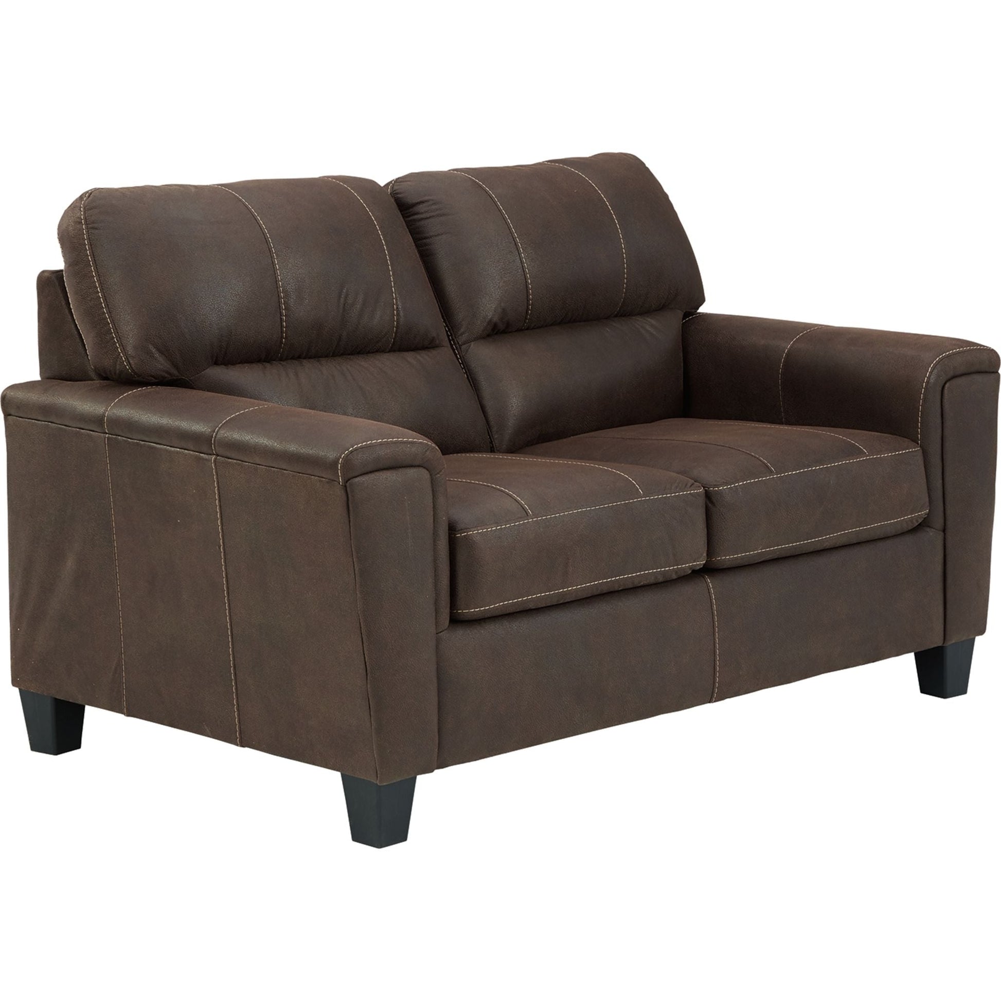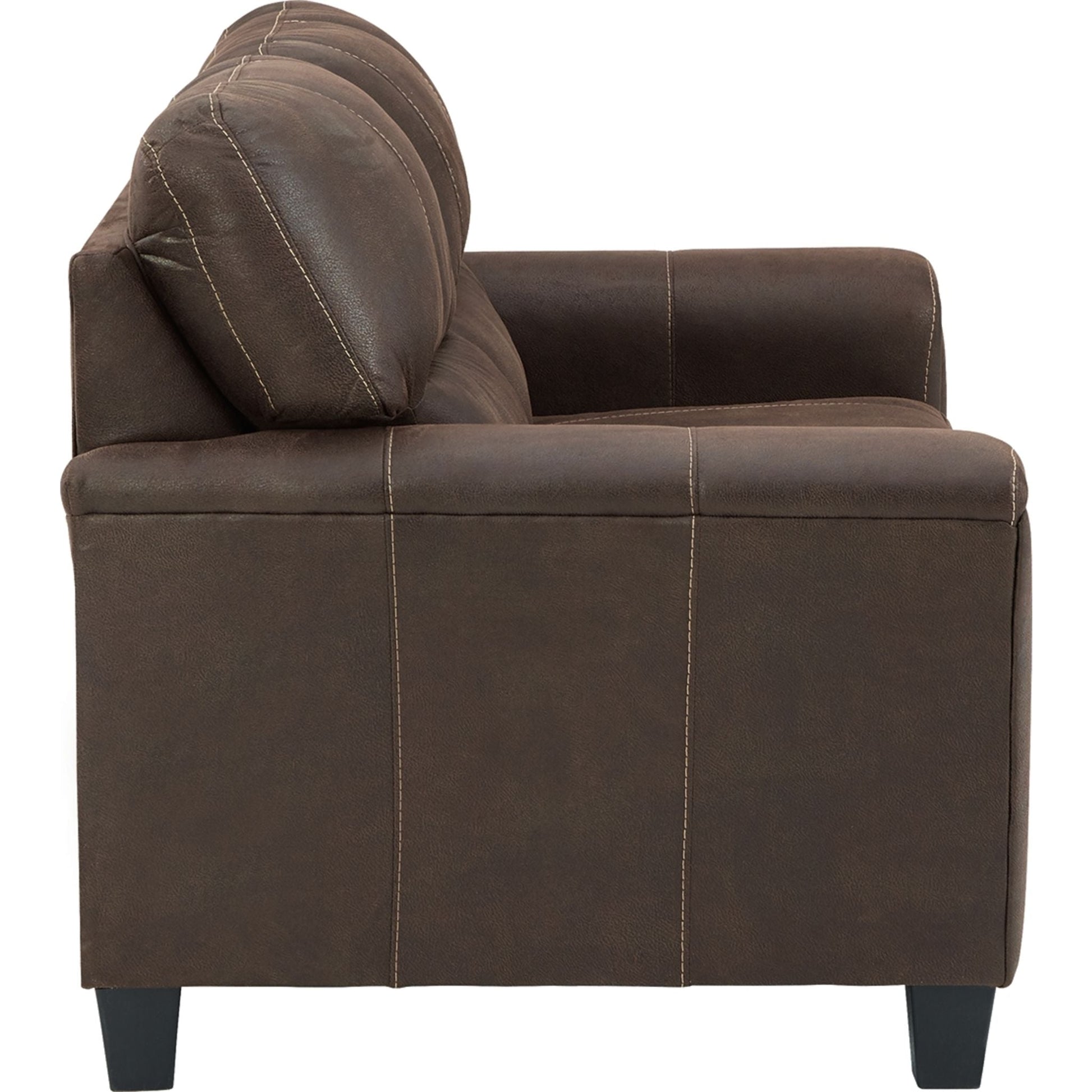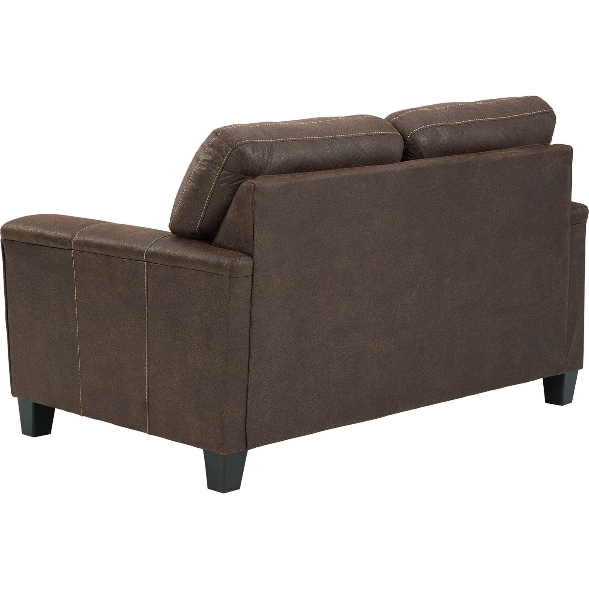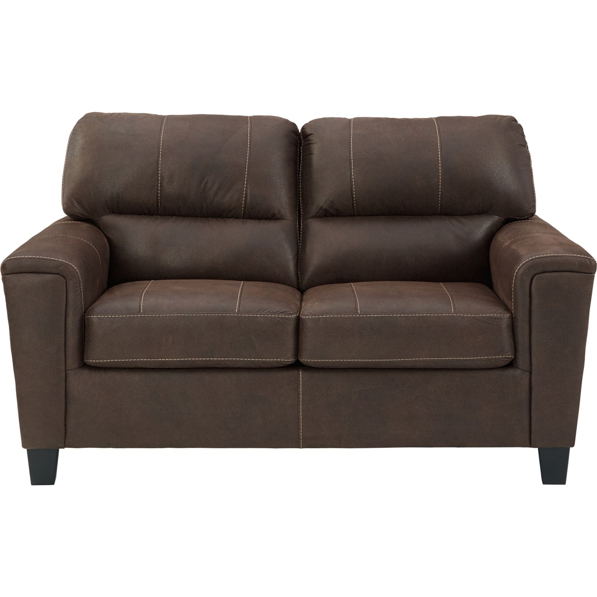 Si vous appréciez l'allure élégante du cuir mais rêvez du confort douillet du tissu, le canapé deux places Navi saura vous séduire. Revêtu d'un superbe similicuir à la teinte patinée et à la texture légèrement granuleuse, imitant à la perfection le cuir véritable, ce canapé résolument moderne prouve que la simplicité est la clé du confort. Ses lignes épurées, notamment ses flancs biseautés et ses accoudoirs droits recouverts d'un rembourrage moelleux, lui confèrent une touche de douceur supplémentaire. Les surpiqûres apparentes et le dossier divisé aux lignes nettes apportent une note résolument tendance.