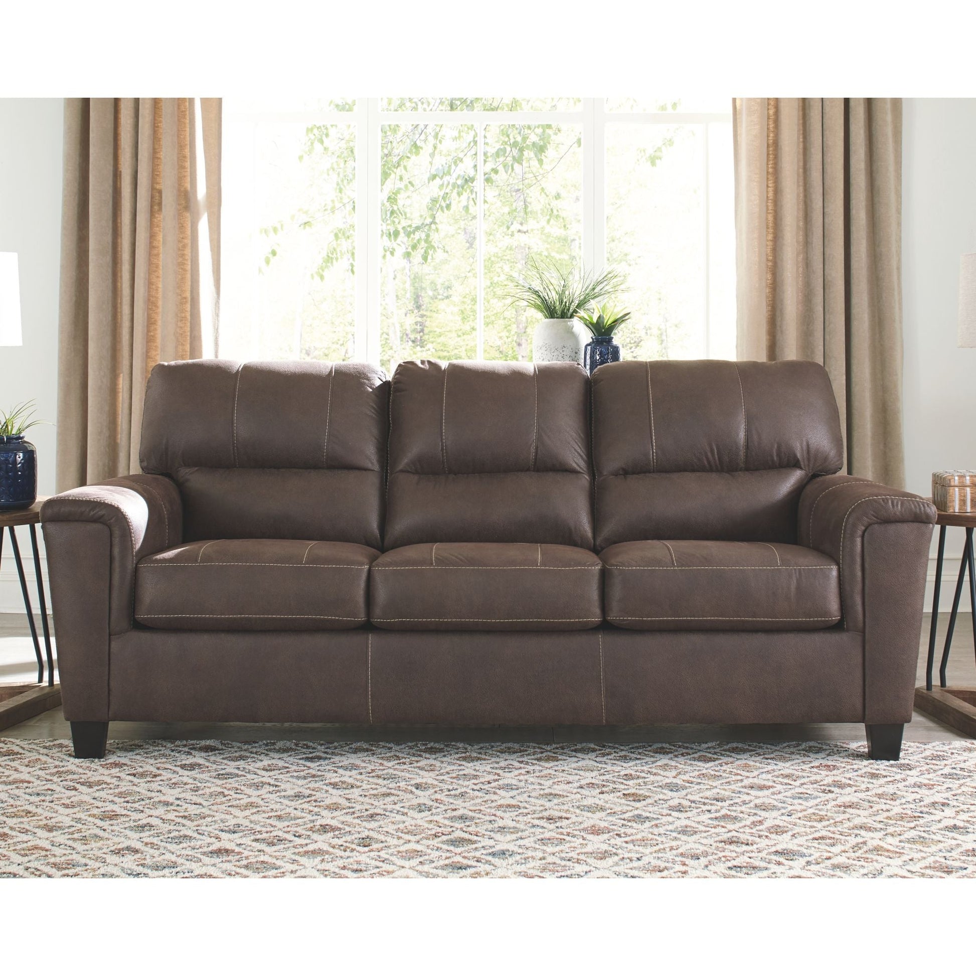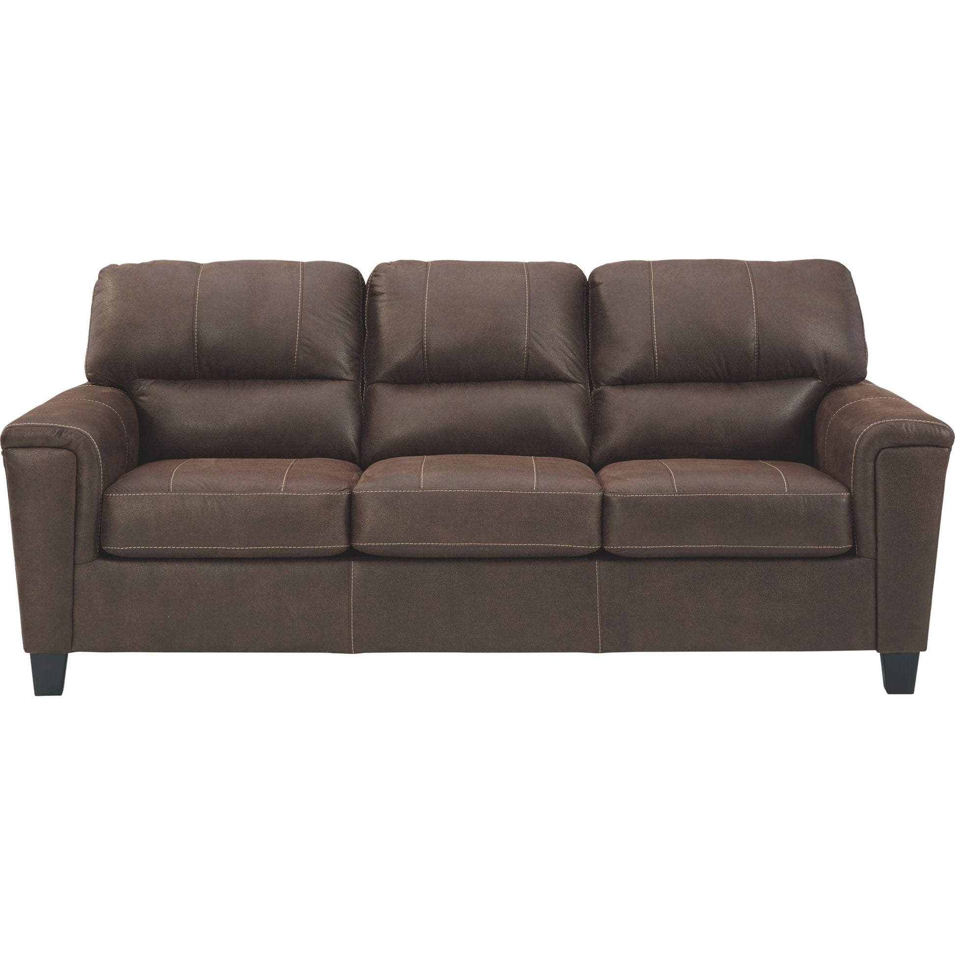 Si vous appréciez l'allure élégante du cuir mais rêvez du confort douillet du tissu, le canapé-lit Navi (taille queen) saura vous séduire. Revêtu d'un superbe similicuir à la teinte patinée et à la texture légèrement granuleuse, imitant à la perfection le cuir véritable, ce canapé résolument moderne prouve que la simplicité est la clé du confort. Ses lignes épurées, notamment les côtés biseautés et les accoudoirs droits recouverts d'un coussin moelleux, apportent une touche de douceur supplémentaire. Les surpiqûres apparentes et le dossier divisé aux lignes nettes lui confèrent une allure résolument tendance. Et pour un confort optimal, son matelas en mousse à mémoire de forme (taille queen) accueillera vos invités pour la nuit.