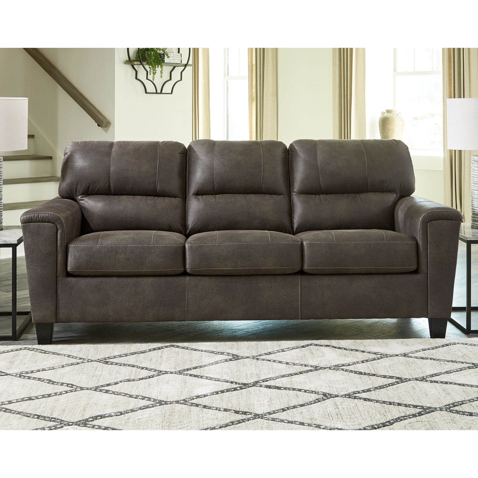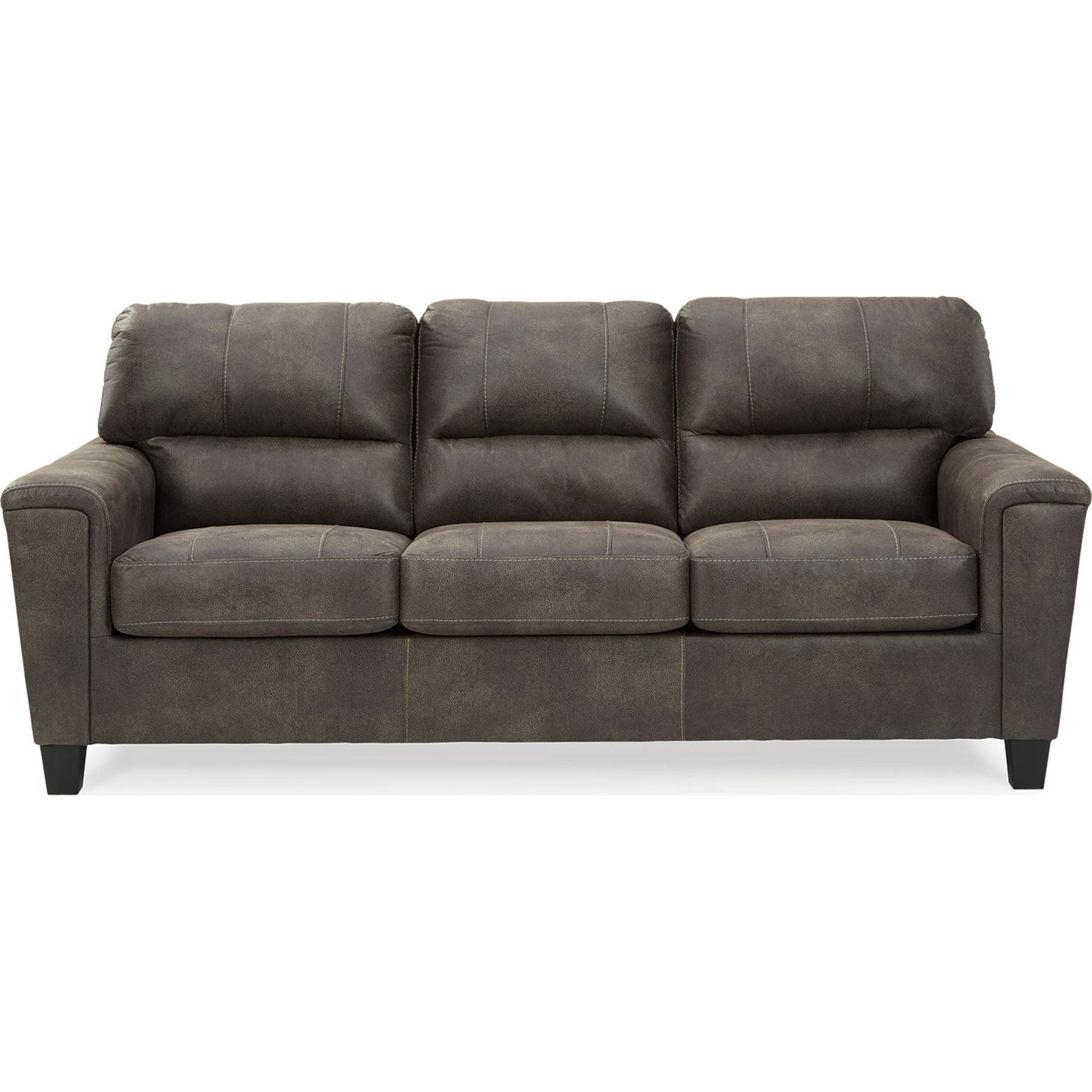 Si vous appréciez l'allure élégante du cuir mais rêvez du confort douillet du tissu, le canapé-lit Navi (taille queen) saura vous séduire. Revêtu d'un superbe similicuir à la teinte patinée et à la texture légèrement granuleuse, imitant à la perfection le cuir véritable, ce canapé résolument moderne prouve que la simplicité est la clé du confort. Ses lignes épurées, notamment les côtés biseautés et les accoudoirs droits recouverts d'un coussin moelleux, apportent une touche de douceur supplémentaire. Les surpiqûres apparentes et le dossier divisé aux lignes nettes lui confèrent une allure résolument tendance. Et pour un confort optimal, son matelas en mousse à mémoire de forme (taille queen) accueillera vos invités pour la nuit.