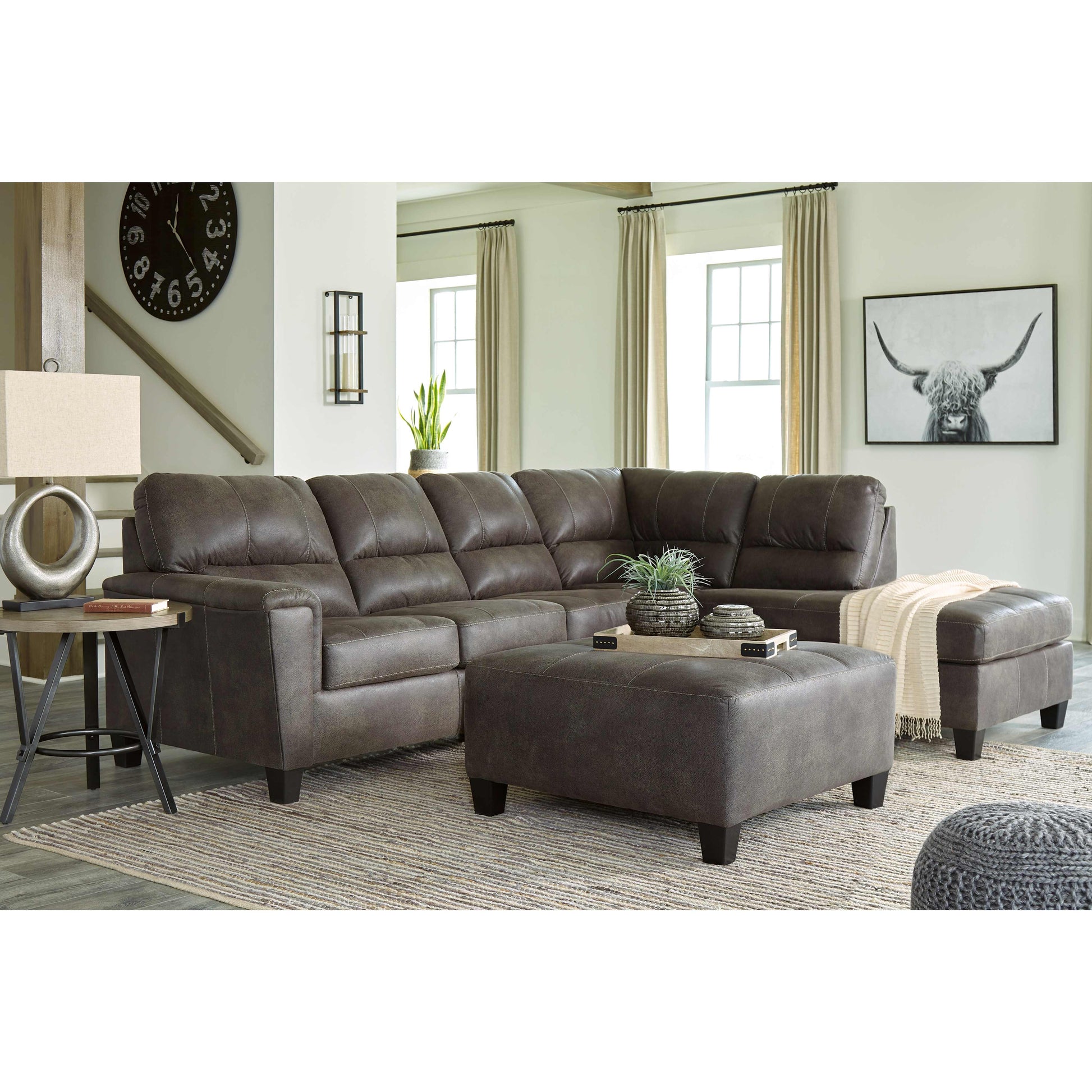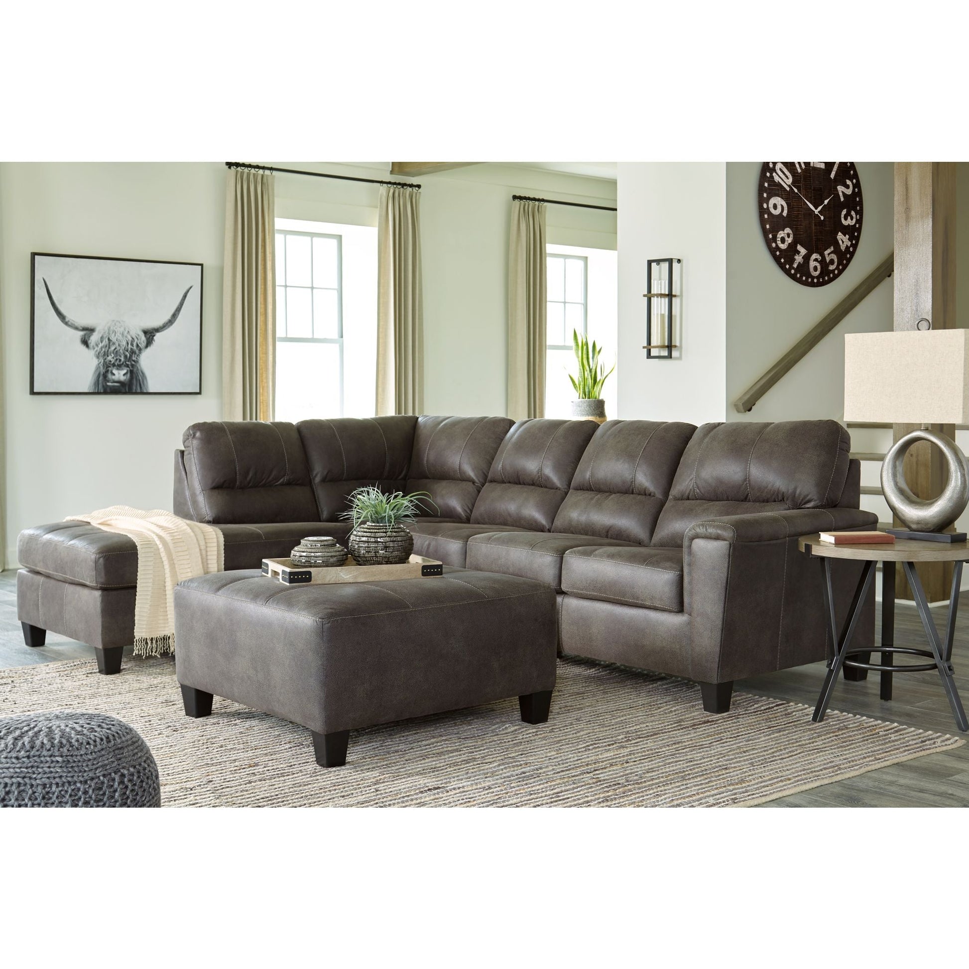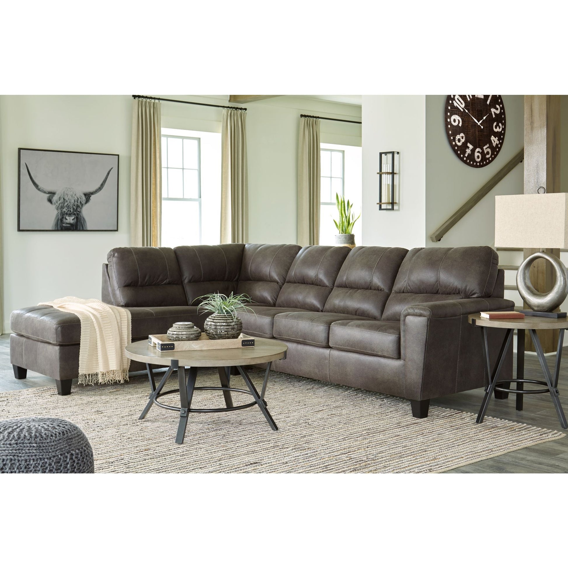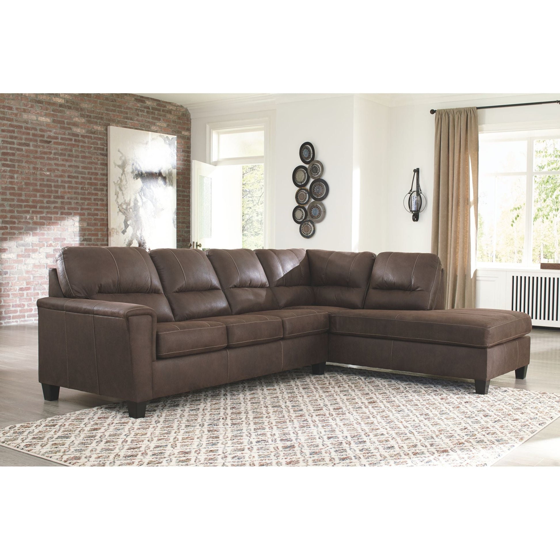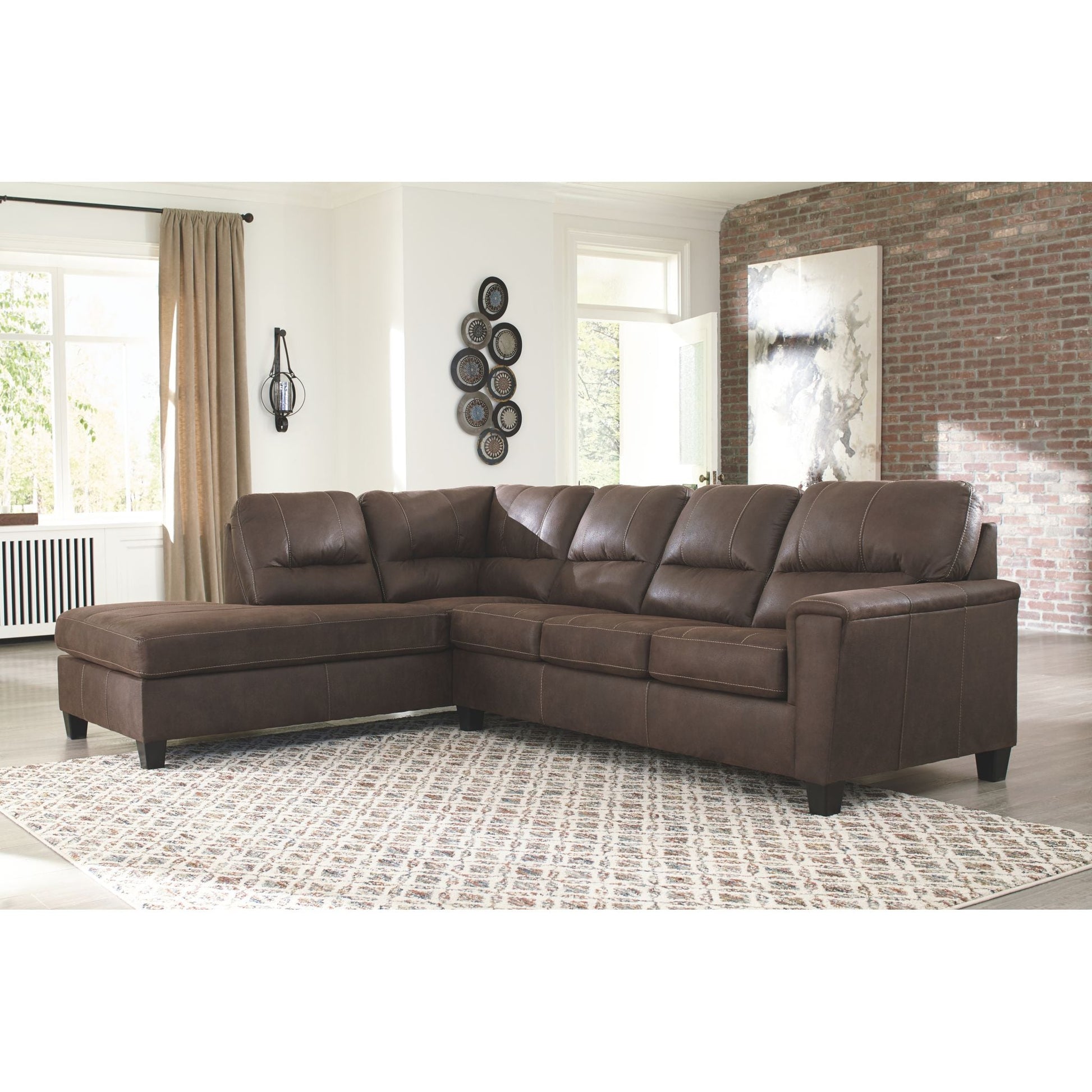Si vous appréciez l'allure élégante du cuir mais rêvez de la douceur du tissu, le canapé-lit d'angle McCammon saura vous séduire. Revêtu d'un superbe similicuir à la teinte patinée et à la texture légèrement granuleuse, imitant à la perfection le cuir véritable, ce canapé d'angle résolument moderne prouve que la simplicité est la clé du confort. Ses lignes épurées, notamment ses côtés biseautés et ses accoudoirs droits recouverts d'un coussin moelleux, lui confèrent un charme supplémentaire. Les surpiqûres apparentes et le dossier divisé aux lignes nettes apportent une touche de modernité. Et pour un confort optimal, son matelas queen en mousse à mémoire de forme accueillera vos invités pour la nuit.