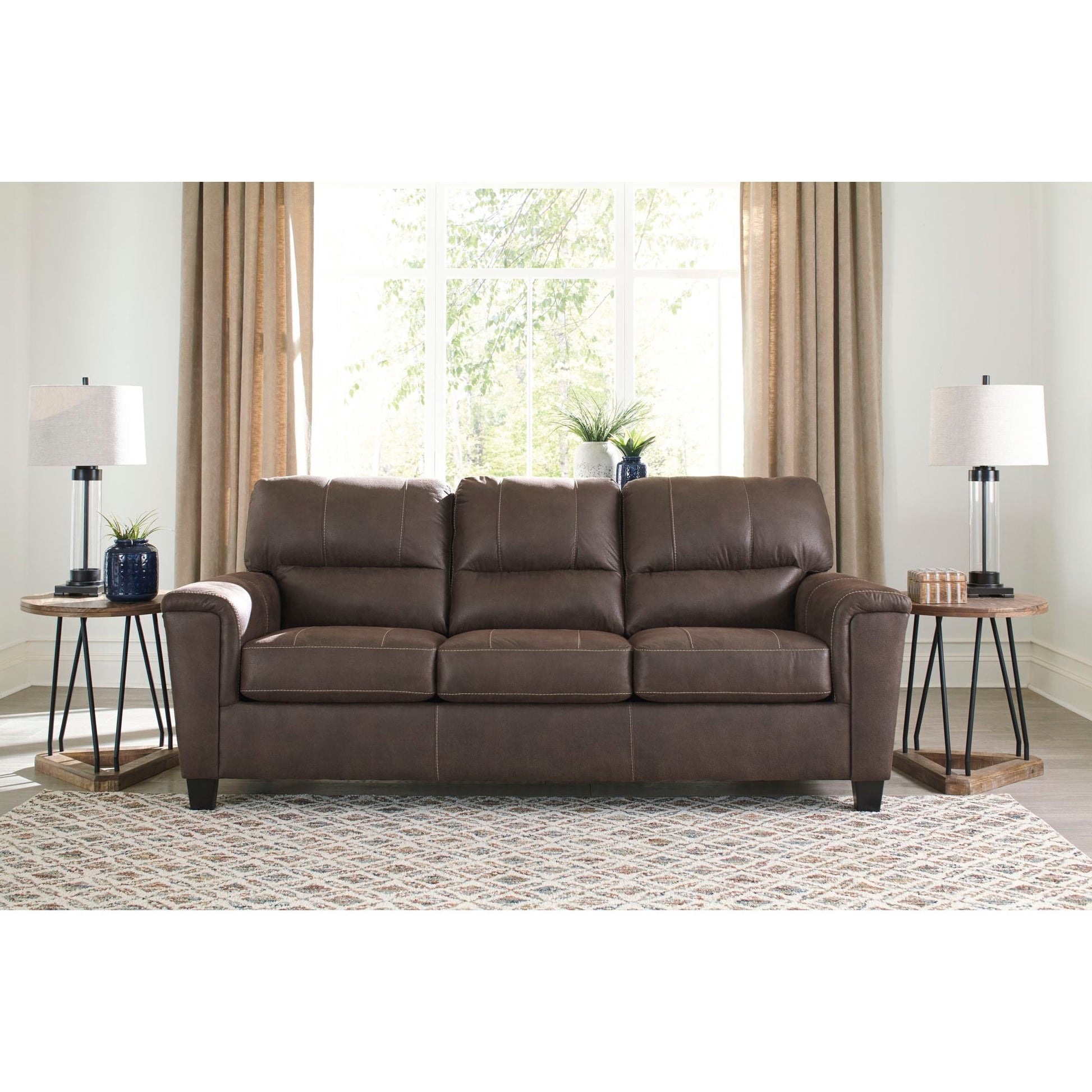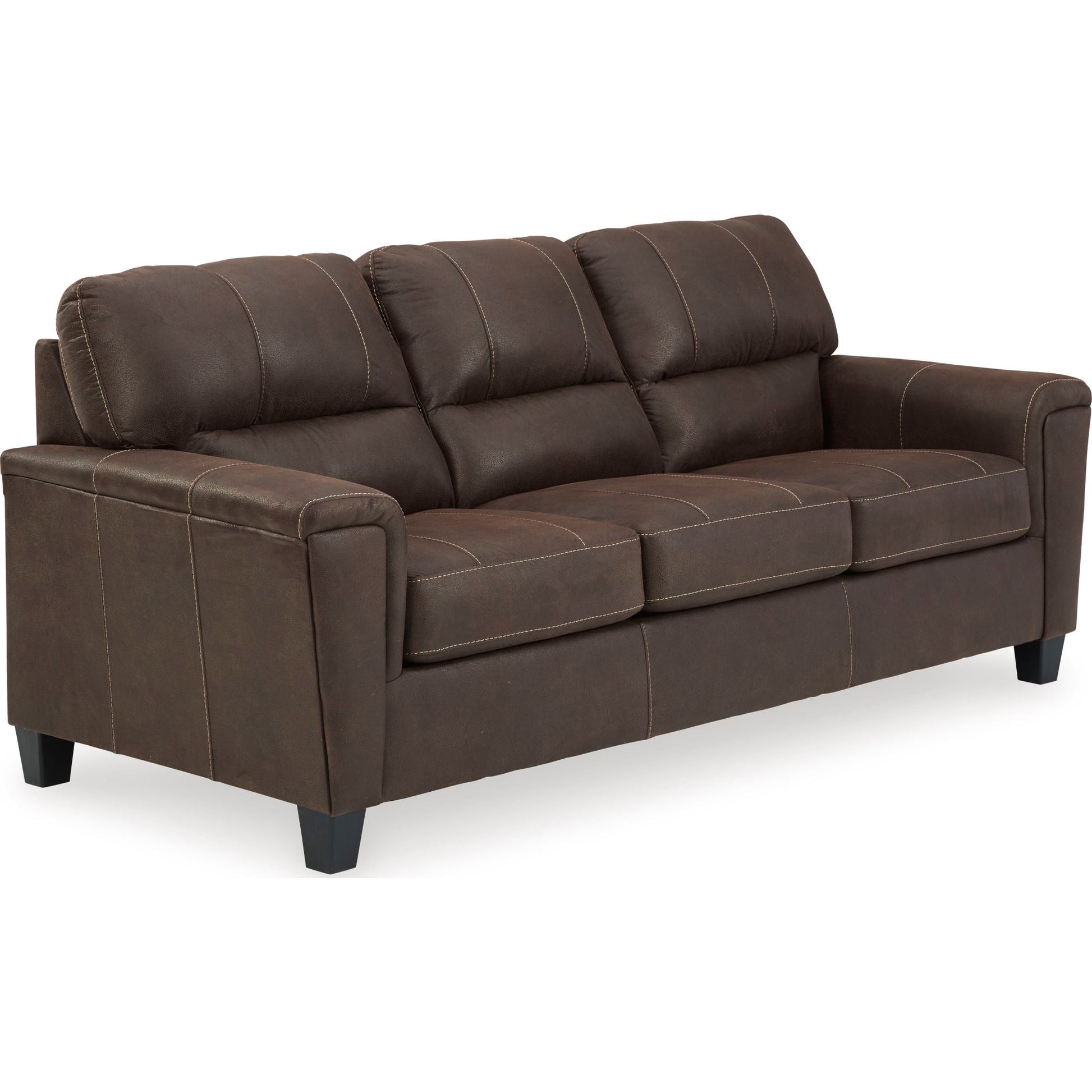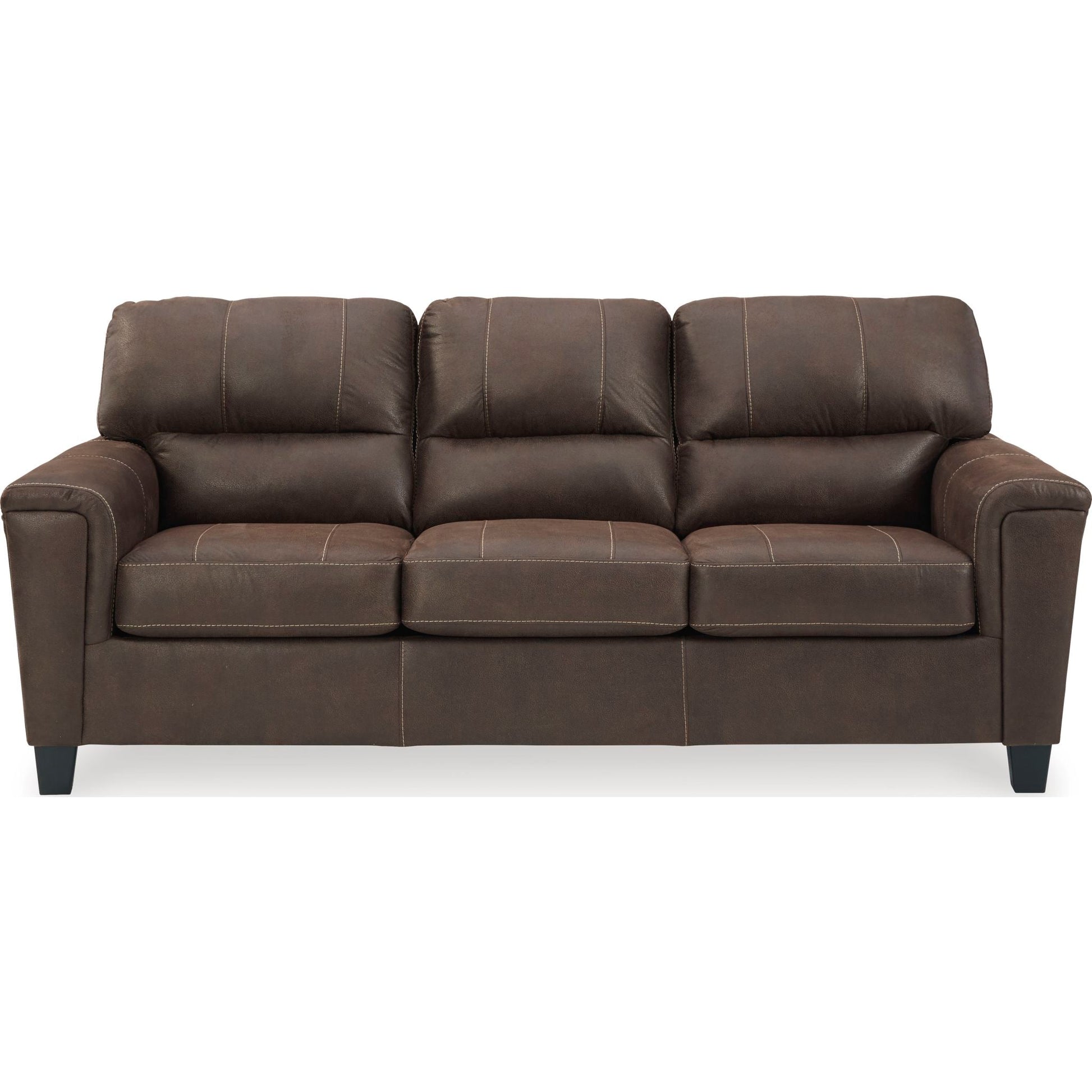 Si vous appréciez l'allure élégante du cuir mais rêvez du confort douillet du tissu, le canapé Navi saura vous séduire. Revêtu d'un superbe similicuir à la teinte patinée et à la texture légèrement granuleuse, imitant à la perfection le cuir véritable, ce canapé résolument moderne prouve que la simplicité est la clé du confort. Ses lignes épurées, notamment ses côtés biseautés et ses accoudoirs droits recouverts d'un coussin moelleux, lui confèrent une touche de douceur supplémentaire. Les surpiqûres apparentes et le dossier divisé aux lignes nettes apportent une note résolument tendance.