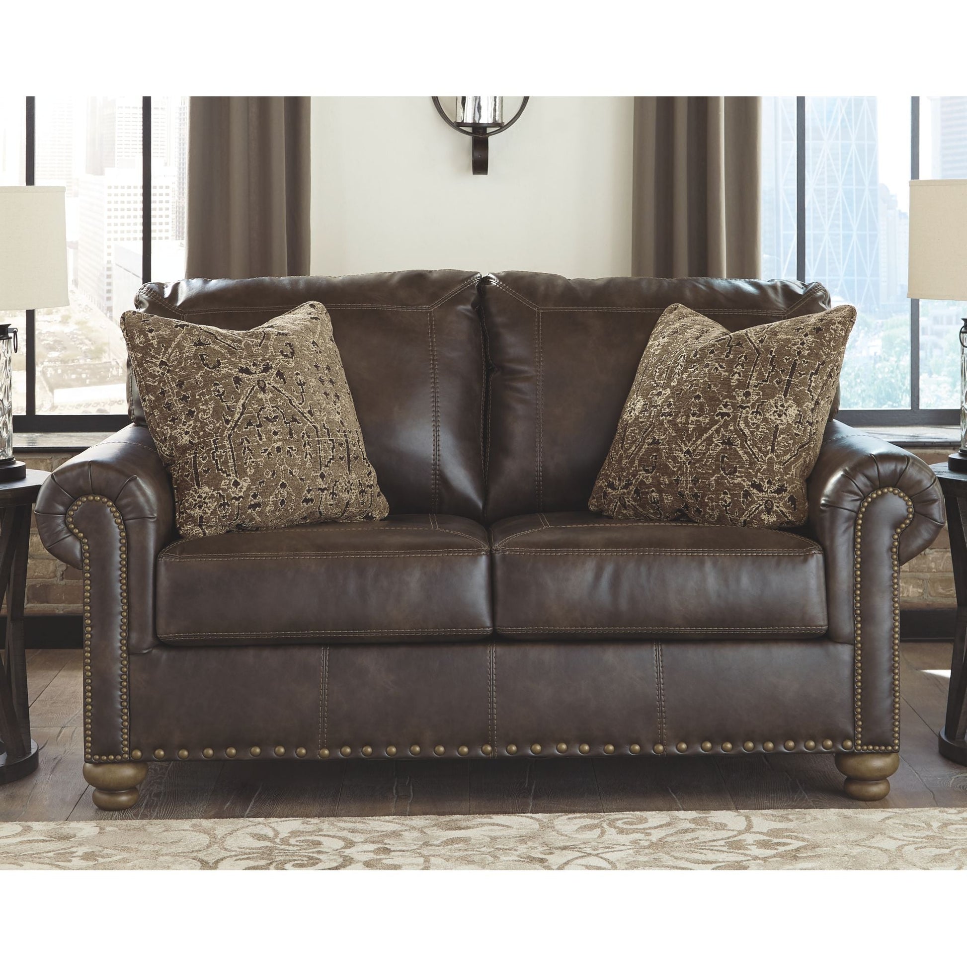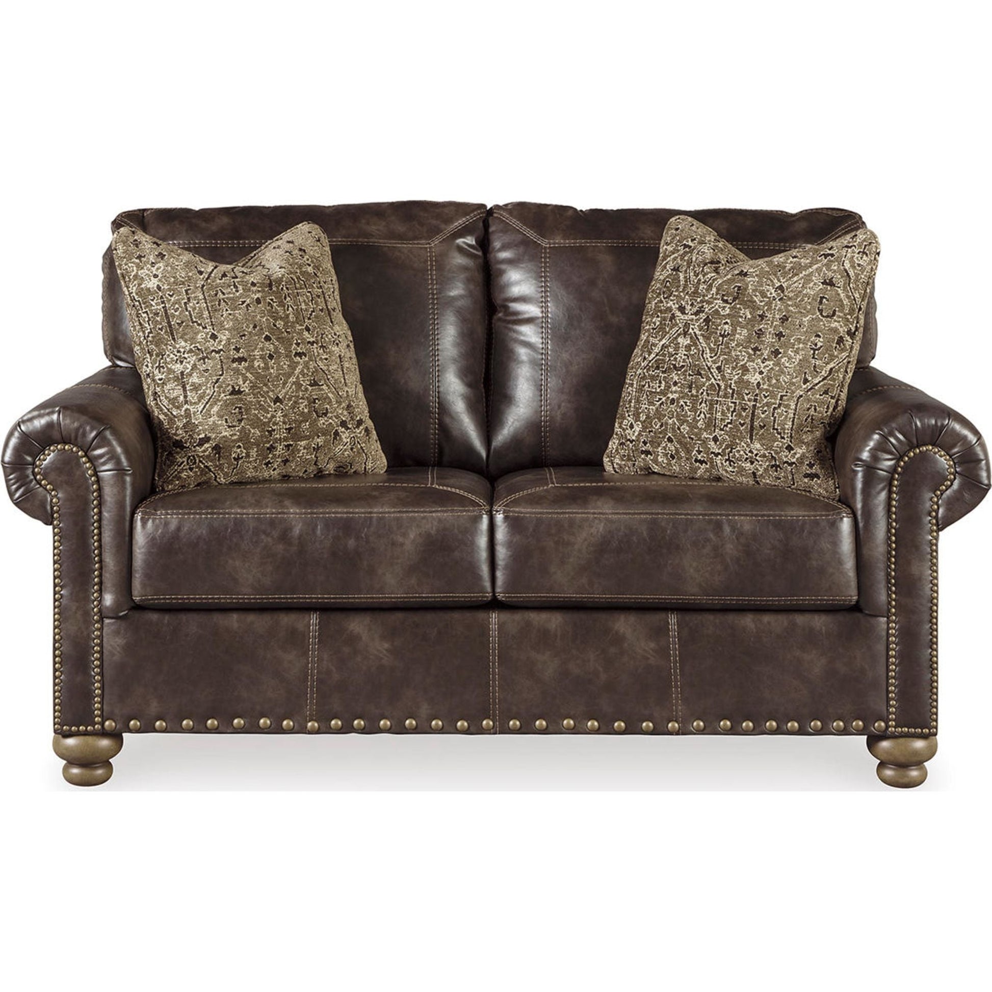 Avec son revêtement en similicuir brun café, rehaussé d'un effet légèrement vieilli et de surpiqûres design, le canapé deux places Nicorvo allie un style traditionnel raffiné à un confort moderne. Ses accoudoirs arrondis, ses pieds tournés et sa garniture cloutée lui confèrent un caractère distinctif. Deux coussins à motif jacquard apportent une touche de luxe.