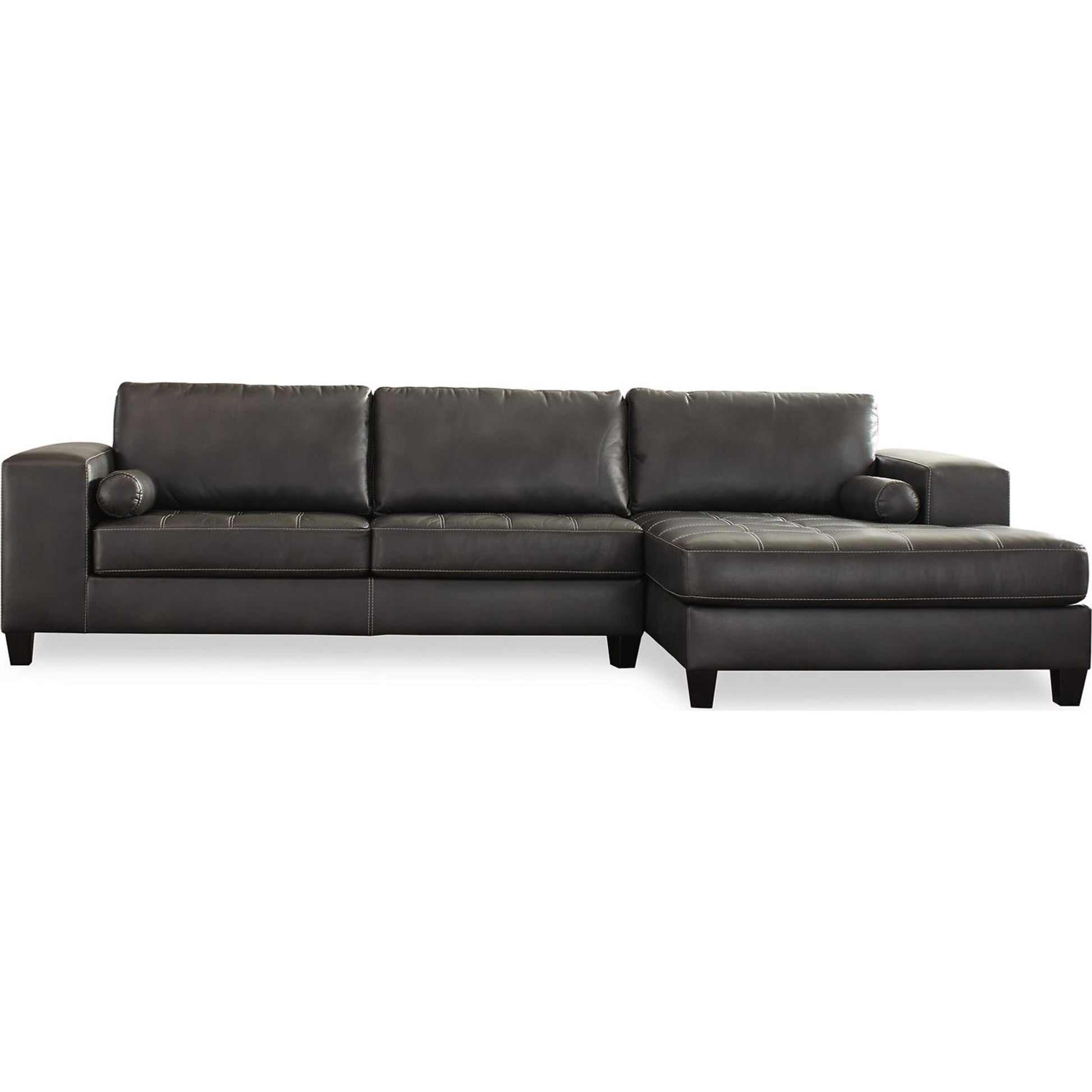 Le mot « simple » n'a pas sa place dans le vocabulaire du canapé d'angle Nokomis. Son dossier bas et ses larges accoudoirs lui confèrent un style résolument moderne. Un rembourrage moelleux, judicieusement placé, lui donne une allure élégante et racée. Le similicuir anthracite, à l'effet grain naturel embossé et à la finition mate, s'inspire des cuirs européens contemporains. Les surpiqûres gris clair apportent du contraste, et le capitonnage des assises place cet ensemble dans une catégorie à part.