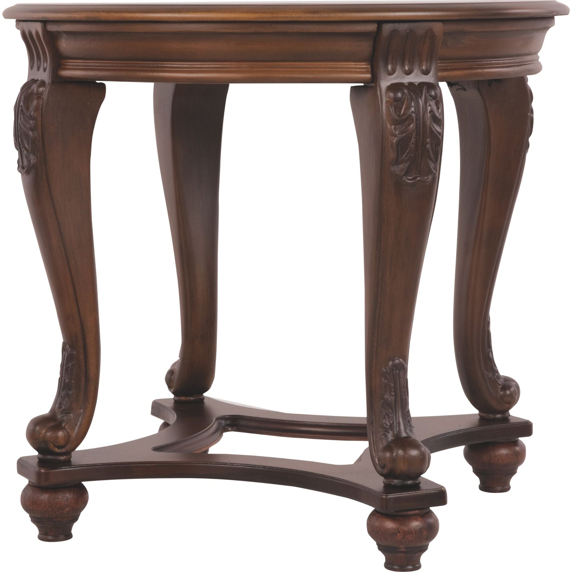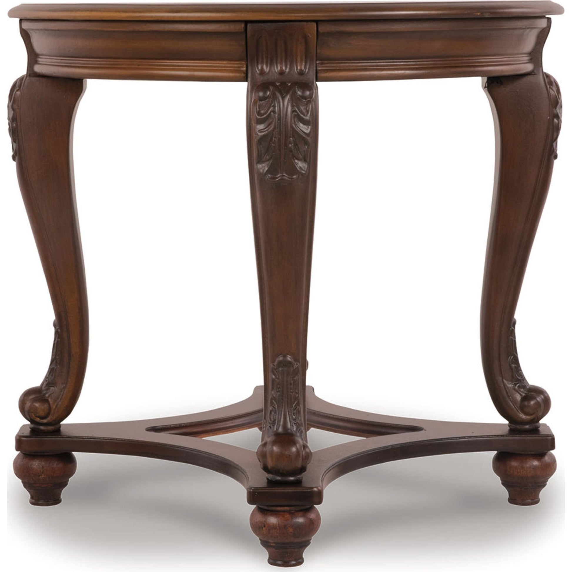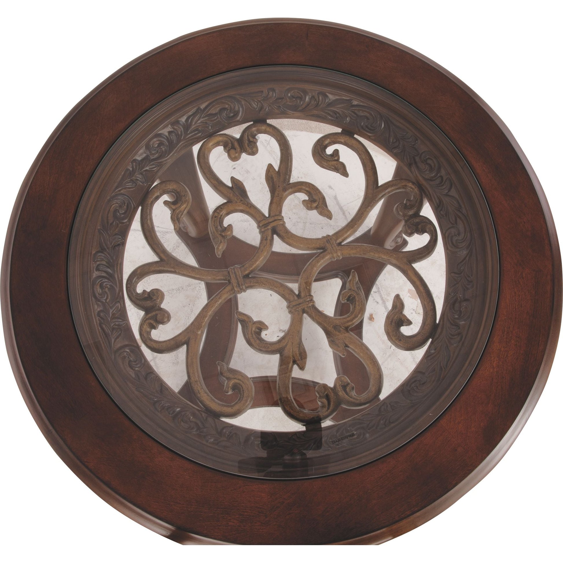 La table d'appoint ronde Norcastle mérite d'être saluée pour l'harmonieuse combinaison de ses éléments. Des volutes métalliques apportent une belle profondeur sous le plateau en verre biseauté. Leur motif original se retrouve dans les sculptures et les courbes des pieds et des entretoises richement teintés.