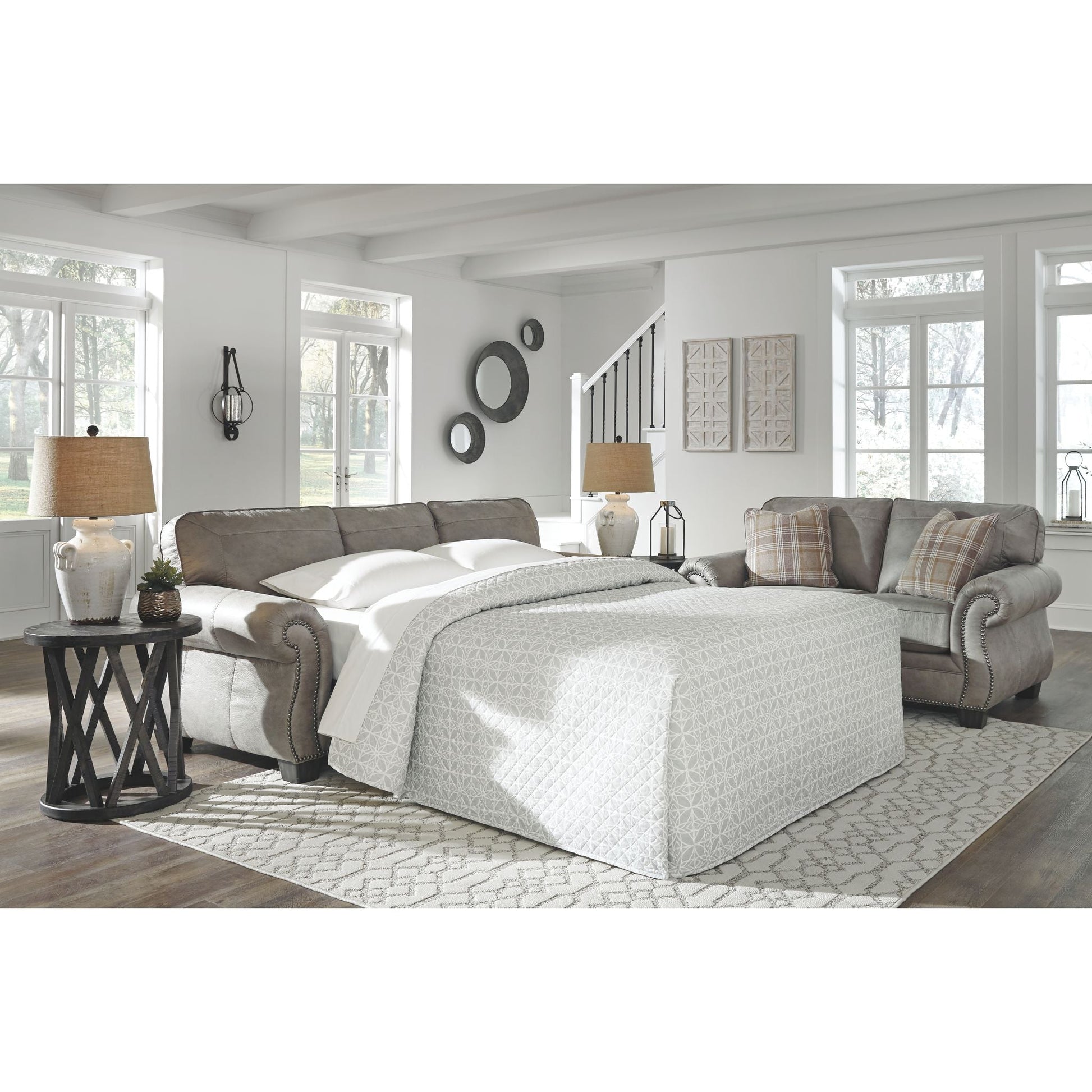 Alliant harmonieusement classicisme et modernité, le canapé-lit Olsberg vous invite à savourer le meilleur d'hier et d'aujourd'hui. Revêtu d'un superbe tissu gris acier au toucher somptueux, semblable à du daim, ce canapé-lit à la fois élégant et facile à vivre séduit par son style revisité avec accoudoirs arrondis et ses finitions soignées, telles que les clous décoratifs et les surpiqûres à carreaux. Ce qui est invisible n'est pas en reste : les coussins d'assise réversibles, confectionnés avec nos ressorts haut de gamme, offrent un confort optimal et un excellent maintien. Le matelas dépliable Queen, en mousse à mémoire de forme de qualité, accueille vos invités pour la nuit.