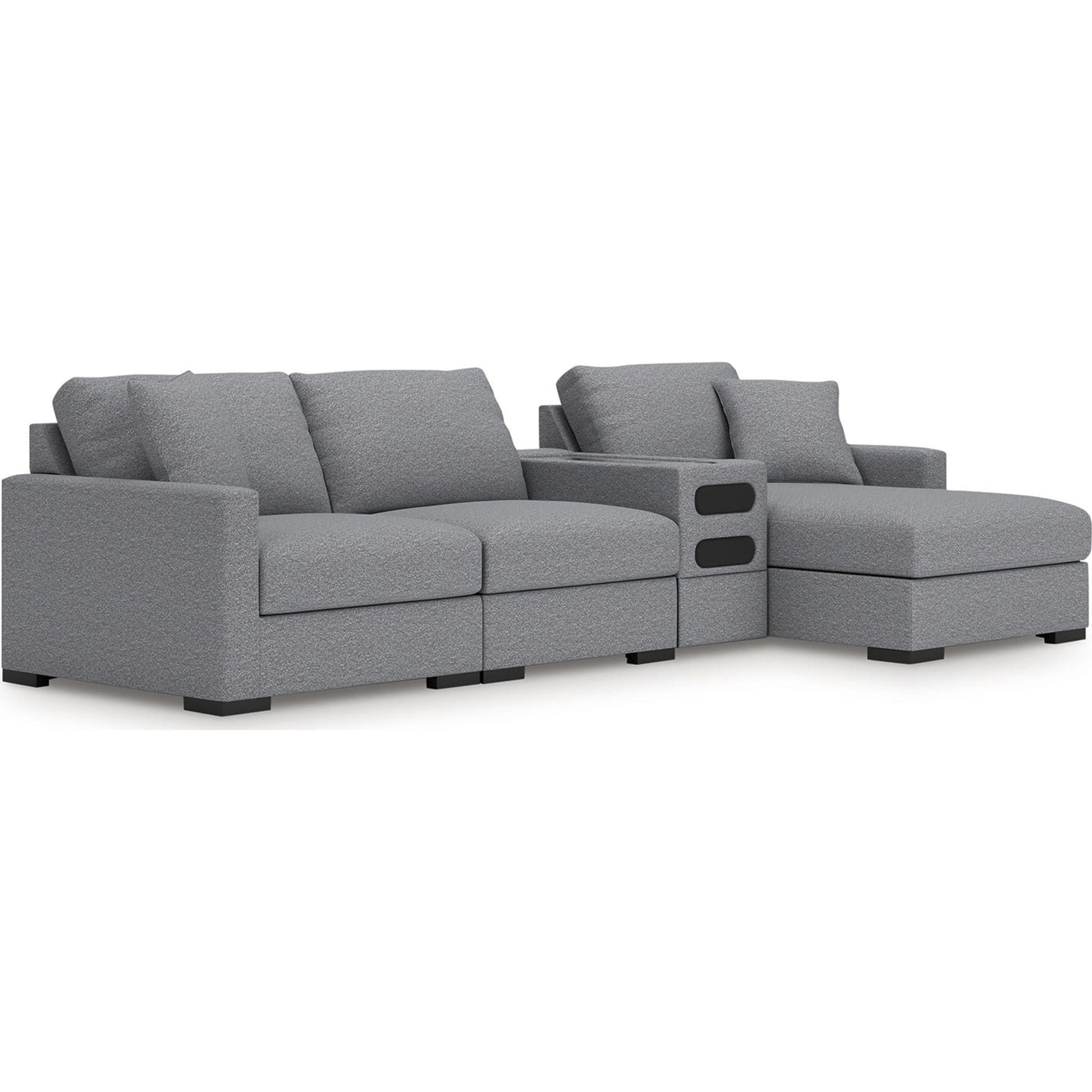 Canapé d'angle modulaire 4 pièces exclusif à Omaha, avec système audio et méridienne