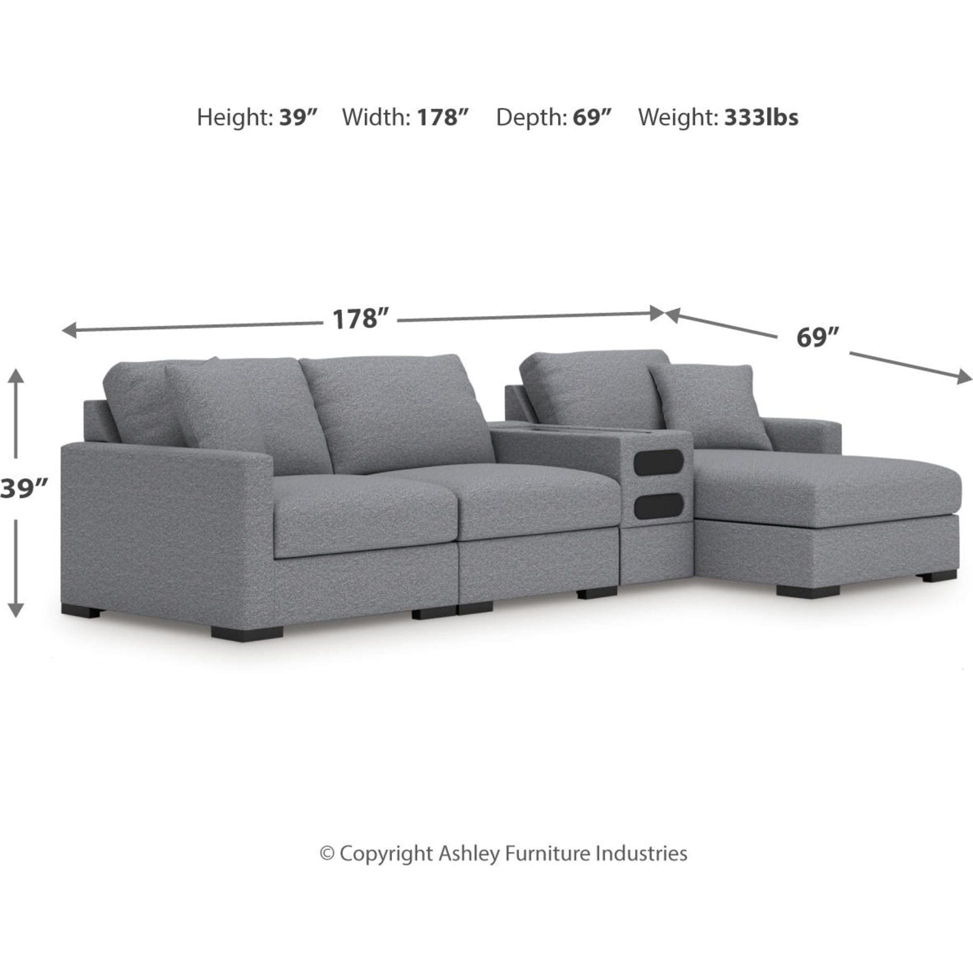 Le canapé d'angle Omaha avec méridienne évolue au rythme des besoins de votre famille. Son design modulaire adaptable facilite l'agencement et le réaménagement. Le désordre dans le salon vous stresse ? Nettoyer devient un jeu d'enfant grâce au tissu Next-Gen Nuvella™ résistant aux taches et durable. Une console de rangement avec système audio intégré transforme vos soirées cinéma en famille ou vos sessions de jeux vidéo entre amis en une expérience immersive. Doté de ports de chargement USB, ce canapé d'angle allie style et fonctionnalité pour des moments de détente au quotidien.
