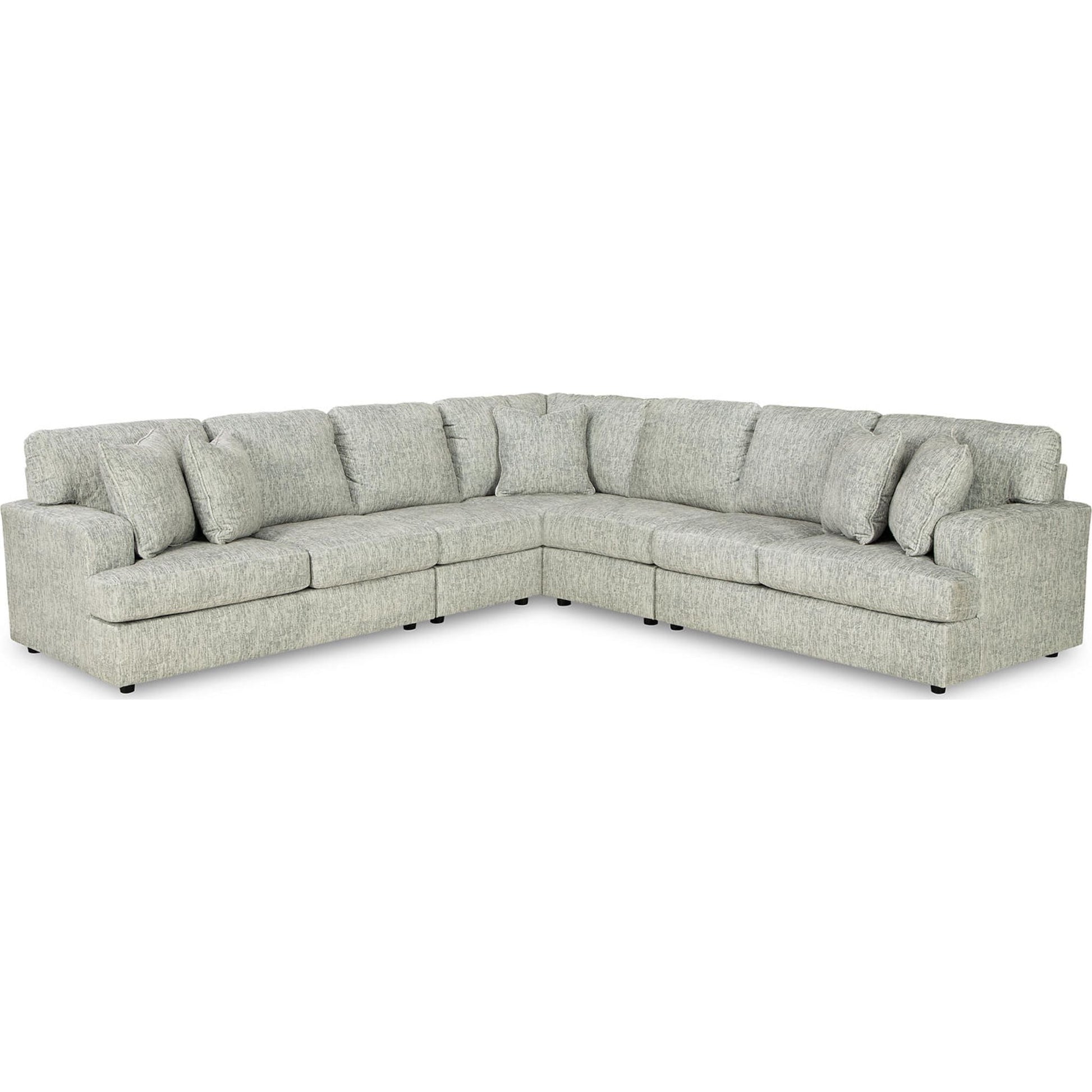 Le canapé d'angle Playwrite crée l'ambiance idéale pour de précieux souvenirs dans votre salon contemporain. Son confort douillet est irrésistible, grâce à ses coussins généreux, ses accoudoirs aux lignes épurées et son revêtement en tissu gris doux. Vous serez conquis par ce meuble exceptionnel.