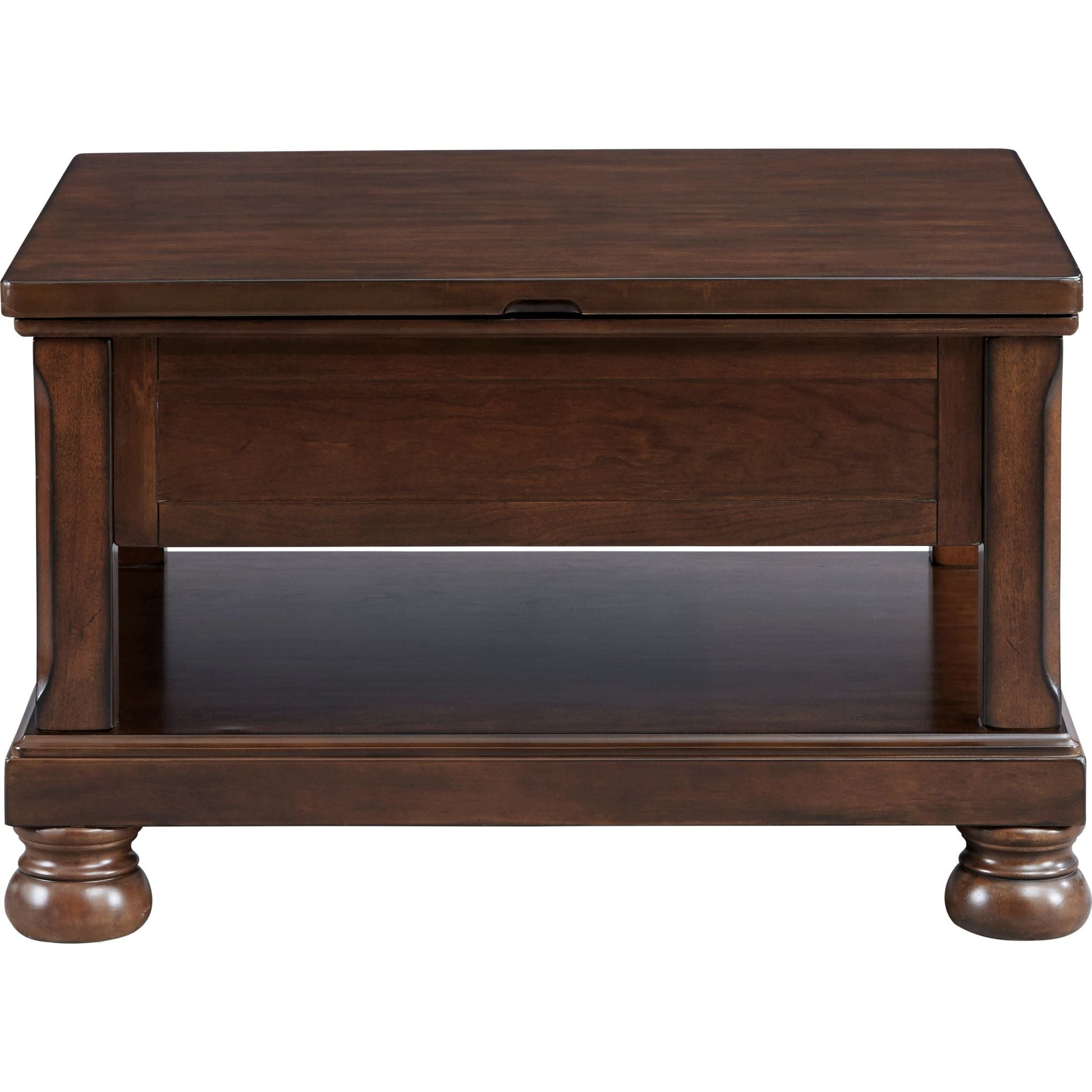 Ceux qui apprécient l'atmosphère chaleureuse et conviviale des intérieurs traditionnels seront conquis par la praticité de la table basse relevable Porter. Grâce à son mécanisme à ressort qui surélève le plateau, prendre un repas ou se mettre au travail devient un jeu d'enfant. Avec sa finition brunie et ses pieds boule classiques, cette table dégage une élégance décontractée.