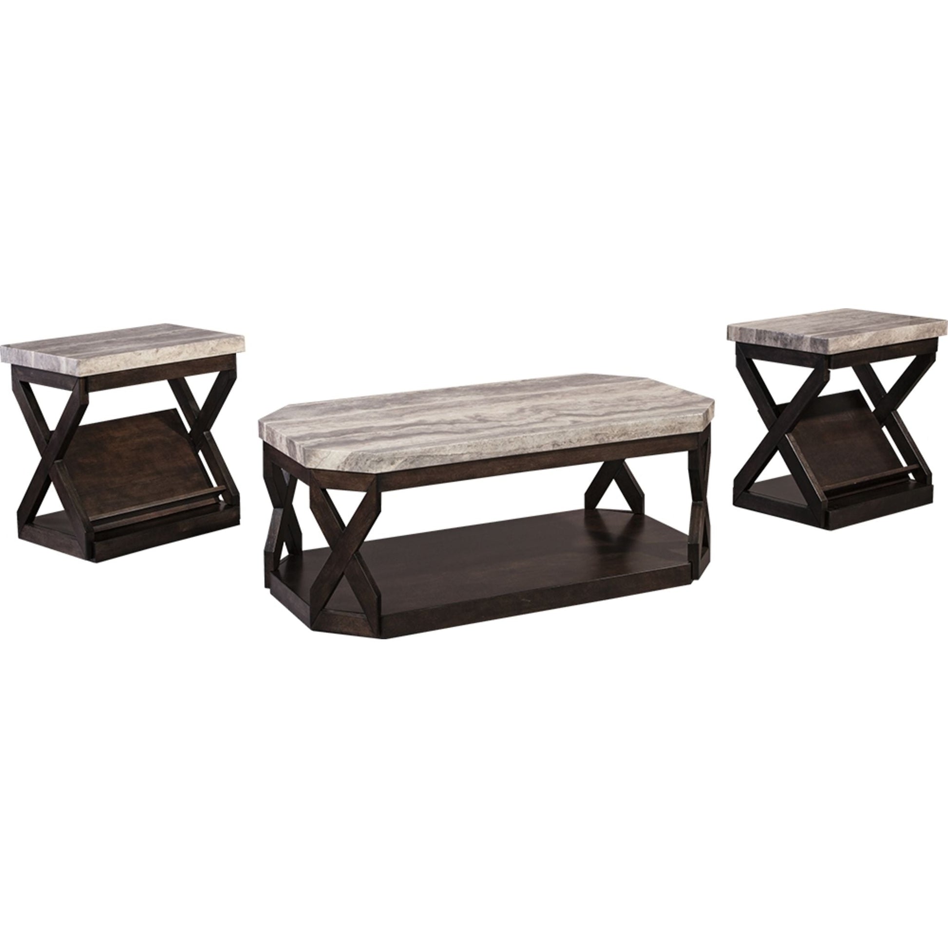 L'ensemble table basse Radilyn, avec son élégant jeu de textures et ses détails entrecroisés, est un choix remarquable. Revêtus d'une finition polyuréthane pour plus de praticité, les plateaux en imitation marbre sont épais et robustes. Des étagères à magazines s'intègrent harmonieusement au design de la table d'appoint, tandis que des roulettes (en option) sur la table basse offrent une plus grande flexibilité.