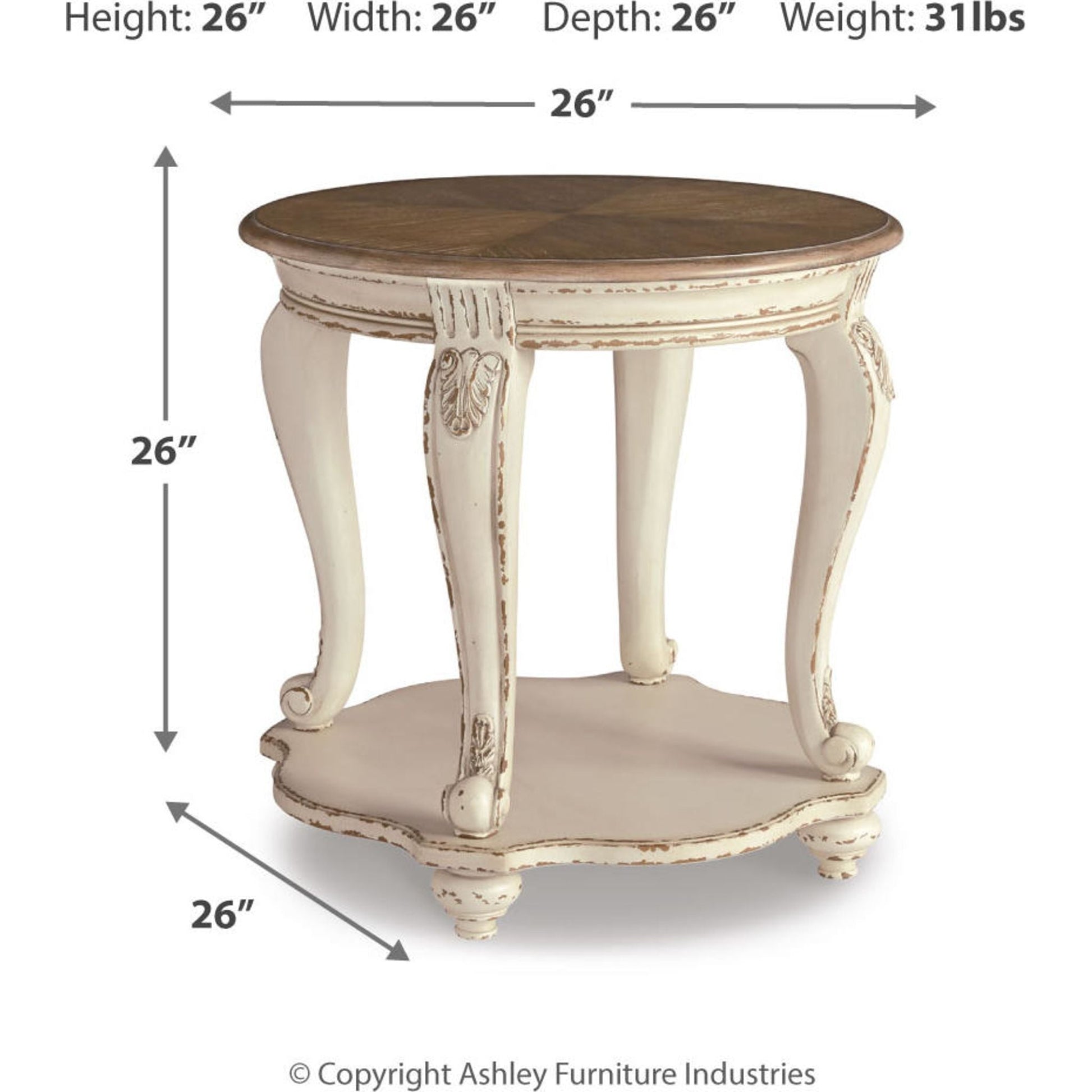 Sublimant le style cottage traditionnel, la table d'appoint ronde Realyn vous accompagnera avec élégance pendant de nombreuses années. Son esthétique bicolore patinée associe un blanc écaillé à un plateau en bois vieilli pour un charme supplémentaire. Ses pieds cabriolet classiques et son étagère inférieure aux lignes harmonieuses apportent une touche d'originalité. Des consoles décoratives ajoutent une note raffinée.