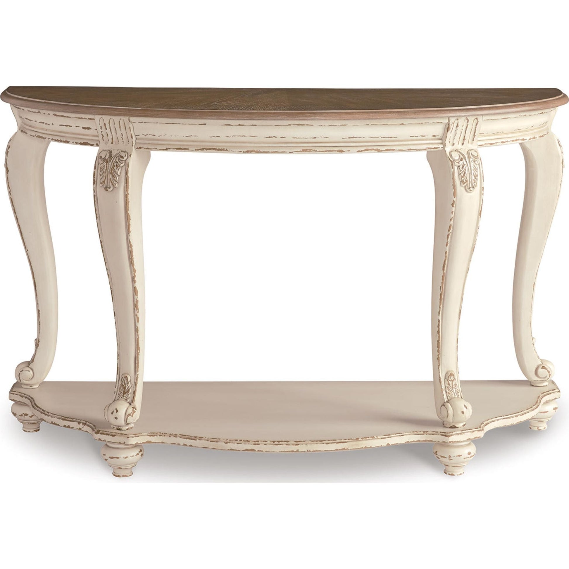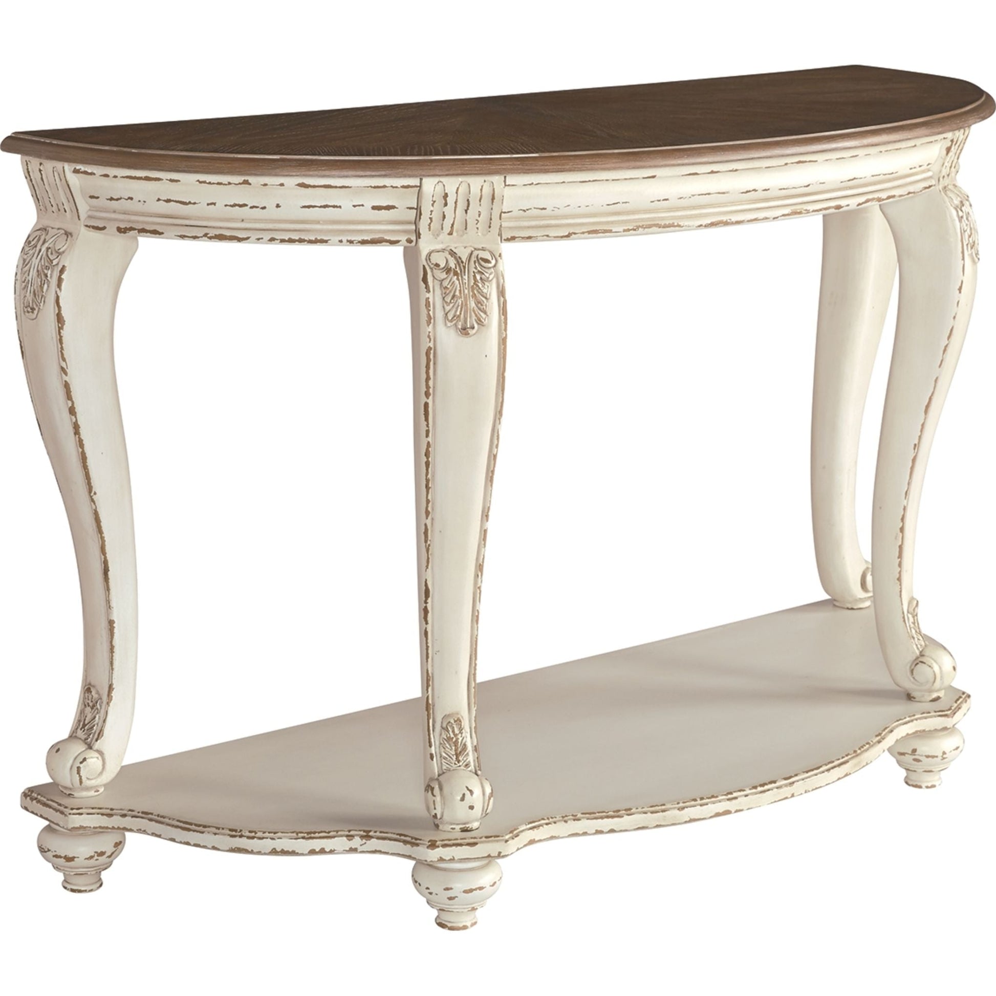 Sublimant le style cottage traditionnel, la console demi-lune Realyn vous accompagnera avec élégance pendant de nombreuses années. Son esthétique bicolore patinée associe un blanc écaillé à un plateau en bois vieilli pour un charme supplémentaire. Ses pieds cabriolet classiques et son étagère inférieure aux formes harmonieuses apportent une touche d'originalité. Des consoles décoratives ajoutent une note raffinée.