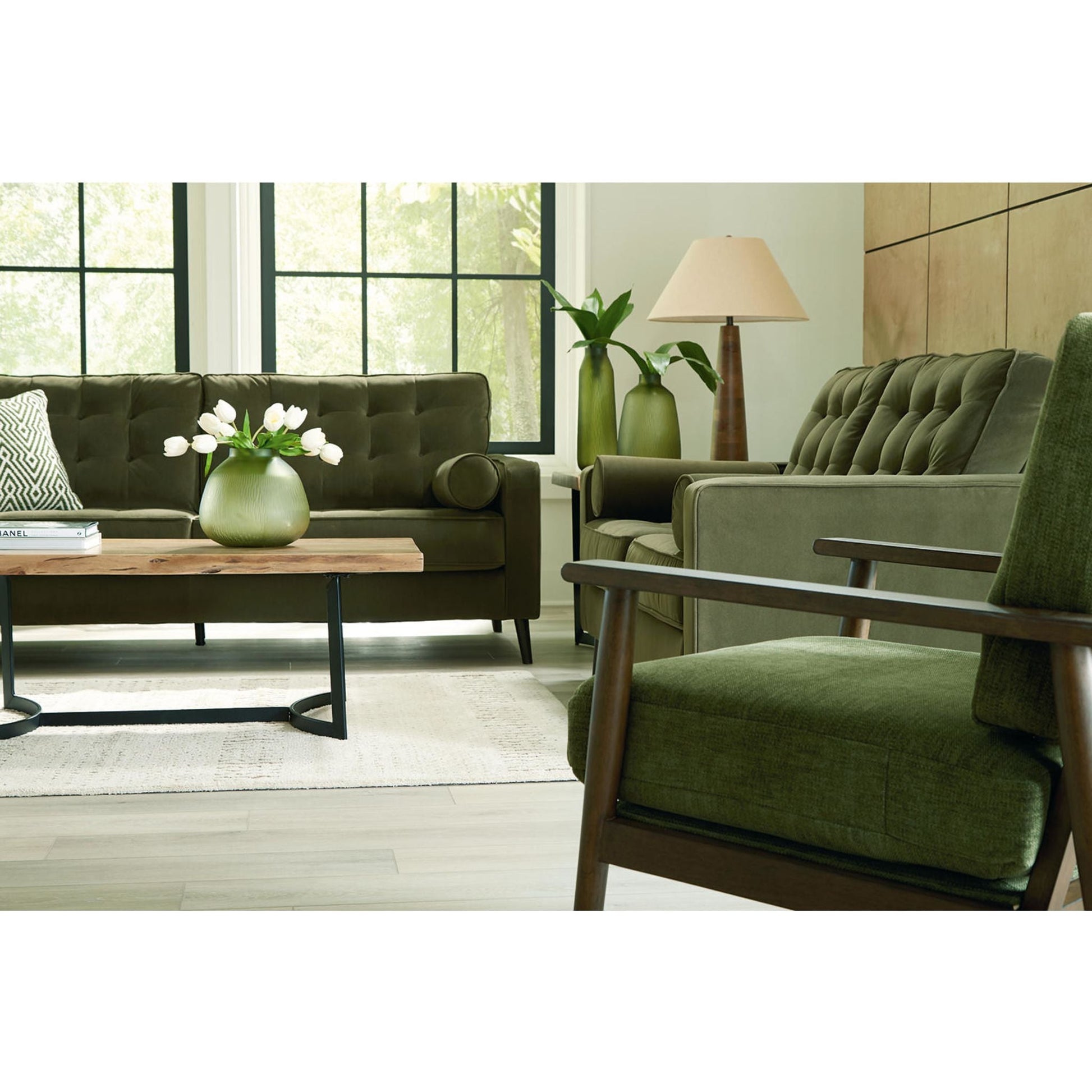 Le canapé Reveon Lakes offre un équilibre parfait entre élégance et originalité. Ses lignes contemporaines et son revêtement en velours aux teintes riches lui confèrent une allure chic. Des détails comme le capitonnage et les pieds évasés ajoutent une touche de modernité. Il apportera à votre salon une touche de luxe tendance, à un prix abordable.