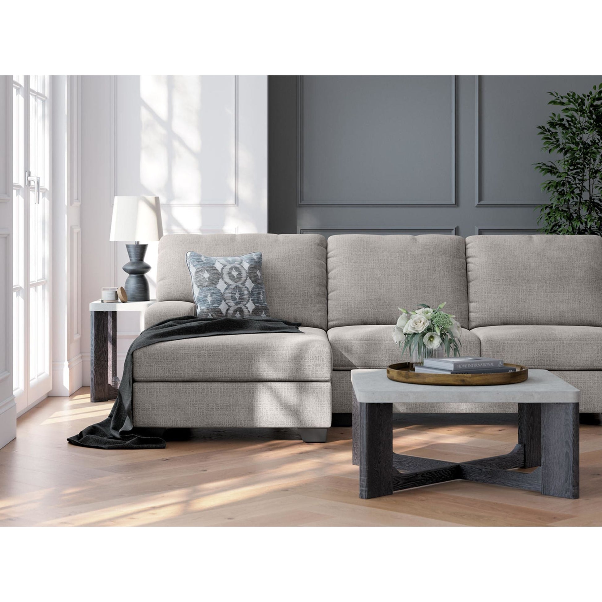 Pourquoi choisir entre un style contemporain et un confort optimal ? Le canapé d'angle Rodington avec méridienne allie harmonieusement ces deux atouts. Ses lignes épurées, son tissu chenille moelleux et son rembourrage généreux le rendent irrésistible. Avec sa teinte neutre et riche et ses coussins décoratifs géométriques à l'aspect vieilli, ce canapé d'angle métamorphose instantanément votre pièce et lui confère une allure design.