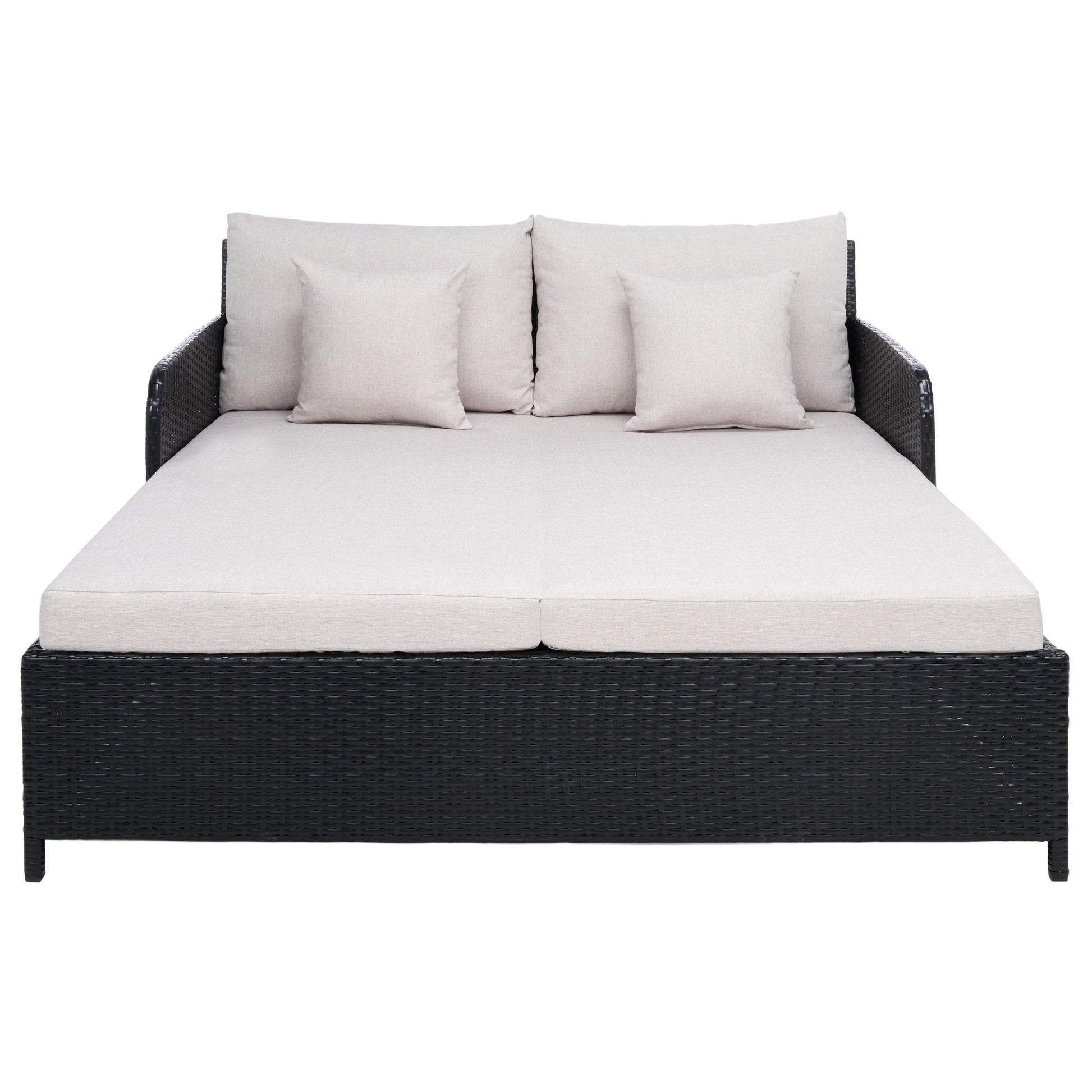 Lit de jour d'extérieur SAFAVIEH Taniyah en osier avec oreiller et coussins - 53 cm (L) x 28 cm (P) x 62 cm (H)