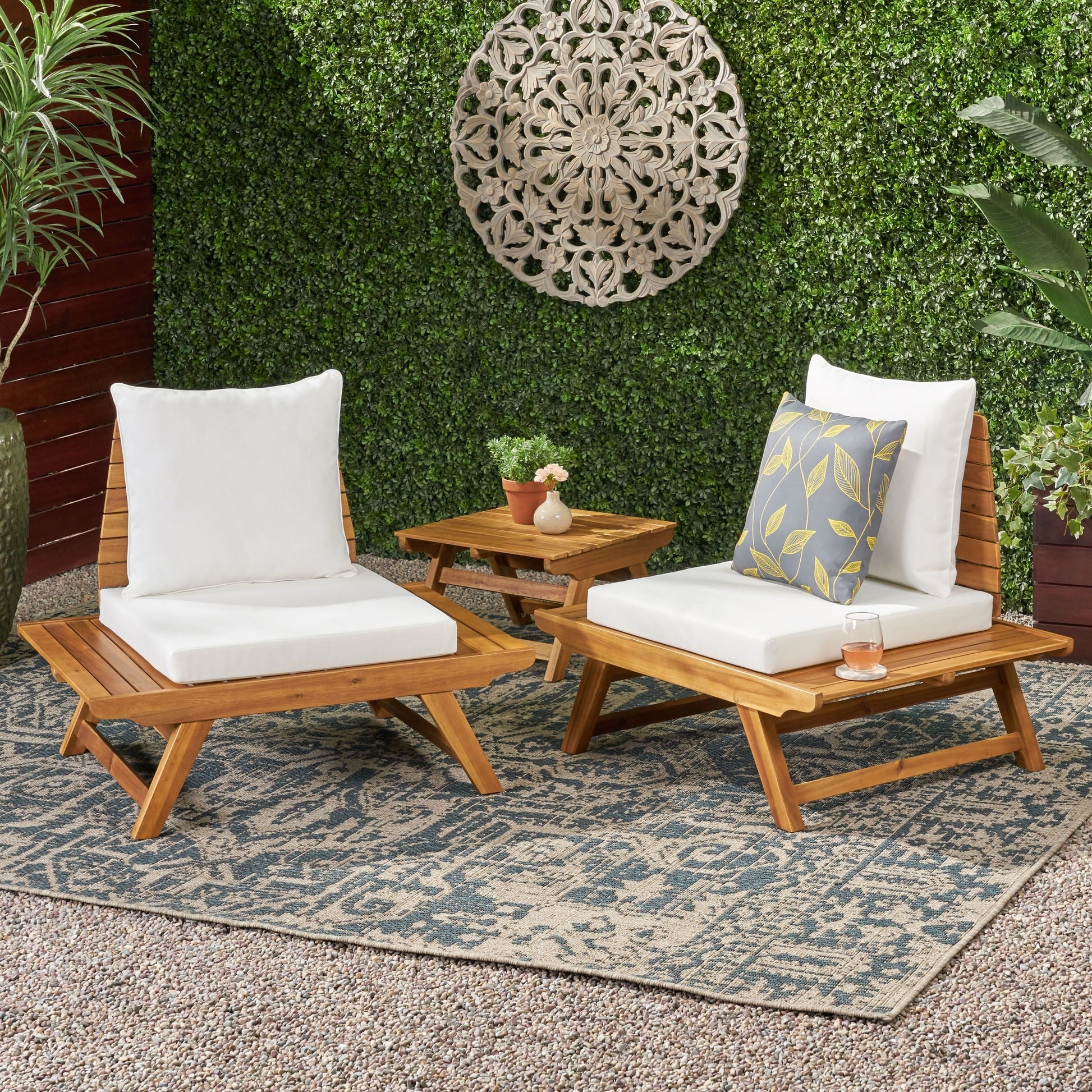 Profitez pleinement de votre terrasse avec cet ensemble de deux chaises en bois d'acacia de la collection Christopher Knight Home. La structure à lattes en bois d'acacia est dotée d'une assise extra-large qui se prolonge au-delà du coussin, formant ainsi une table d'appoint pratique. Les coussins en polyester résistant à l'eau sont amovibles pour un entretien facile.