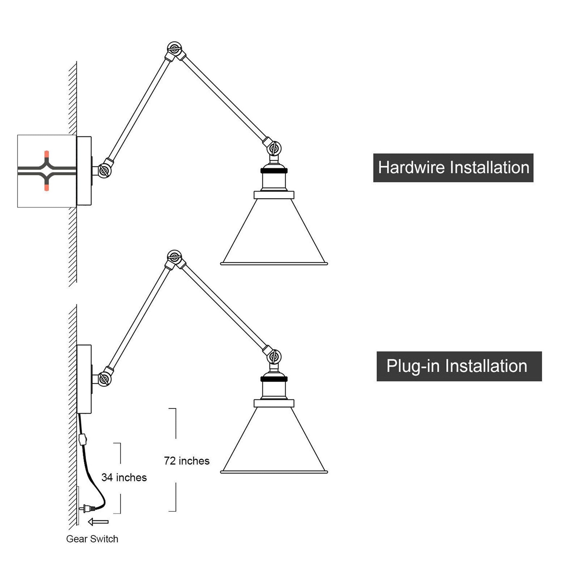 Ensemble de 2 appliques murales modernes à bras articulé réglable, à brancher et à câblées