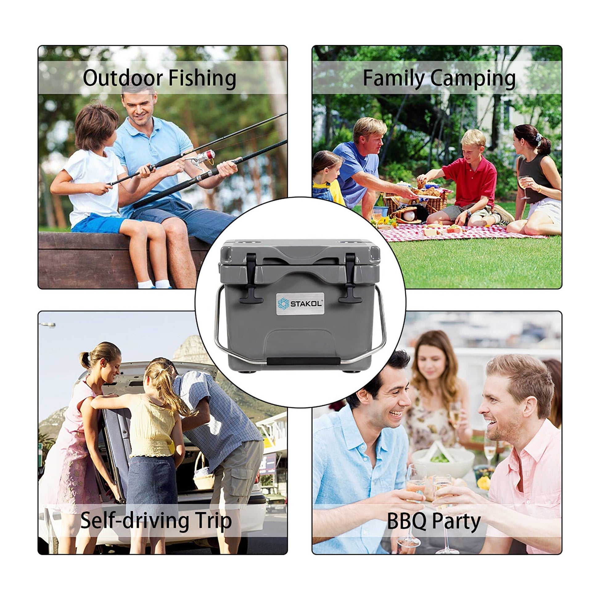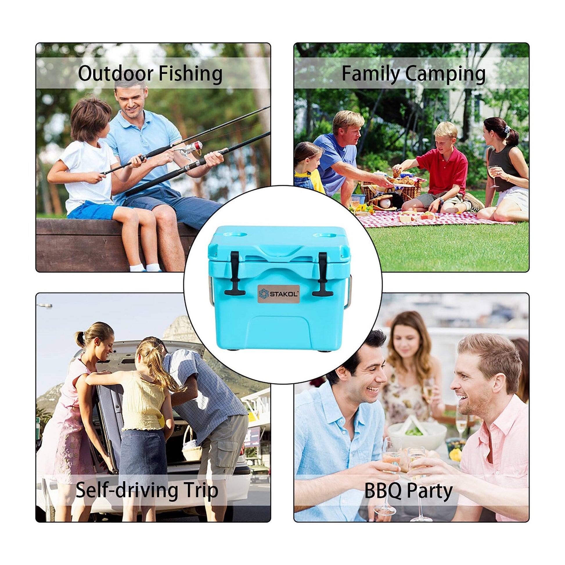 Cette glacière performante et ultra-résistante grâce à sa construction rotomoulée est sans aucun doute votre alliée idéale pour vos activités de plein air. Fabriquée en PE et PU de haute qualité, cette glacière de 16 litres est non toxique et conserve vos aliments, boissons et fruits au frais pendant 3 à 5 jours. Portable et pratique, elle s'adapte à toutes les situations : barbecues, pique-niques, pêche, camping ou voyages en voiture. Elle peut également servir à garder vos aliments au chaud. Cette glacière est équipée de 2 porte-gobelets, de fermetures sécurisées, d'un couvercle verrouillable, d'une poignée en acier inoxydable, d'un bouchon de vidange et de pieds antidérapants. Autant de détails bien pensés qui en font la glacière parfaite.