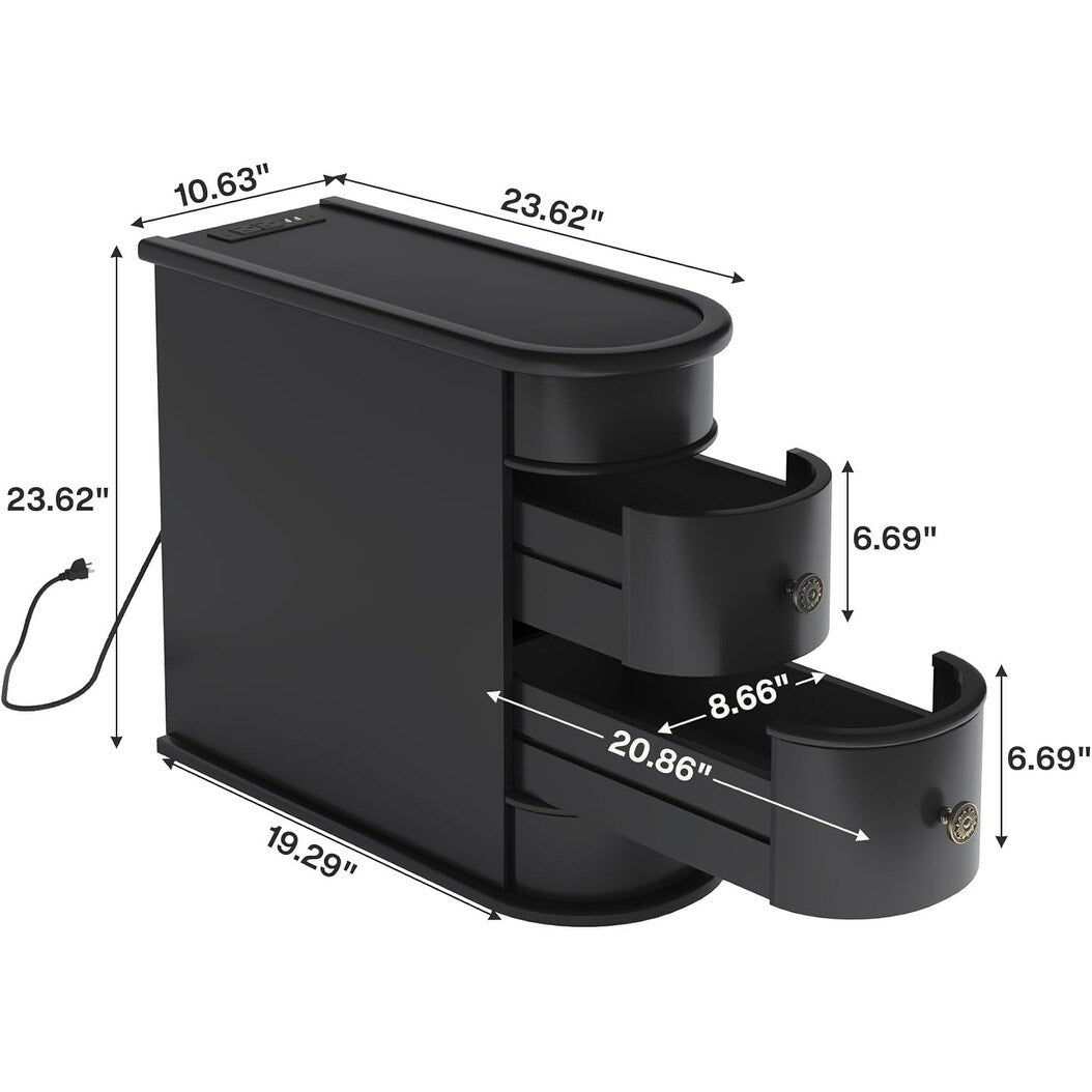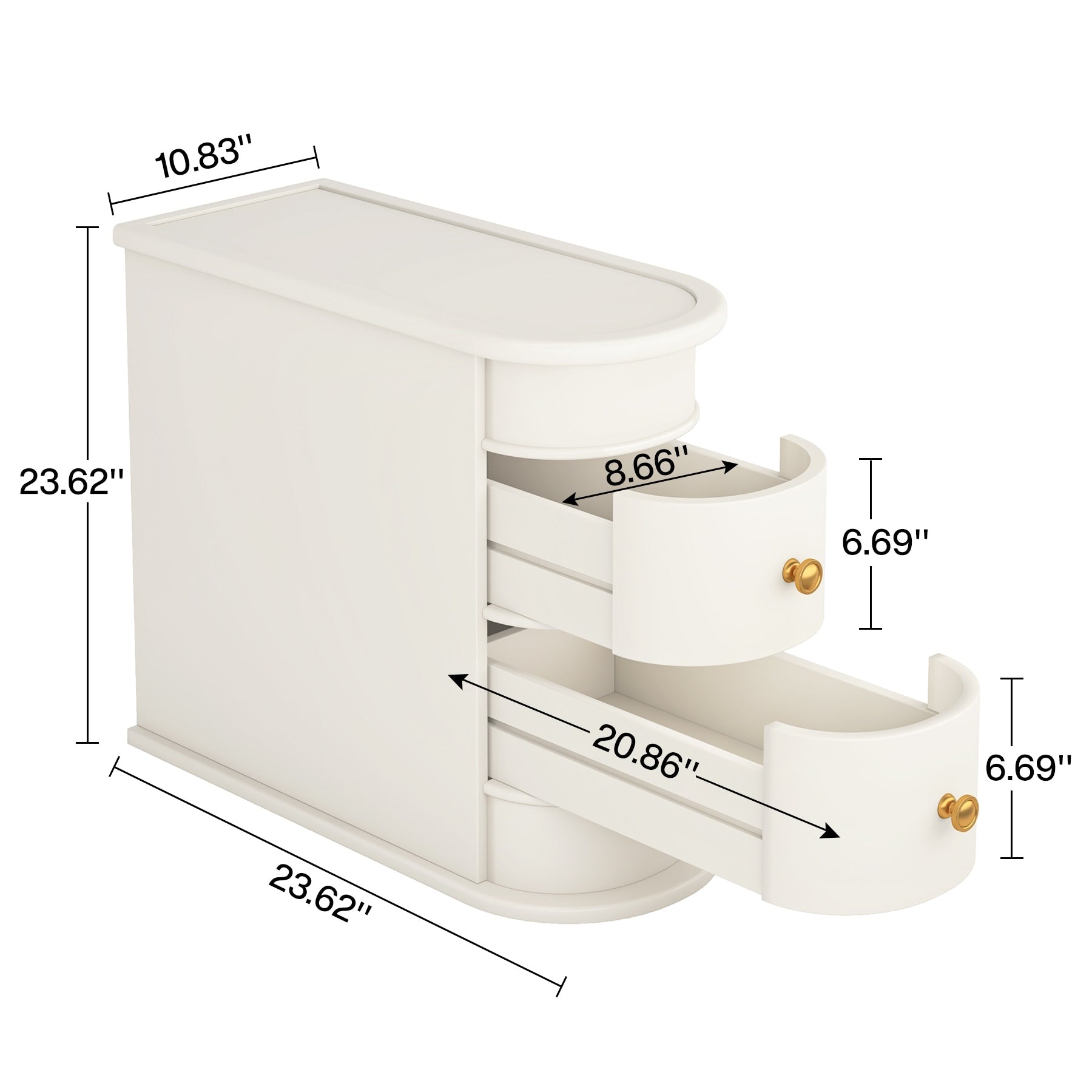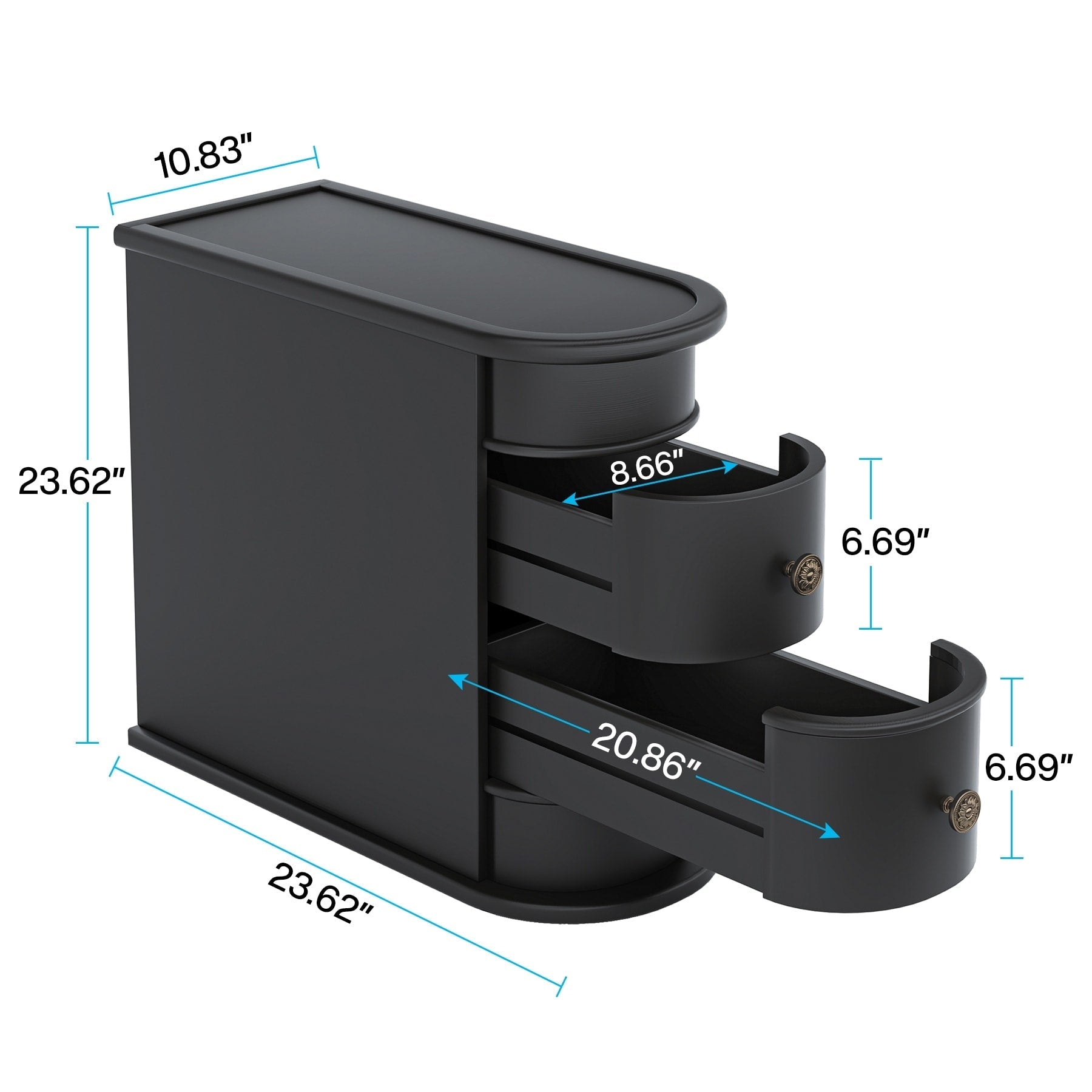 Table d'appoint en bois massif, table d'appoint étroite à deux tiroirs