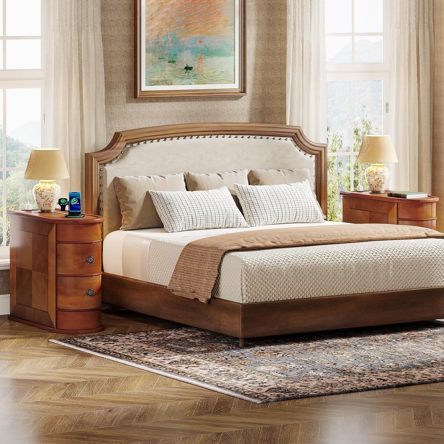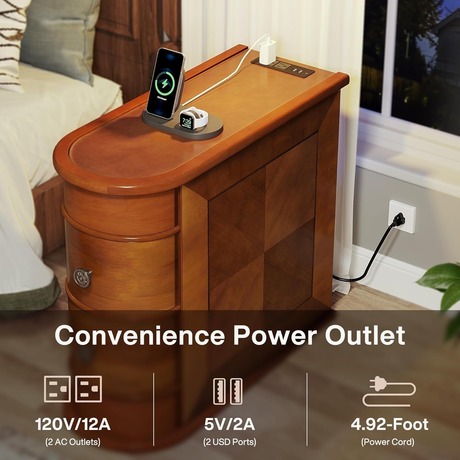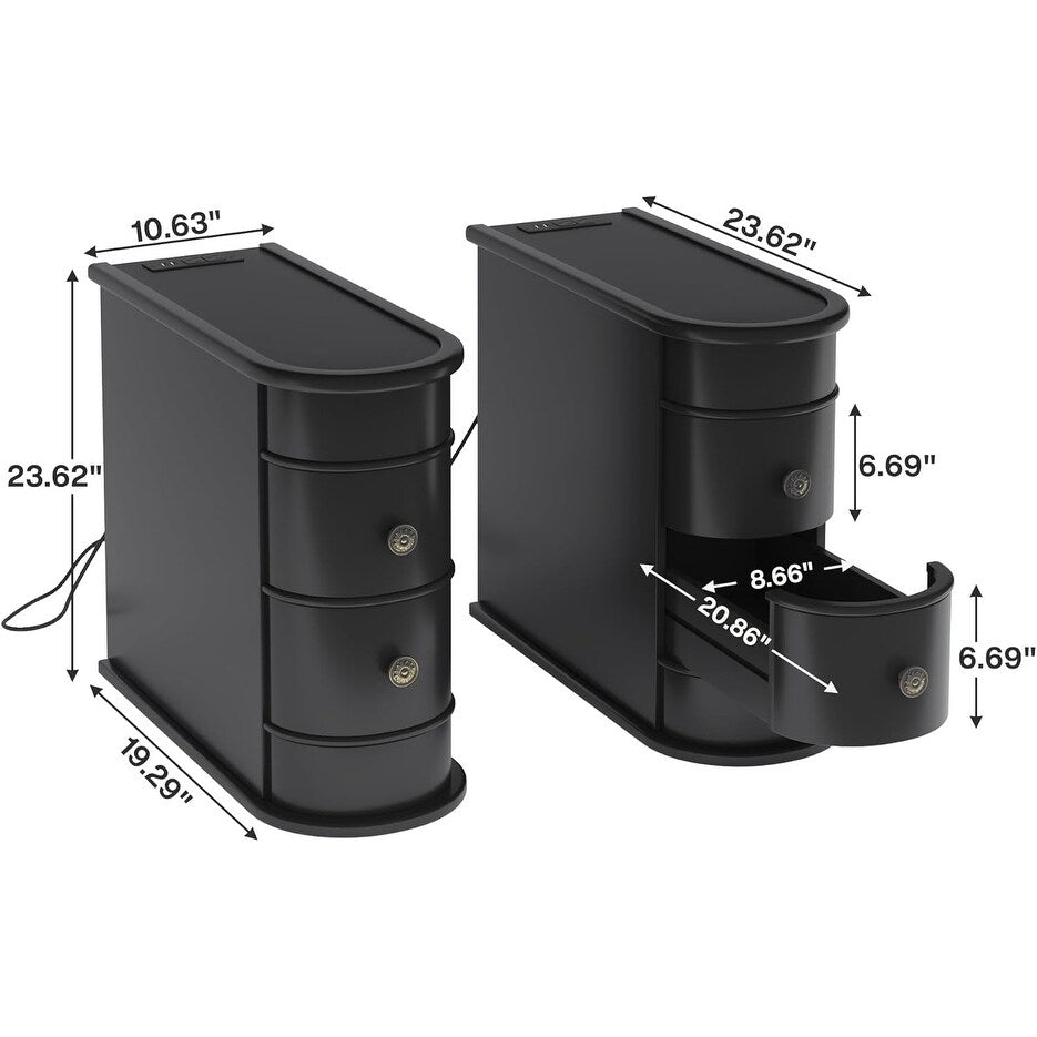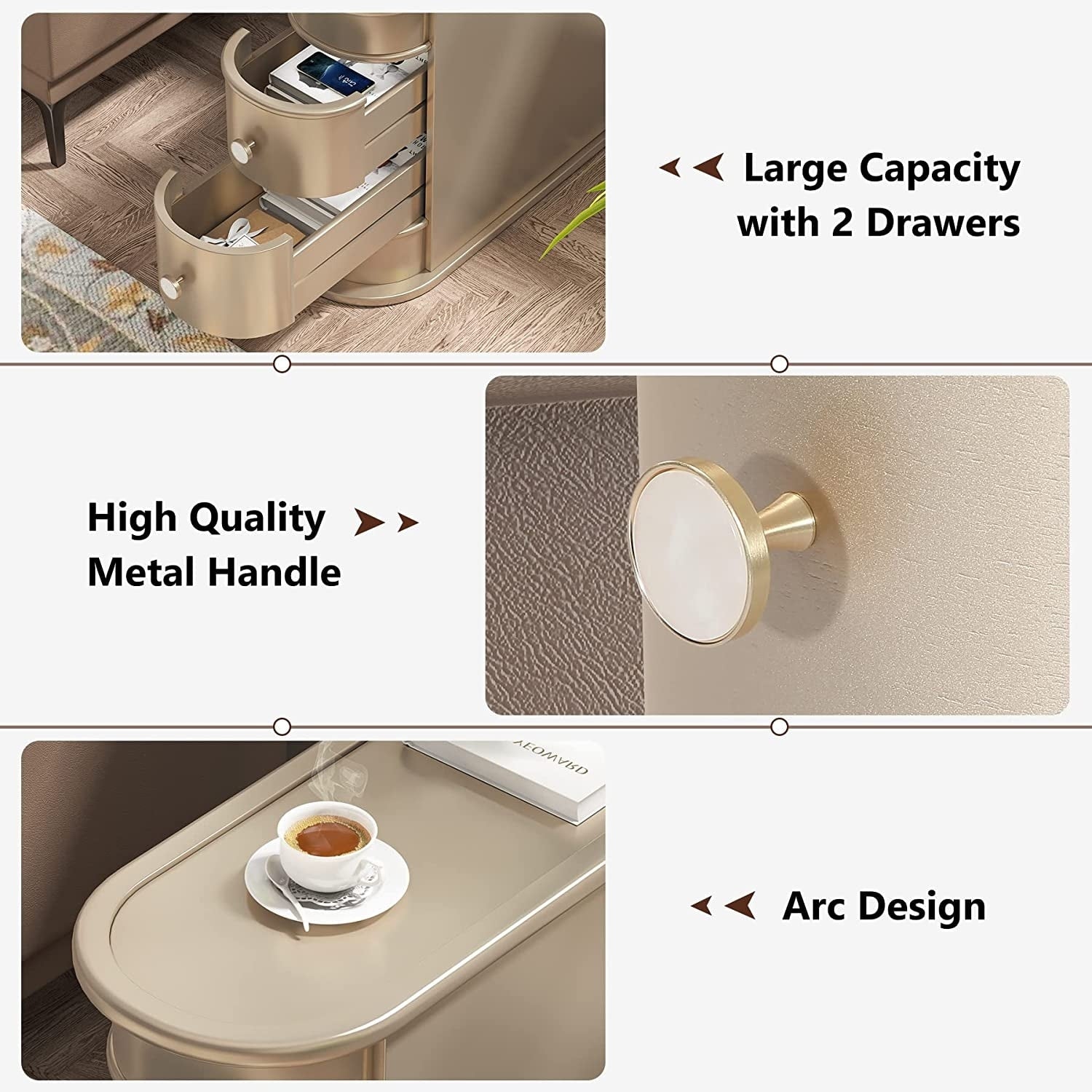 Table d'appoint en bois massif, table d'appoint étroite à deux tiroirs
