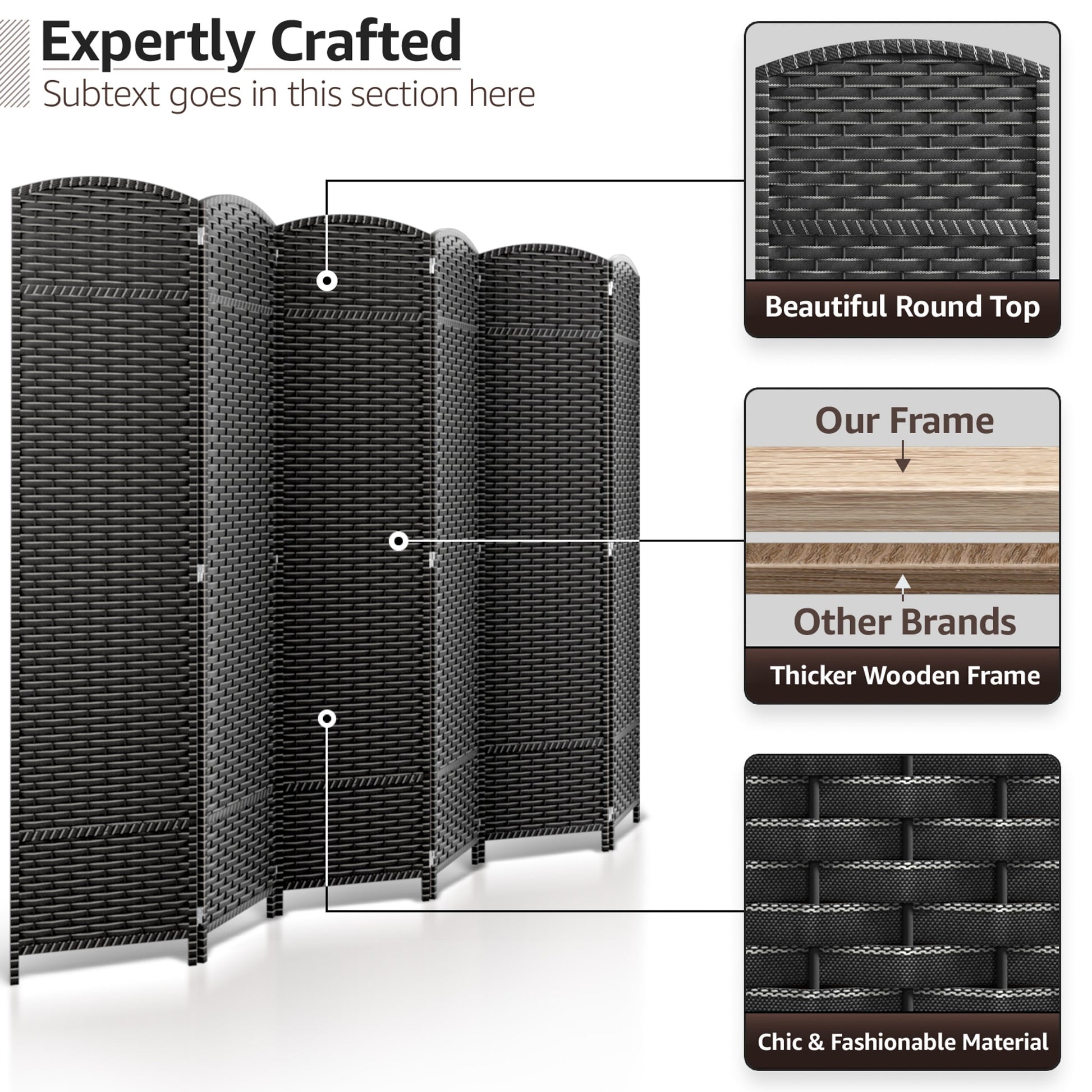 - Panneaux à double charnière extra larges : Doté de 6 panneaux à double charnière et mesurant 1,83 m de haut, ce paravent est extra large pour une couverture maximale.