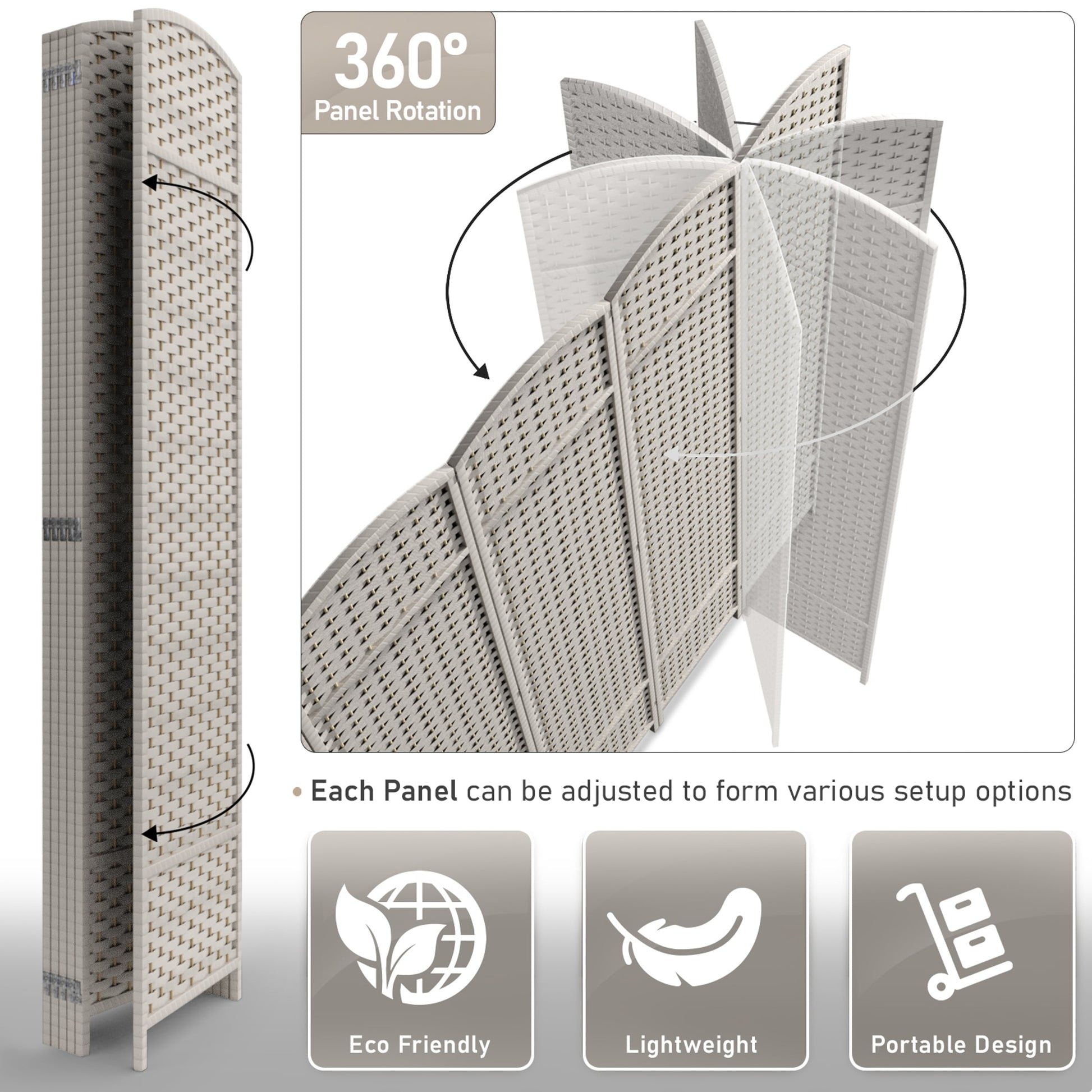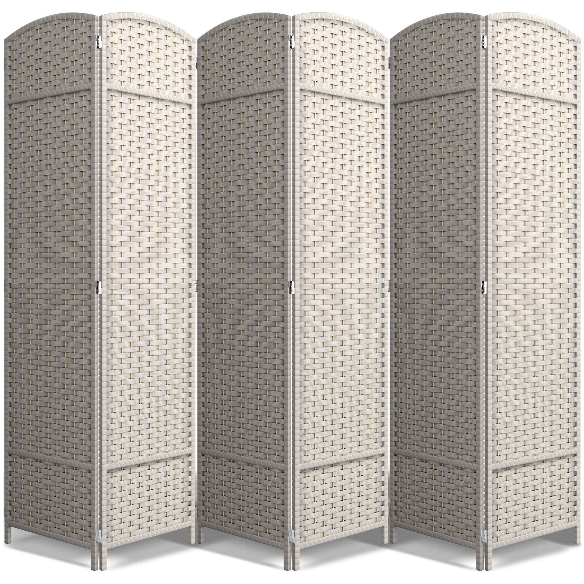 Paravent Sorbus à 6 panneaux, cloison de séparation haute et extra large, à double charnière, en maille tissée à la main, pliable - 1,83 m