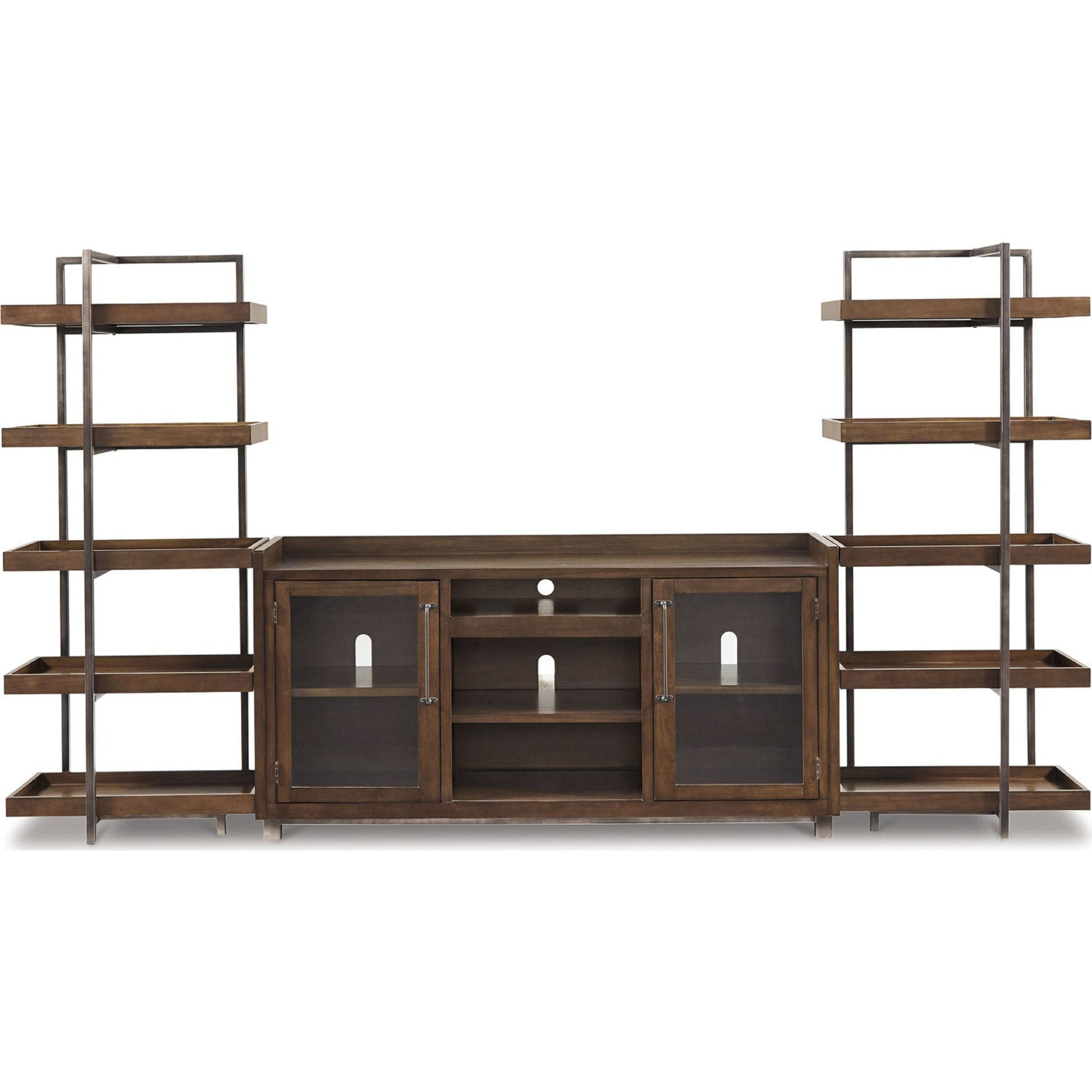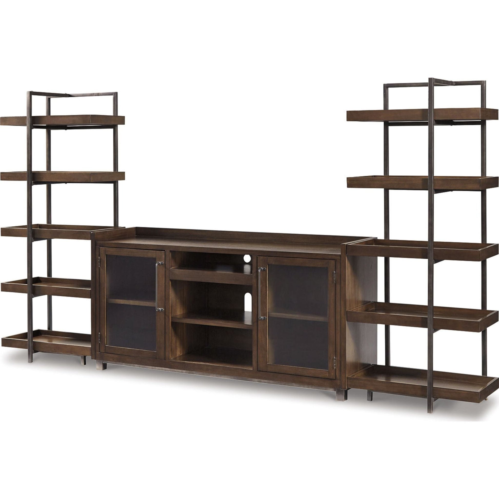 Pour les amateurs de design industriel urbain, le meuble TV Starmore 3 pièces est une véritable star. Son mélange de placage d'acacia et de bois est sublimé par une finition huilée couleur noyer, pour une esthétique résolument contemporaine au caractère brut et authentique. L'infusion de métal bronze foncé rehausse encore son allure élégante. Malgré son aspect massif et imposant, les colonnes ouvertes et les vitrines apportent une touche de légèreté. Et pour un confort visuel optimal, ce meuble TV est compatible avec nos inserts de cheminée LED (vendus séparément).