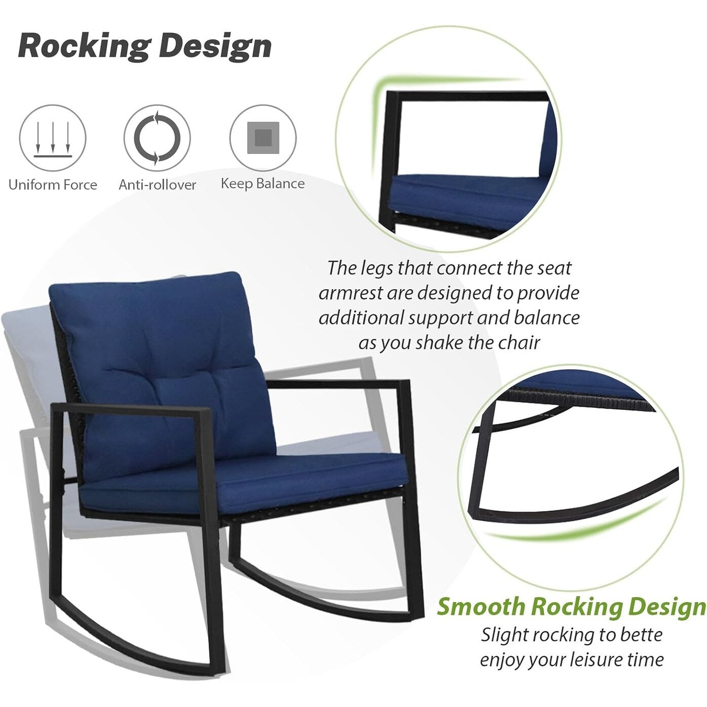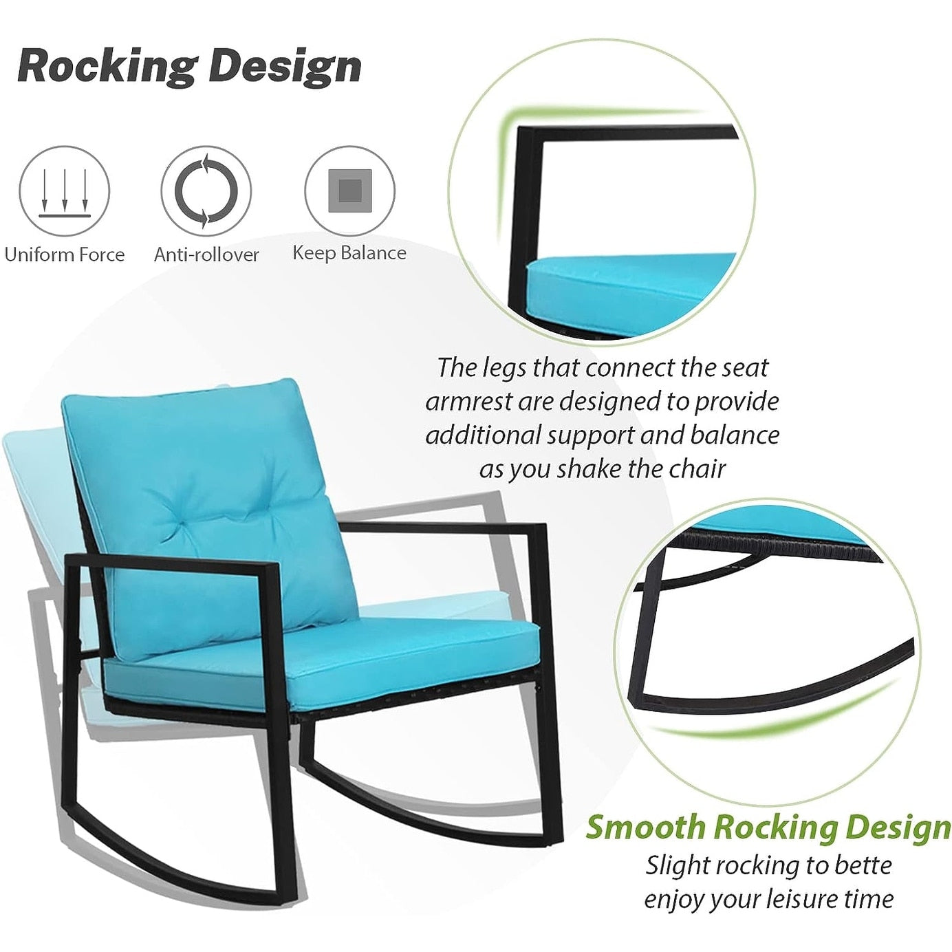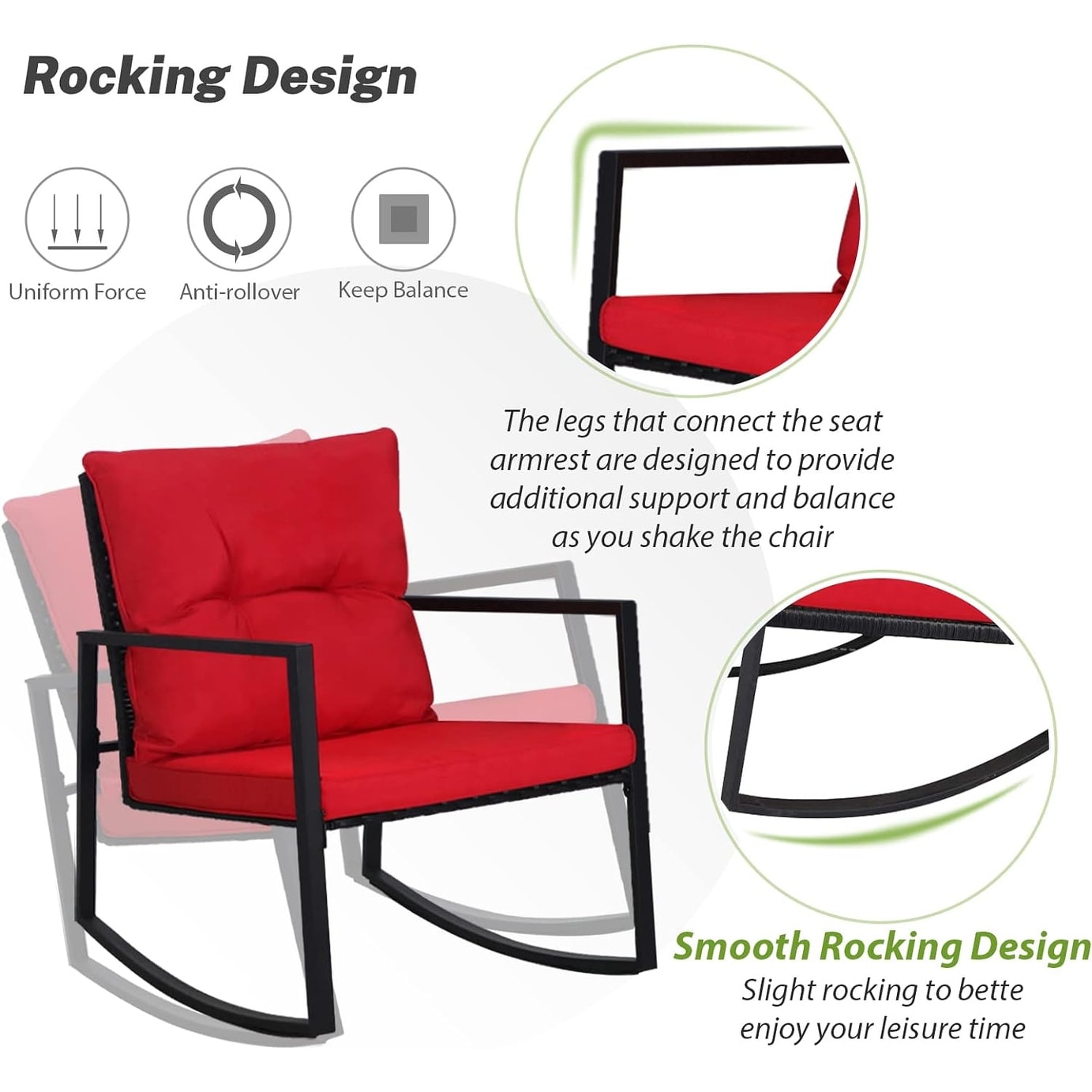 Détendez-vous avec style grâce à l'ensemble bistro d'extérieur SUNCROWN en résine tressée et à bascule, composé de 3 pièces. Cet ensemble résistant comprend deux fauteuils à bascule rembourrés et une table basse carrée, le tout fabriqué avec une structure en fer et de la résine tressée en polyéthylène. Les fauteuils sont dotés de coussins en polyester avec rembourrage en mousse, disponibles en plusieurs couleurs et munis de housses zippées. Avec son design contemporain et sa finition noire, cet ensemble s'harmonise avec tous les styles de décoration.