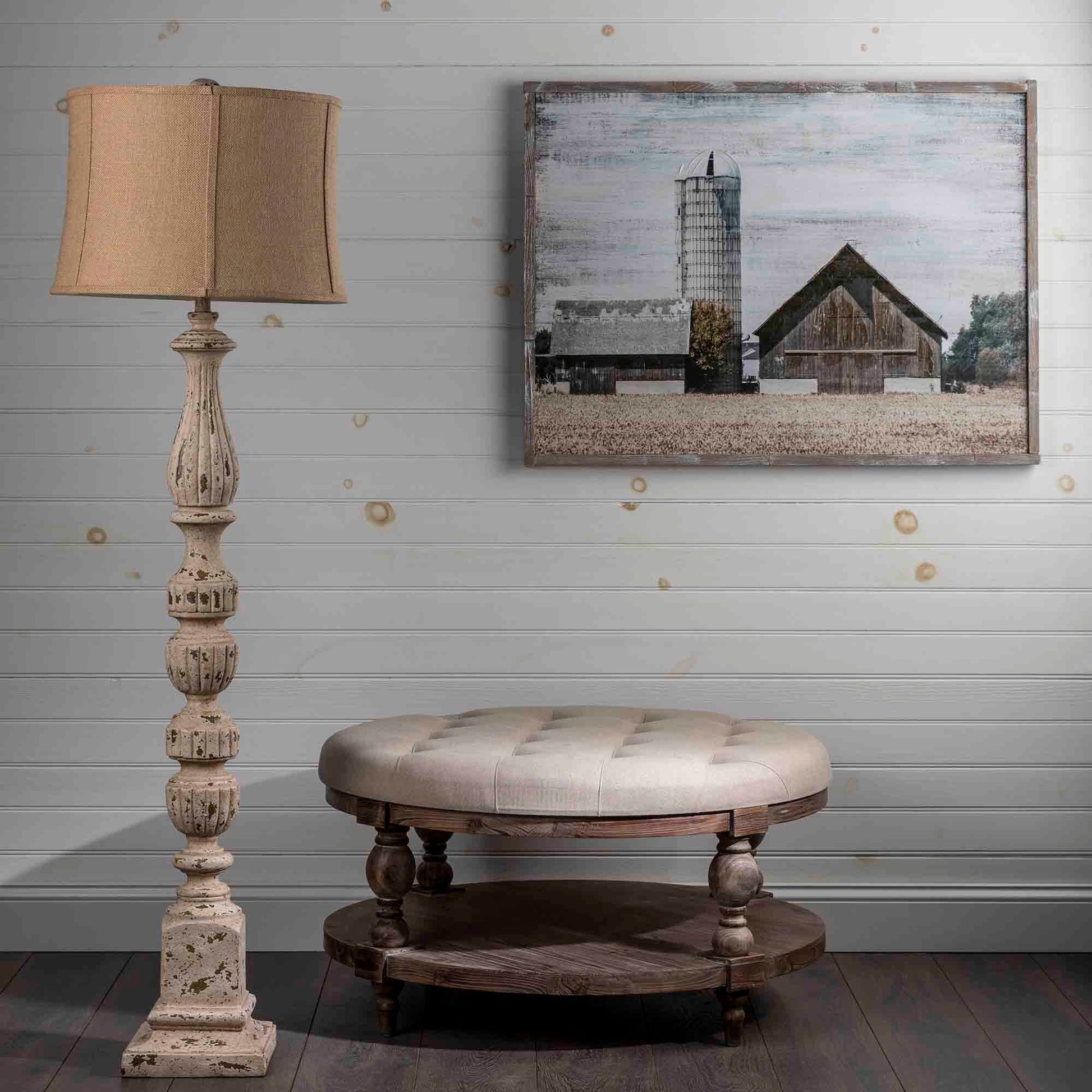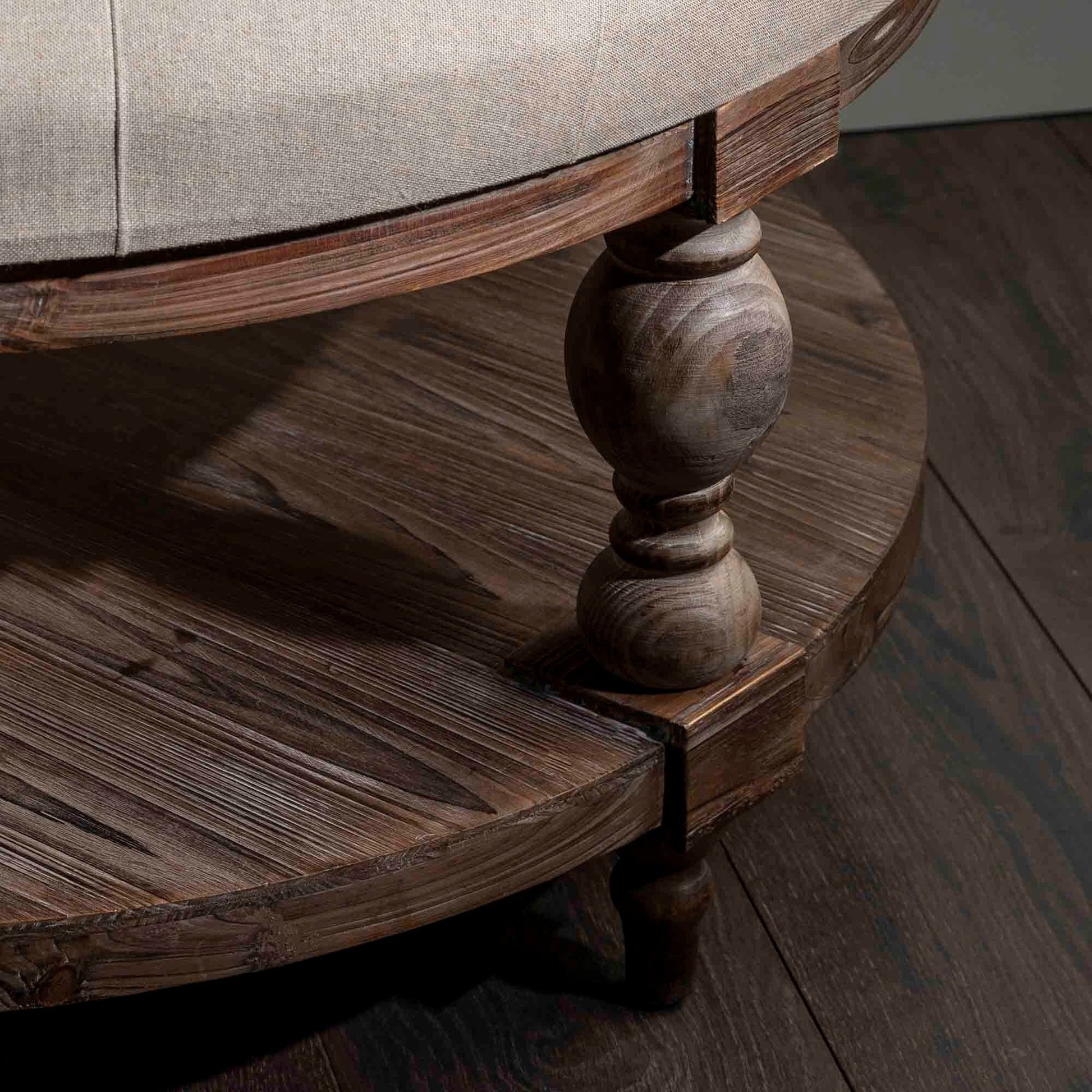 Le pouf rond Tahoe Rustic en bois et lin allie tradition et confort. Doté d'une étagère inférieure pour le rangement et d'une assise rembourrée pour un confort optimal, il est idéal pour reposer vos pieds ou vous détendre. La finition en sapin brun clair des pieds tournés met en valeur le coussin en lin couleur crème. Sa forme ovale s'intègre facilement dans la plupart des espaces.