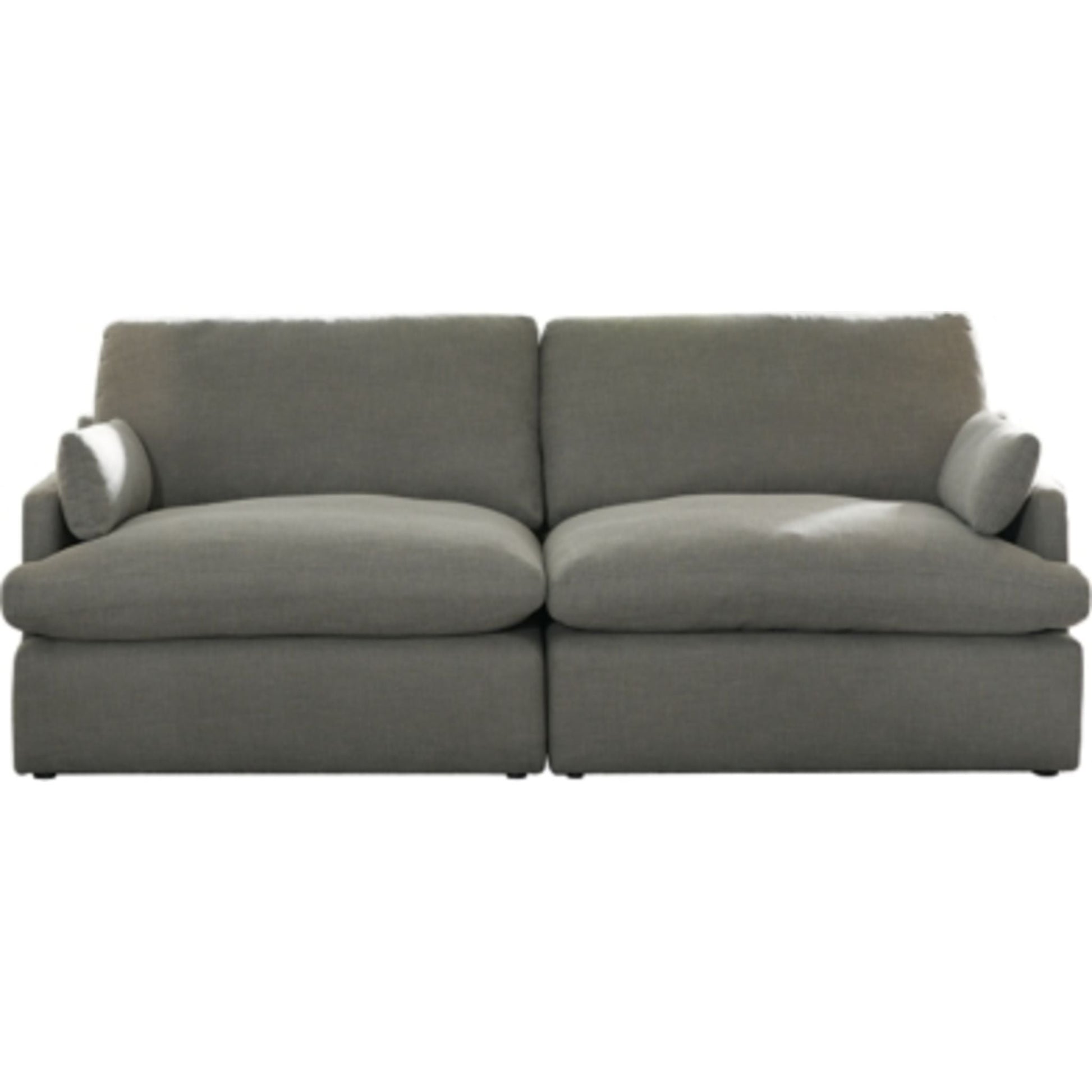 Alliant une esthétique épurée et moderne à un confort irrésistible, ce canapé deux places, dans une riche teinte gris fumé neutre, invite à la détente. Que votre style soit chaleureux et cosy, évoquant une maison de campagne moderne, ou résolument contemporain, ce canapé modulable, confectionné avec un savoir-faire exceptionnel, séduit par ses coussins réversibles en mélange de plumes et de fibres, d'un moelleux incomparable, et son tissu effet lin qui apporte une touche de fraîcheur. Ses accoudoirs fins et ses coussins cylindriques structurés ajoutent confort et style.