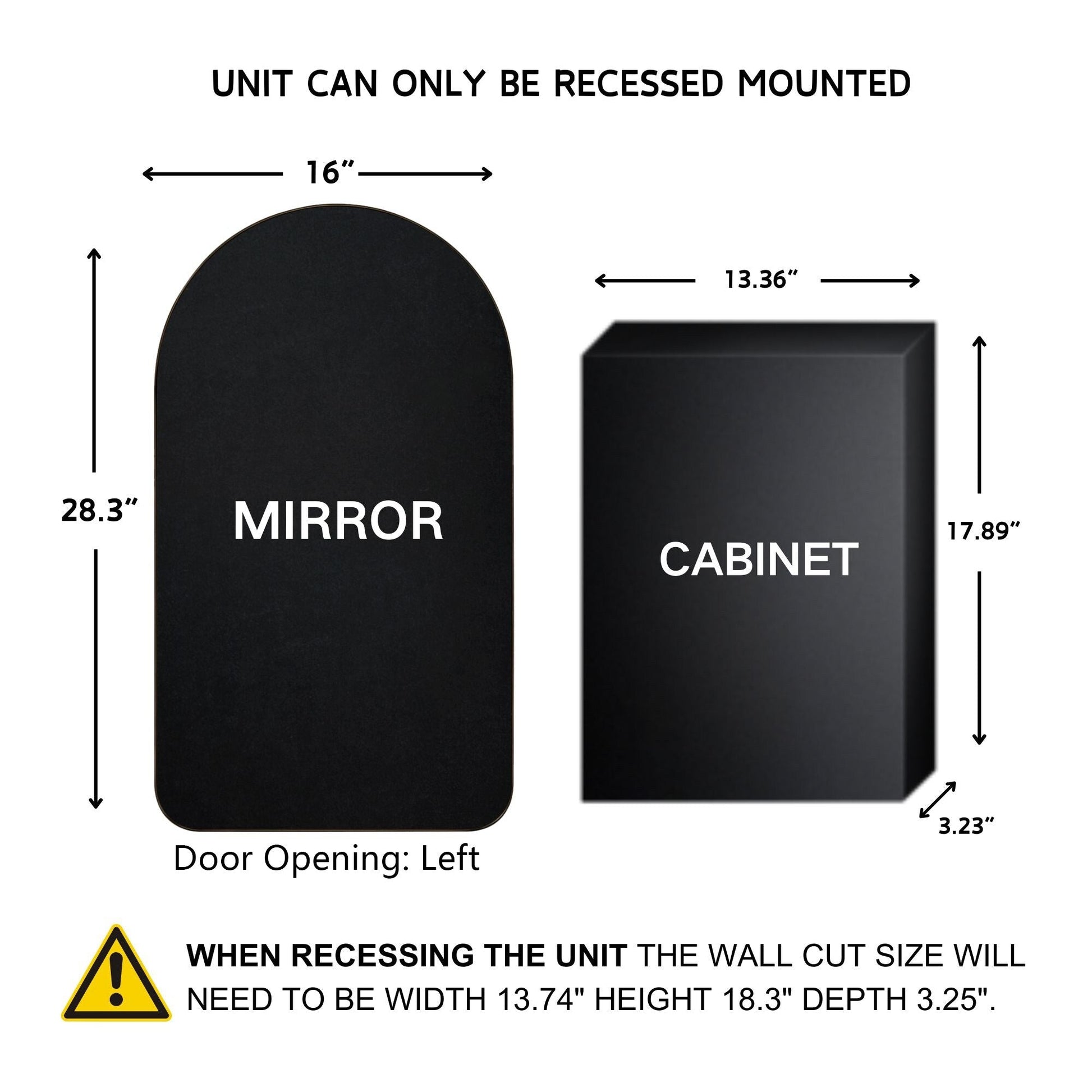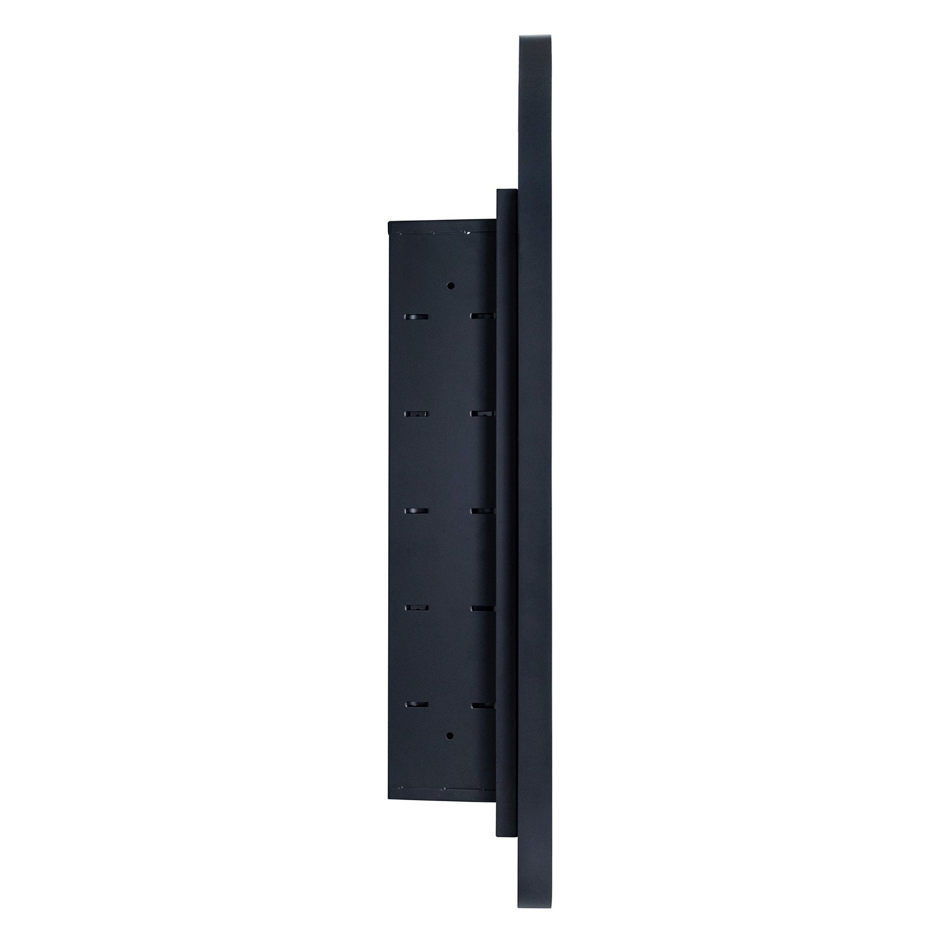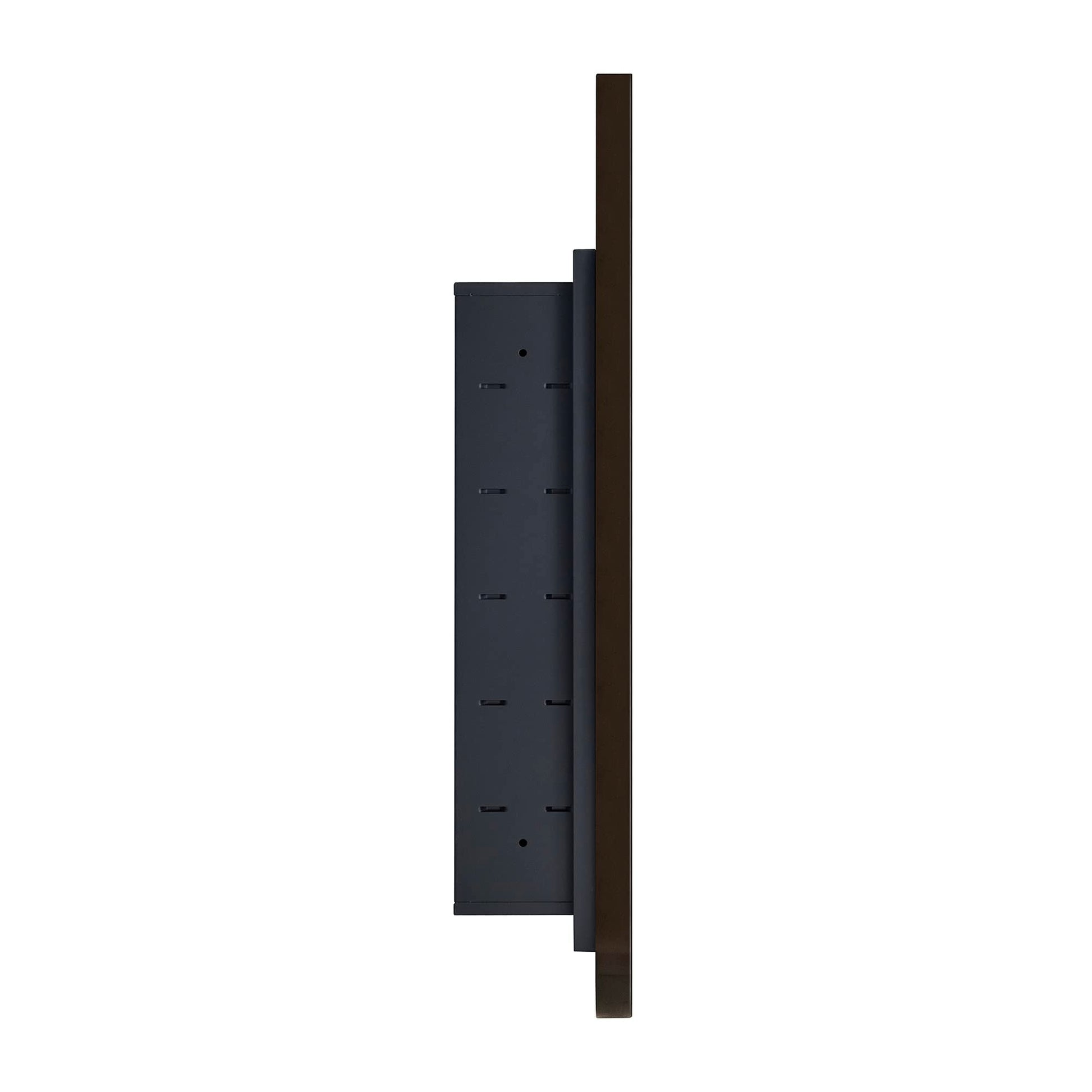 - Armoires à pharmacie cintrées à structure métallique : Porte en métal haut de gamme avec finition noire mate. La porte est équipée de charnières à fermeture automatique.
