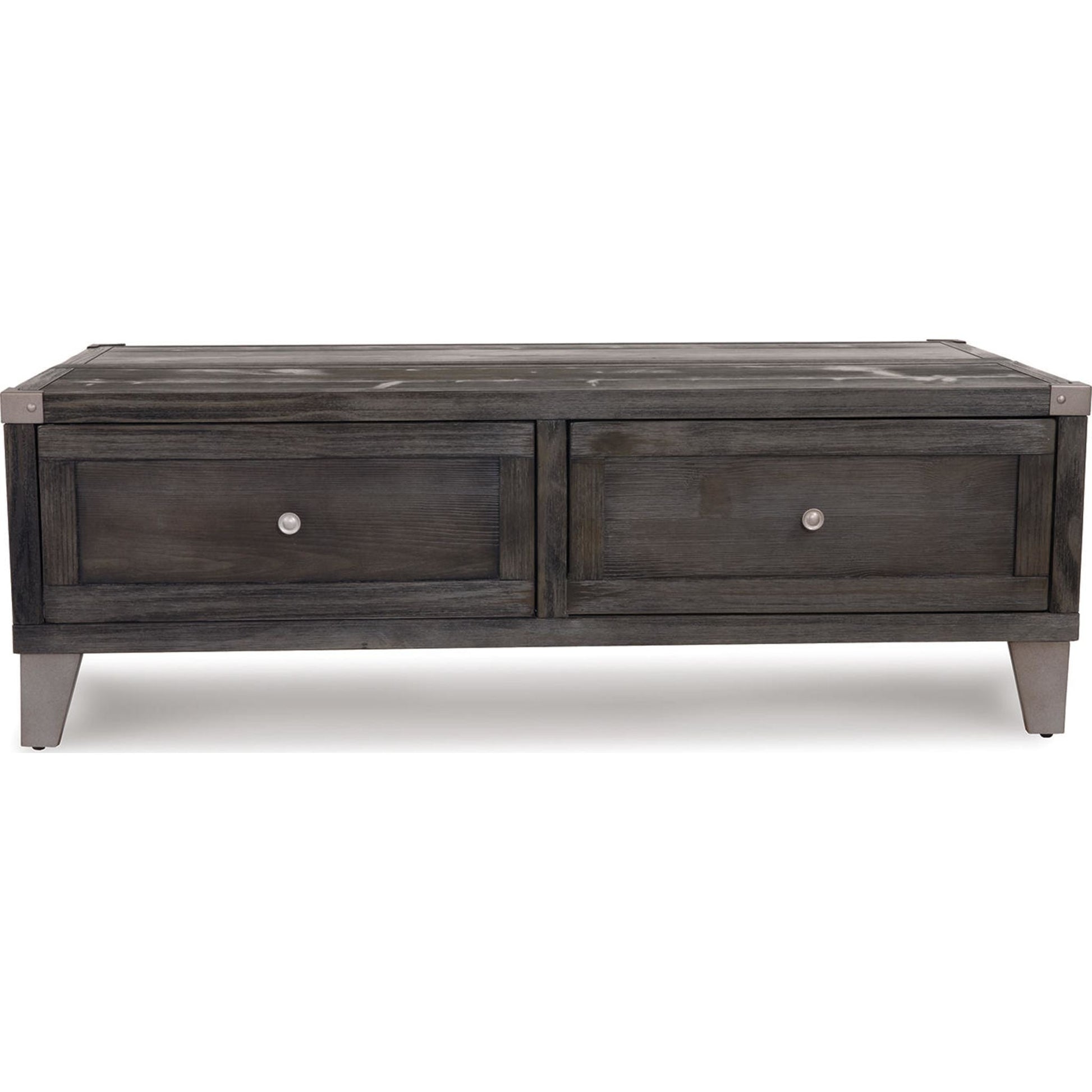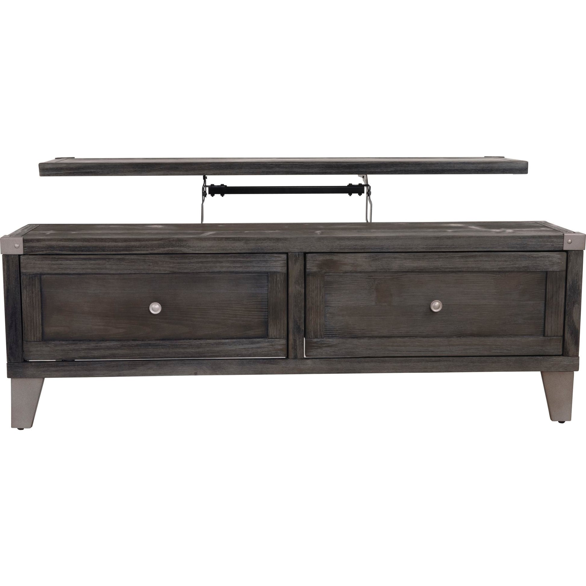 Cette table relevable en matériaux mixtes sublime le style industriel rustique. Le pin patiné et ses placages contrastent avec les pieds en métal inclinés et les équerres d'angle, créant ainsi une fusion chic et unique entre charme naturel et modernité. Un mécanisme à ressort pratique permet d'ouvrir le plateau, tandis que deux tiroirs avec plateaux de rangement amovibles offrent de nombreuses possibilités.