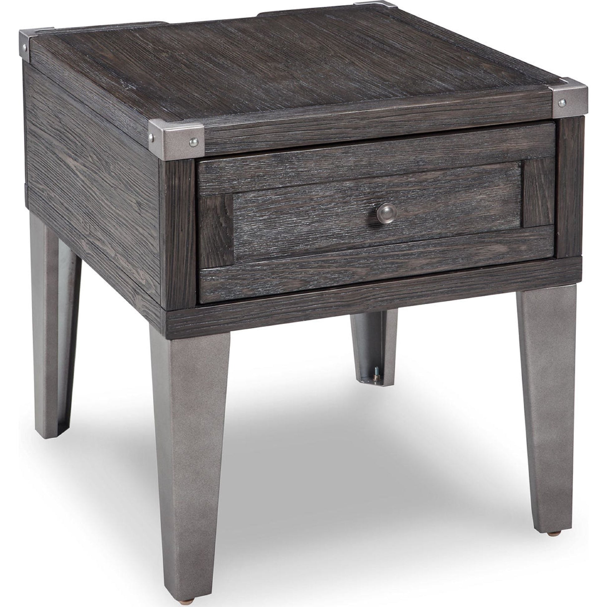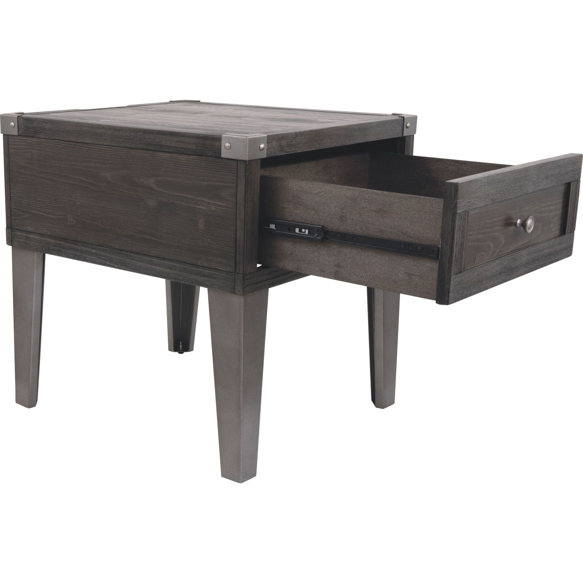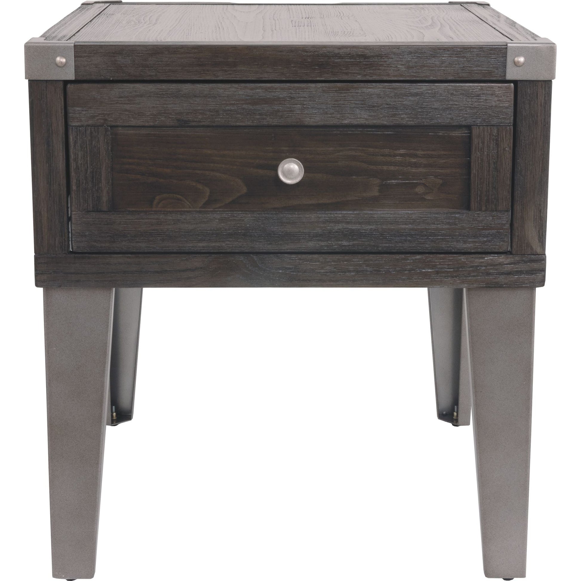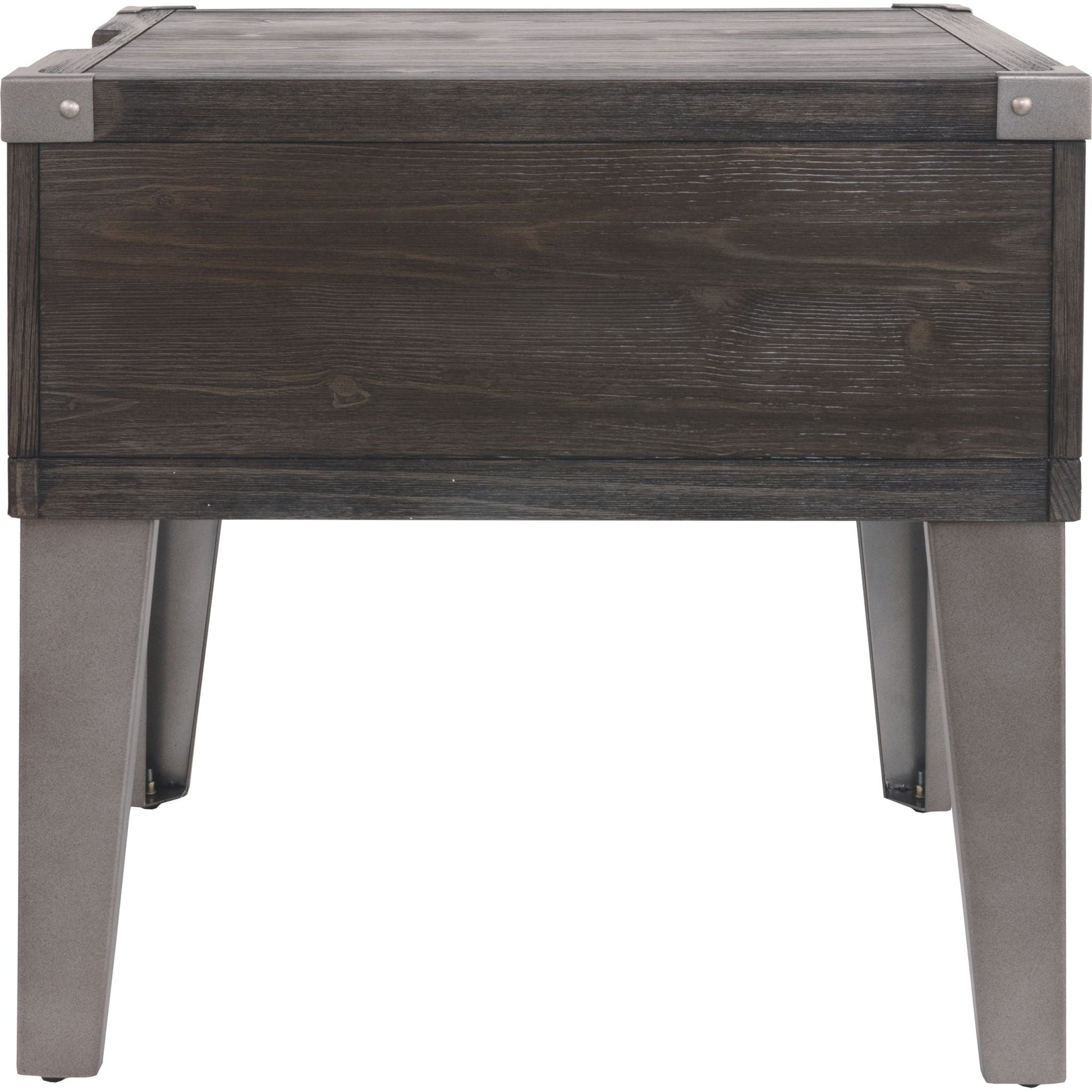 Affirmez votre style rustique-industriel avec cette table d'appoint mêlant différents matériaux. Le pin patiné et le placage contrastent avec les pieds en métal inclinés et les équerres d'angle, créant ainsi une fusion chic et unique entre charme naturel et style contemporain. Des prises électriques et des ports de chargement USB situés à l'arrière ajoutent une touche pratique à son esthétique remarquable.