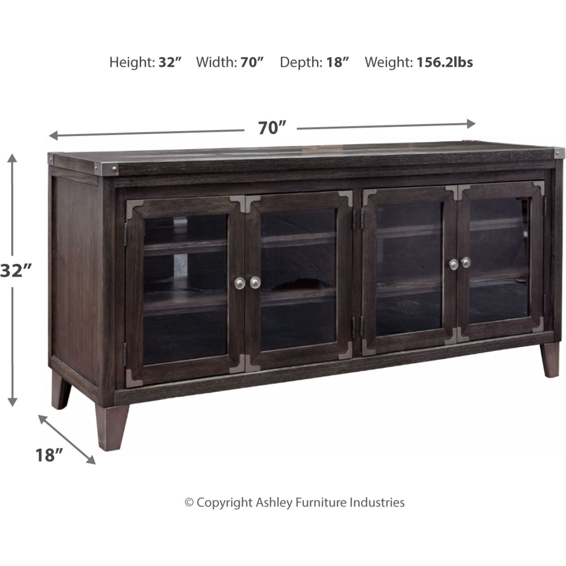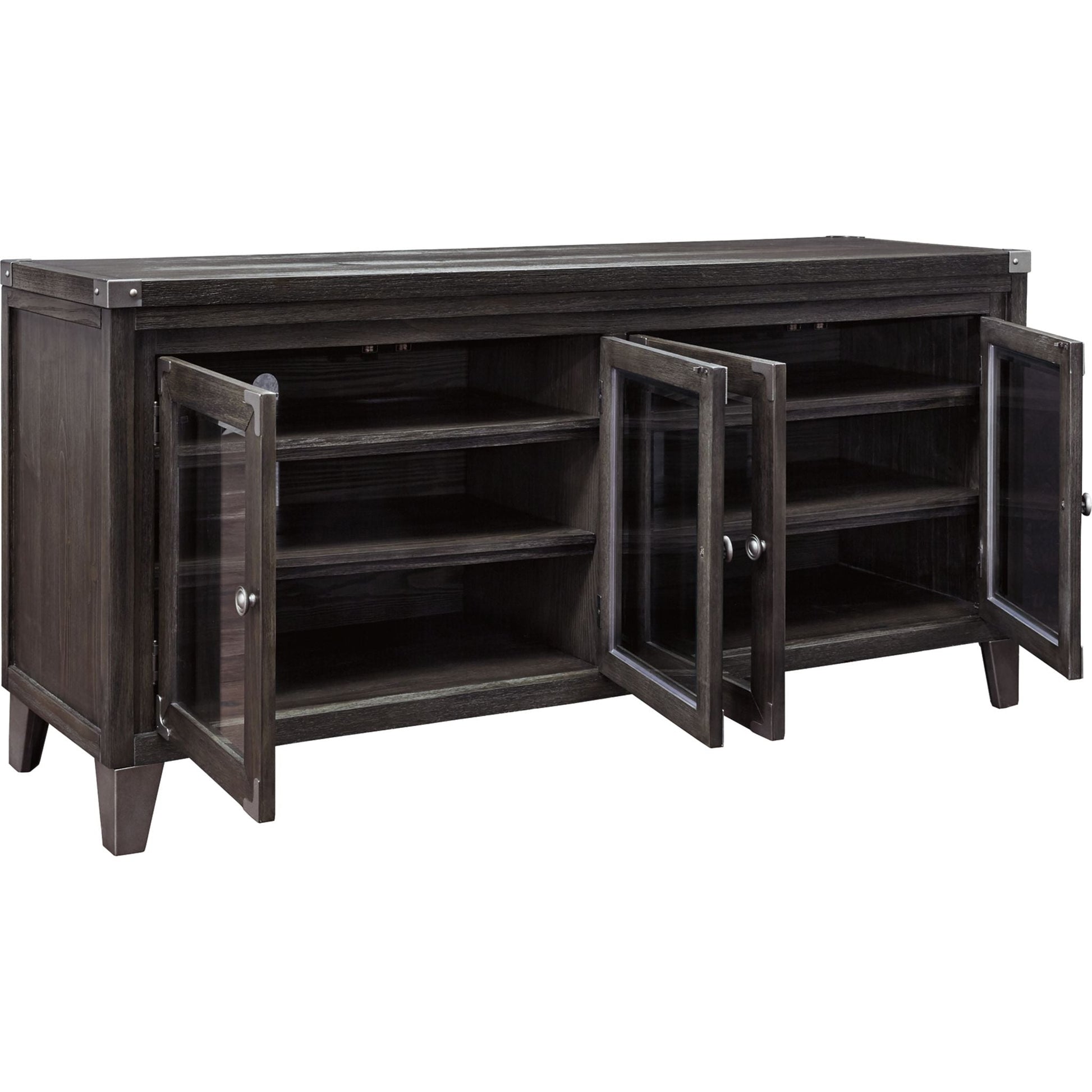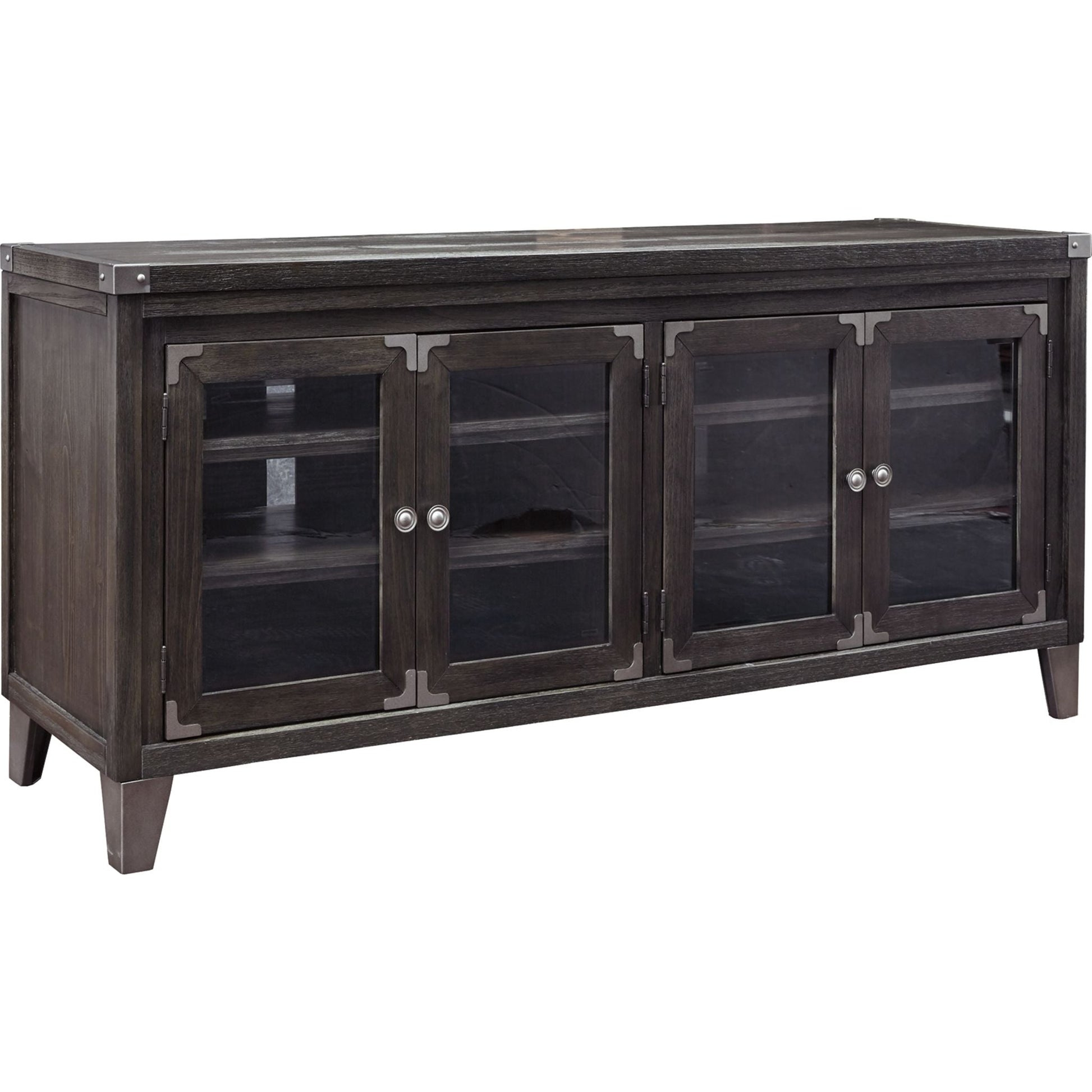 À la fois ultra-contemporain et industriel urbain, le meuble TV Todoe est entièrement à votre goût. Deux placards à double porte avec façades en verre transparent mettent en valeur la beauté de la transparence. Avec sa finition gris industriel qui fait ressortir la complexité du placage en pin, ce meuble TV design brille de mille feux grâce à ses accents de supports et de clous décoratifs, ainsi qu'à ses élégants pieds fuselés en métal couleur zinc, pour une touche de mélange de matériaux raffinée.