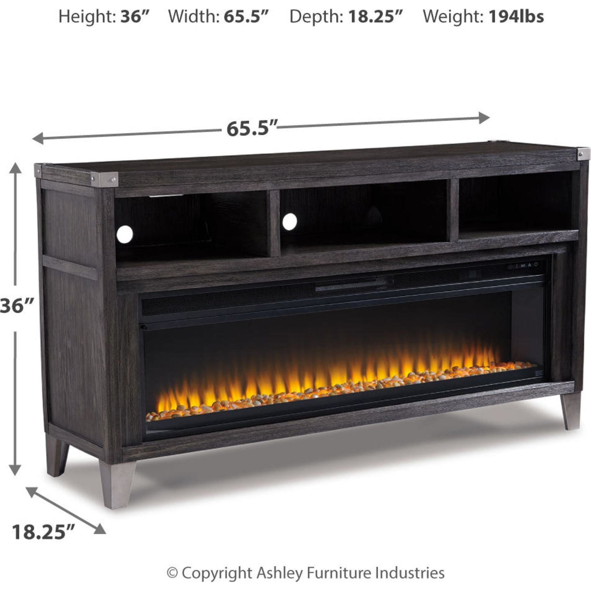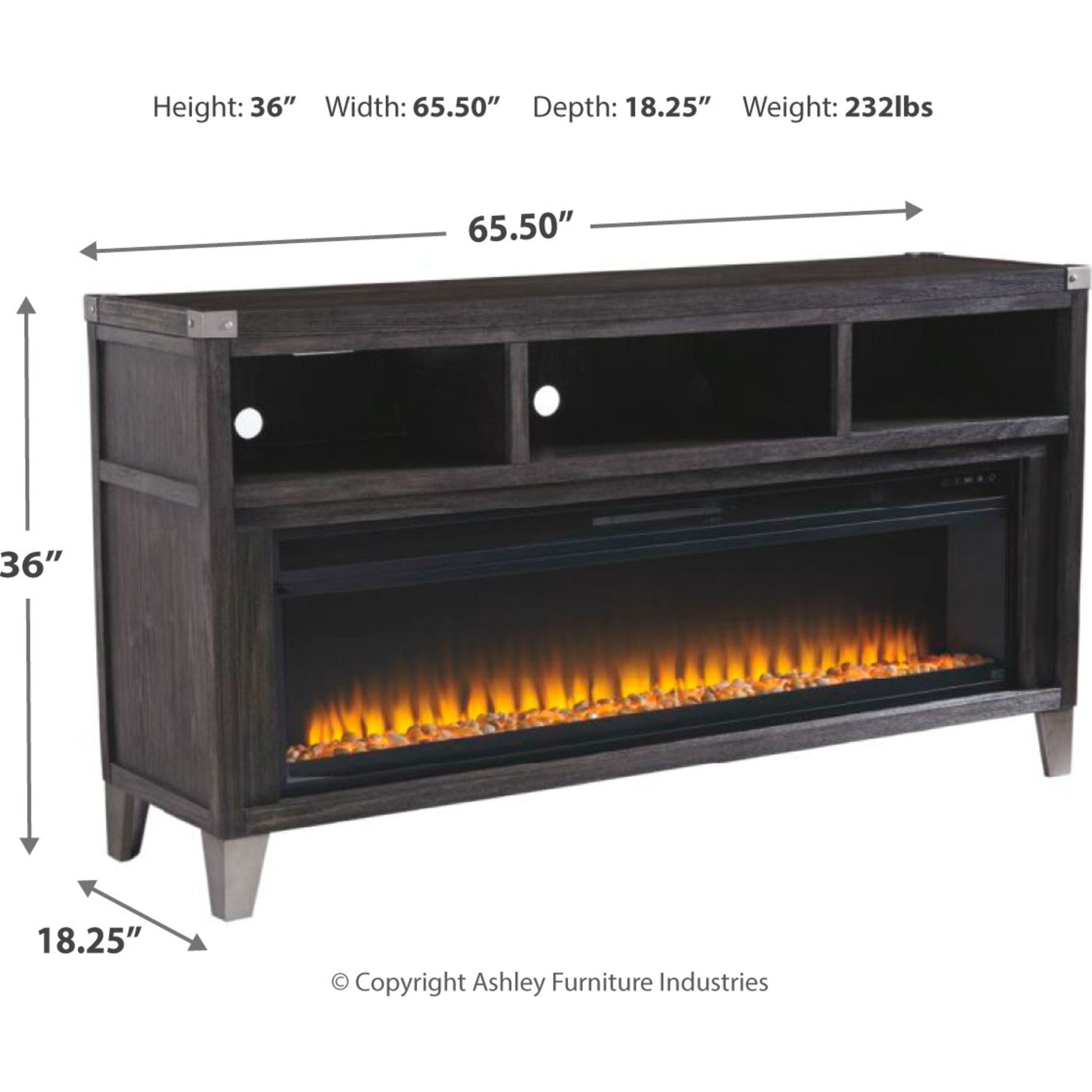 Transformez vos séances télé en un véritable plaisir grâce au grand meuble TV Todoe. Son plateau peut accueillir des téléviseurs jusqu'à 70 pouces. Son style industriel rustique s'harmonisera à coup sûr avec tout décor contemporain grâce à sa couleur grise, ses angles droits, ses équerres d'angle couleur zinc et ses clous décoratifs. Plusieurs niches ouvertes et aérées offrent un espace de rangement généreux, idéal pour garder tous vos appareils électroniques à portée de main. Des passe-câbles pratiques dissimulent les câbles. Pour un confort visuel optimal, la large cheminée intégrée offre un spectacle captivant grâce à sa télécommande. D'une simple pression sur un bouton, ajustez la couleur des flammes, la température ou programmez la minuterie de 12 heures pour un plaisir prolongé. L'effet de flamme réaliste inclut une option de changement de couleur et des inserts en faux cristaux de verre et en pierre naturelle.