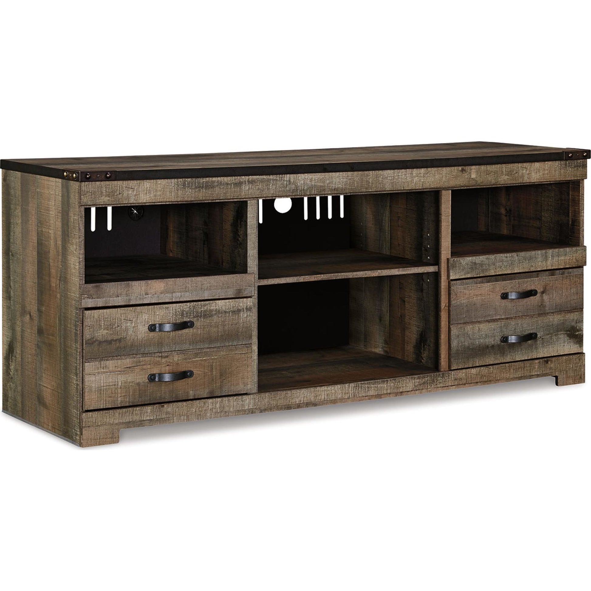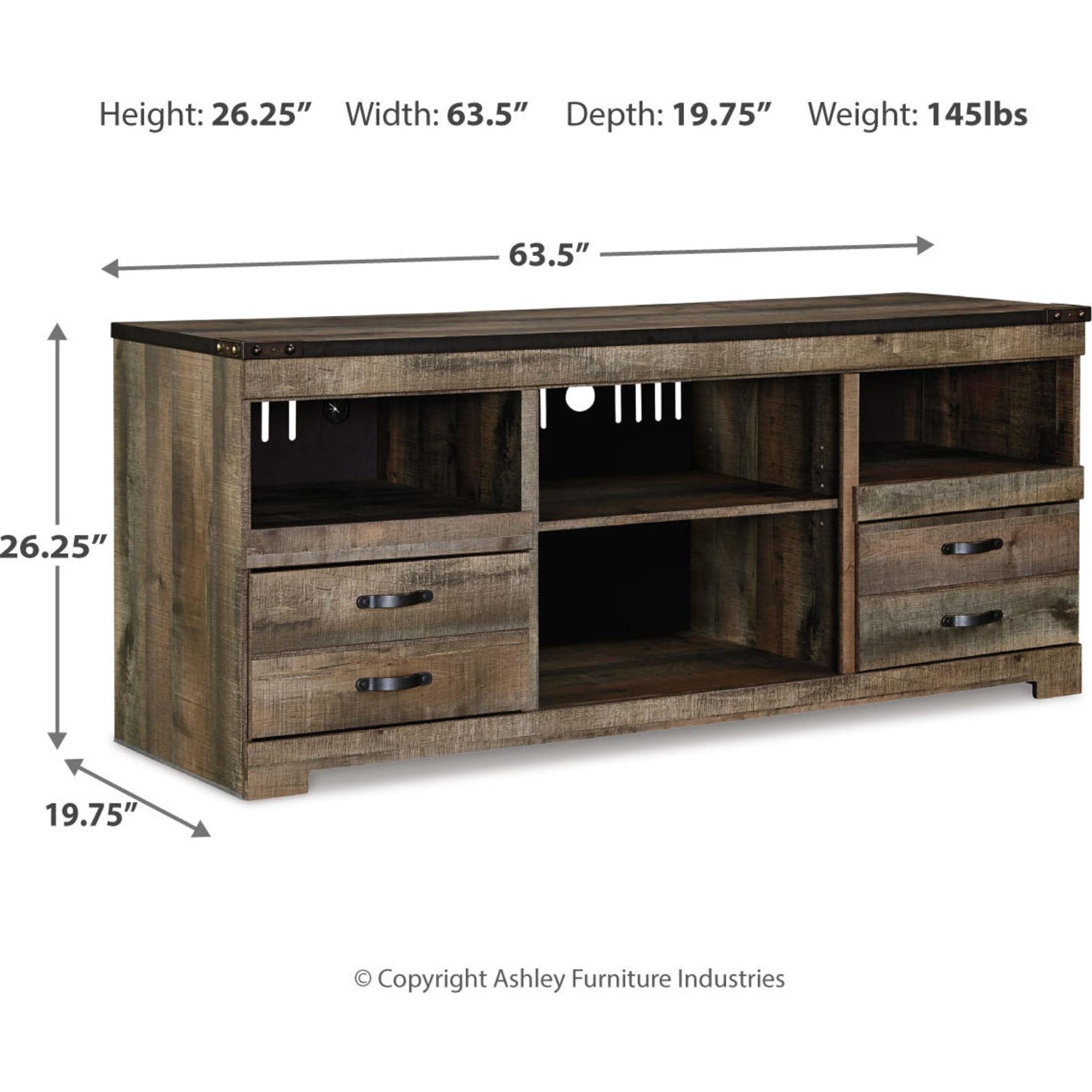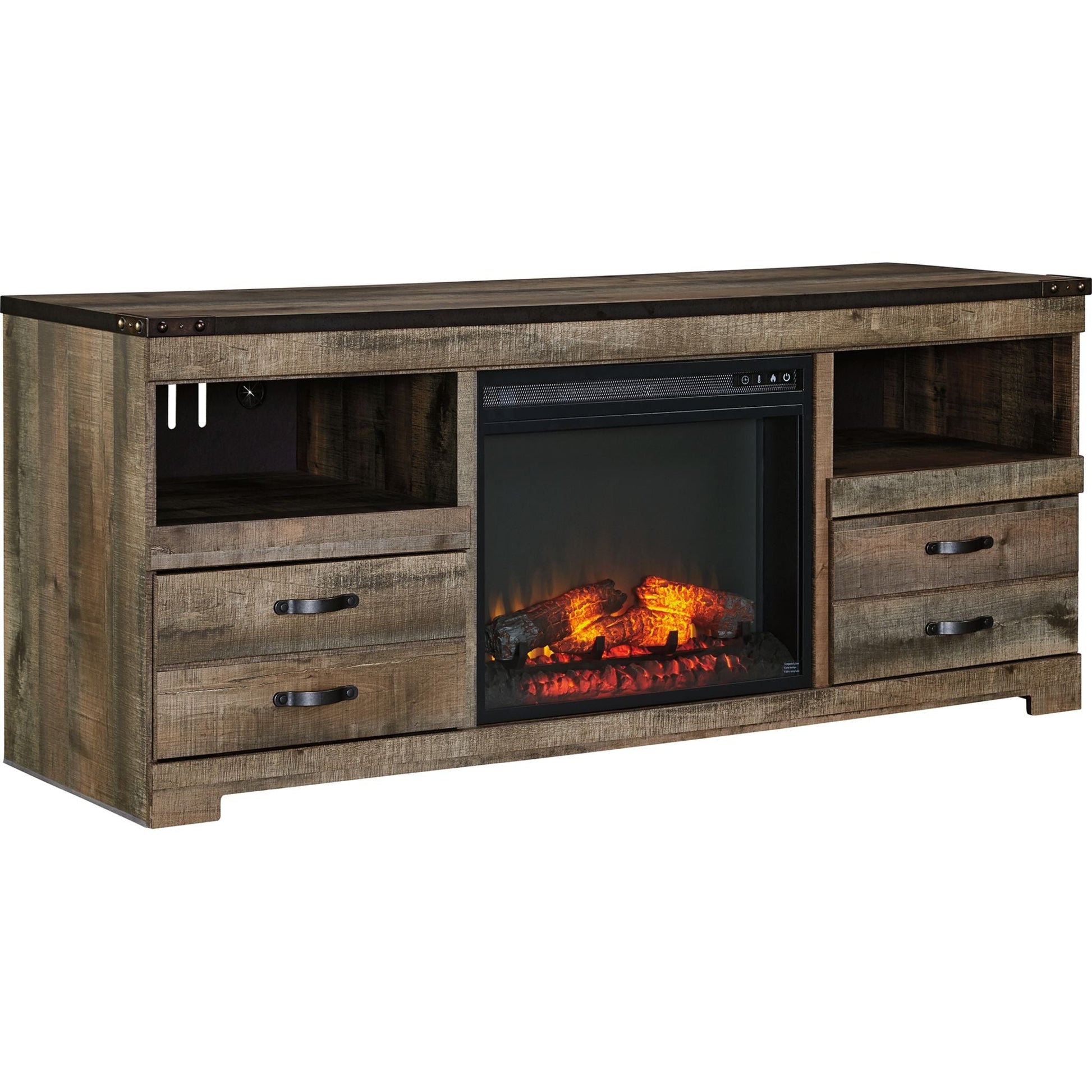Le meuble TV Trinell avec cheminée intégrée apporte une touche de charme à votre cuisine. Son esthétique, à la fois naturelle, épurée et sophistiquée, se caractérise par une finition rustique, des détails façon planches et des clous décoratifs qui évoquent le bois de grange recyclé. En retirant l'étagère, vous pouvez installer la cheminée électrique (en option) pour une ambiance chaleureuse et romantique instantanée.