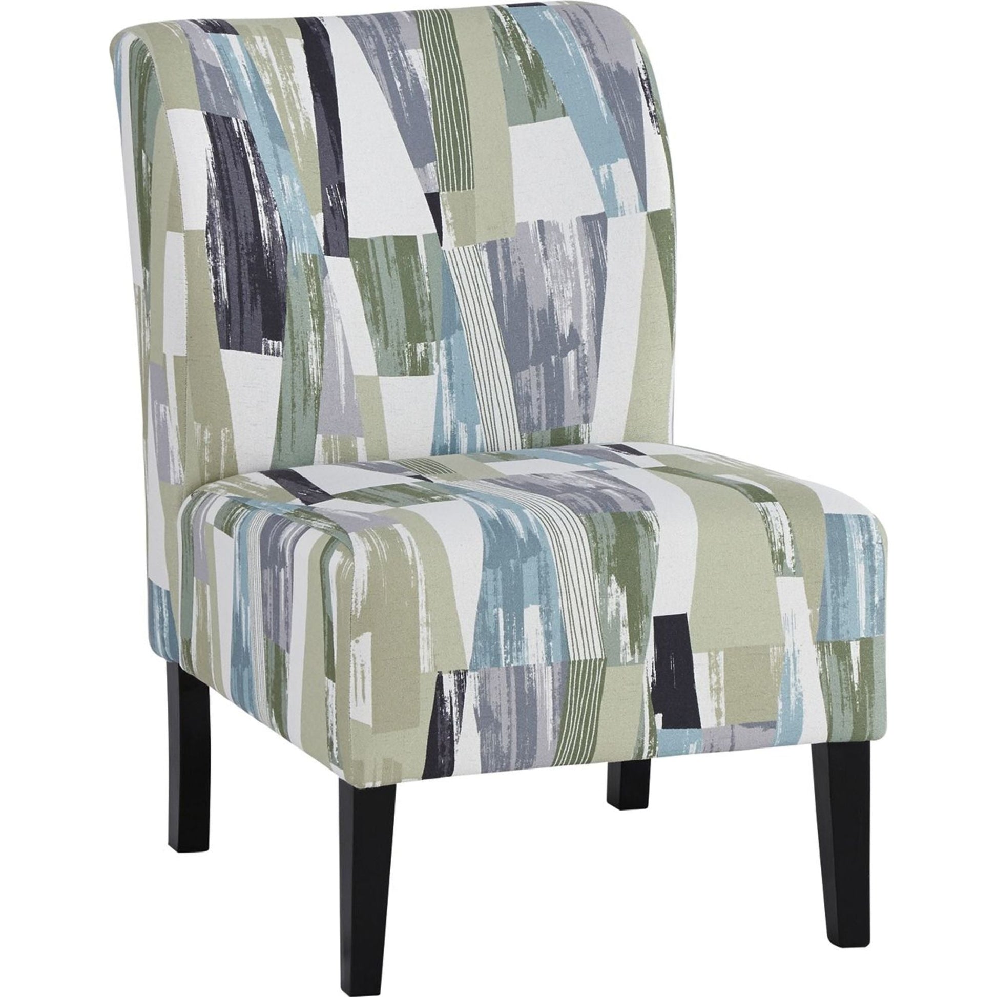 Le fauteuil d'appoint Triptis, très tendance, apporte une touche de fantaisie à votre intérieur. Sans accoudoirs, il est idéal pour les petits espaces en quête de dynamisme. Son tissu doux est recouvert d'un motif contemporain dans des tons de vert, de bleu et de gris. Ses coussins moelleux offrent un confort optimal.