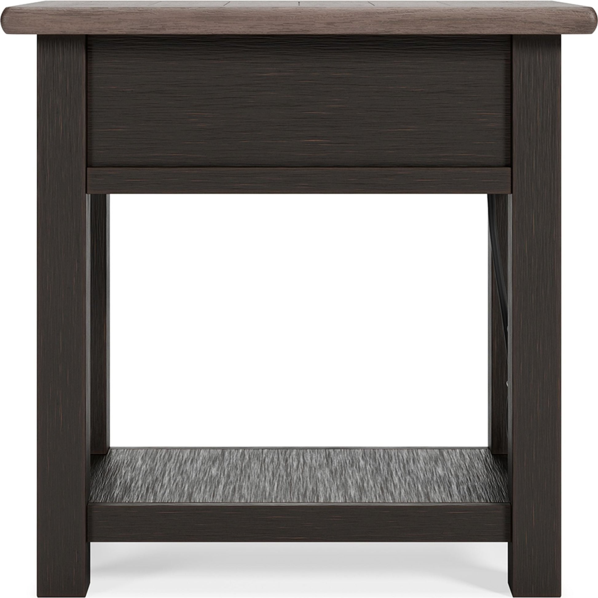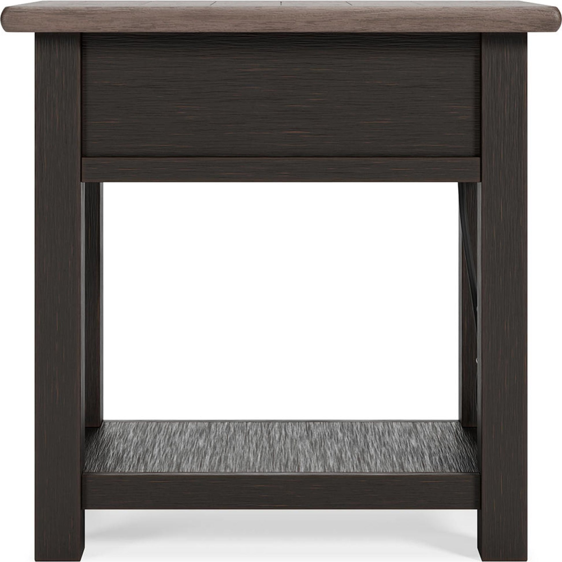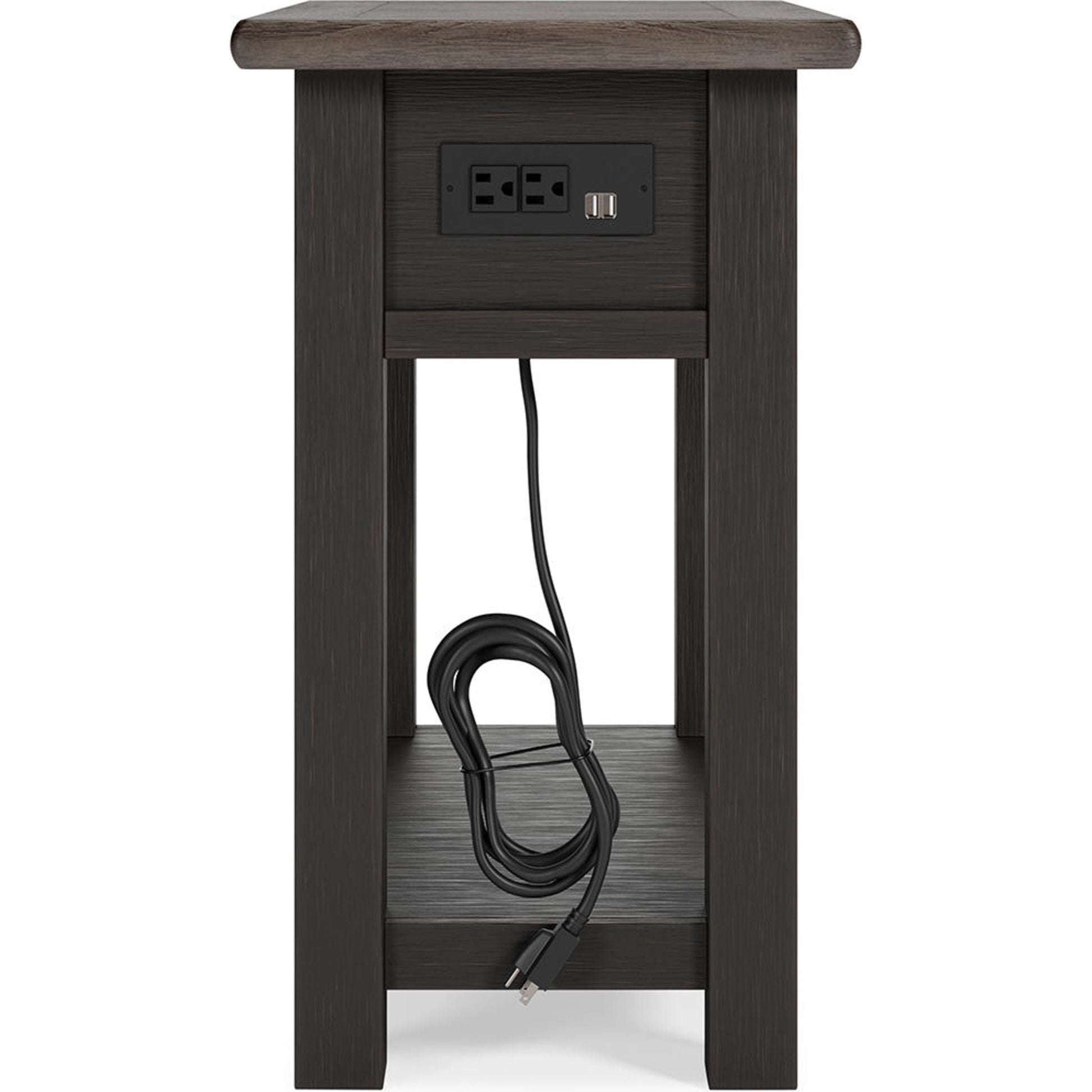 Fabriquée avec soin et dotée d'un style raffiné, la table d'appoint rectangulaire Tyler Creek saura vous charmer. Son esthétique bicolore associe un plateau gris-brun patiné à un piètement noir texturé brossé, à l'effet vieilli. Une étagère intégrée offre un espace de rangement pratique. Son alimentation 110 V intégrée, avec deux ports de chargement USB, permet de recharger facilement vos appareils.