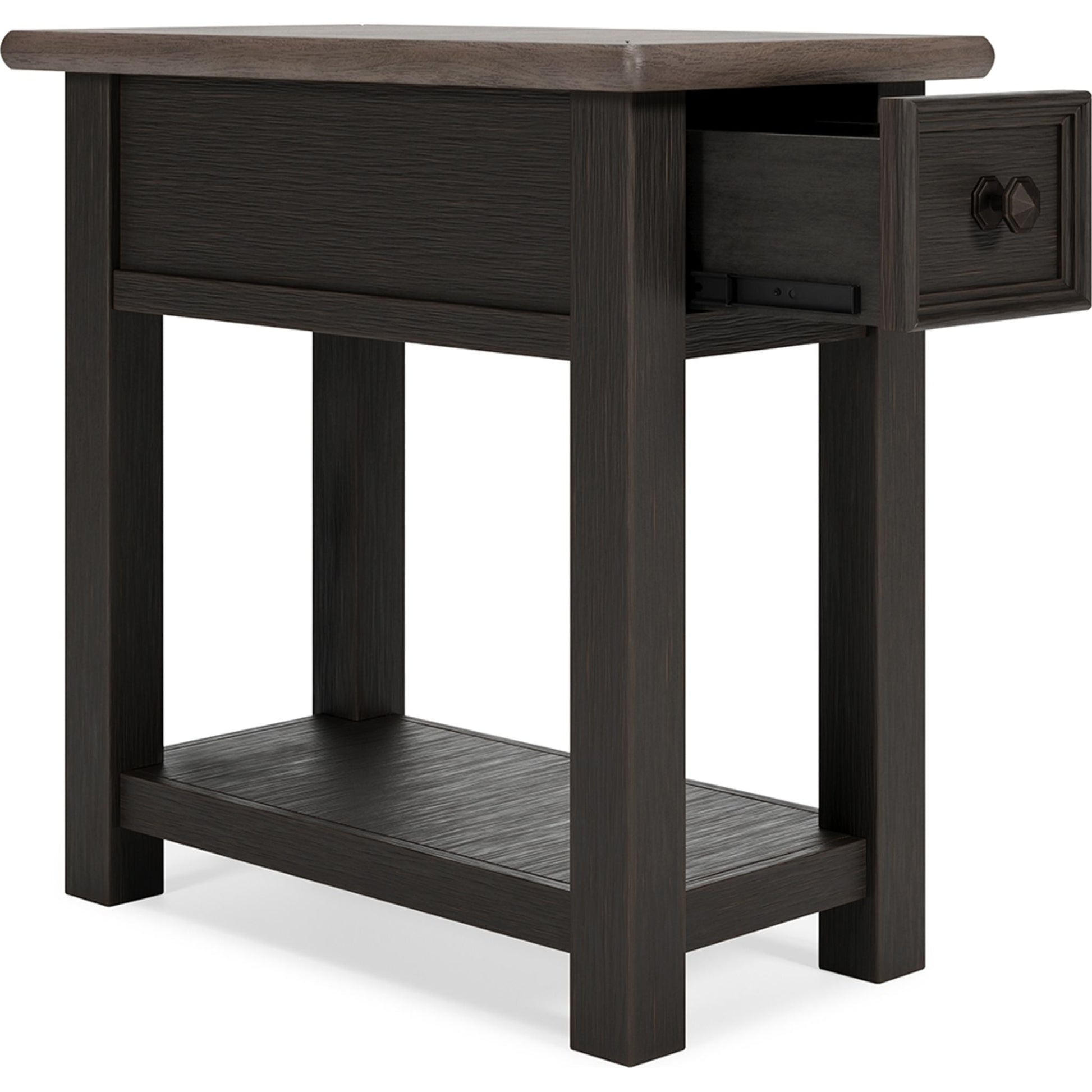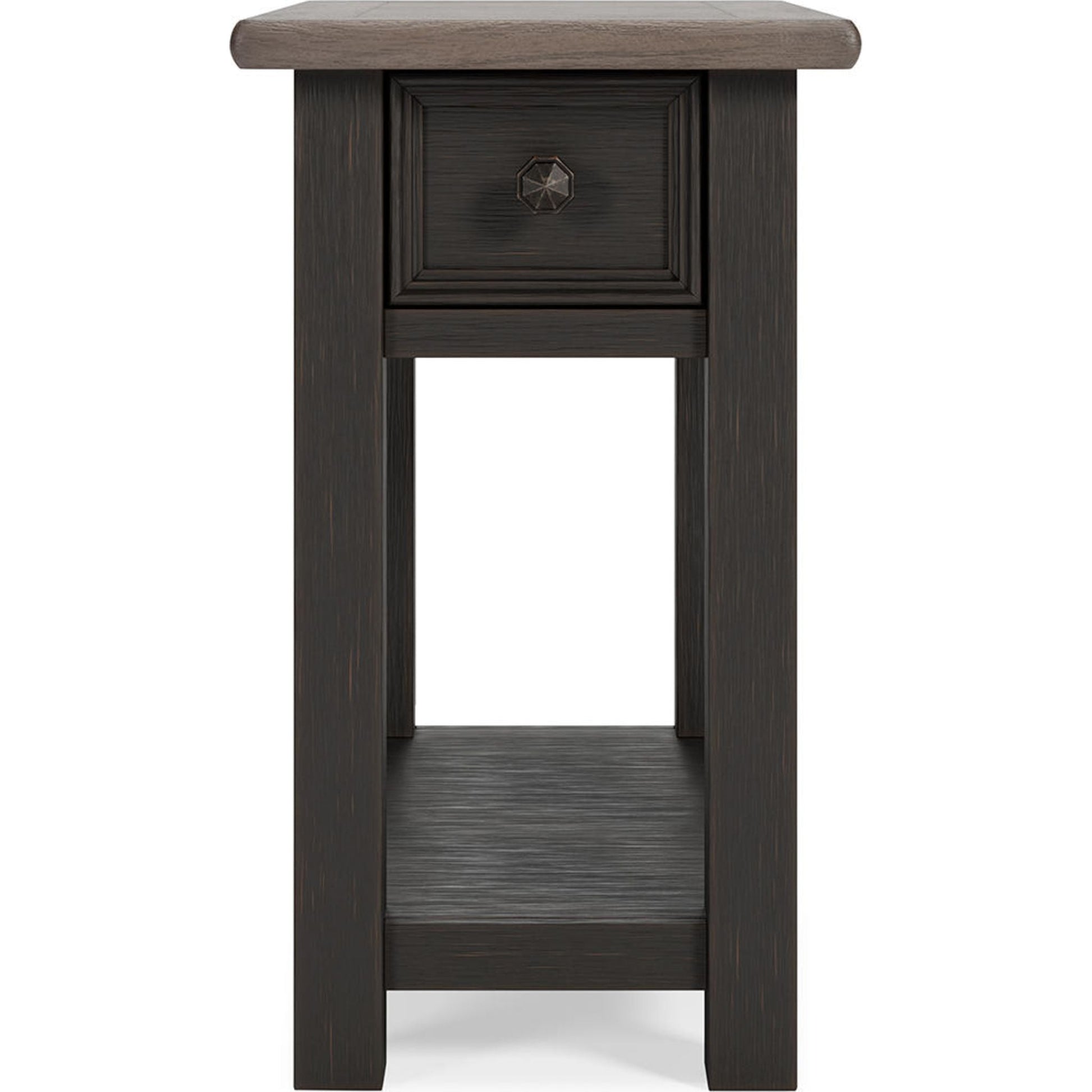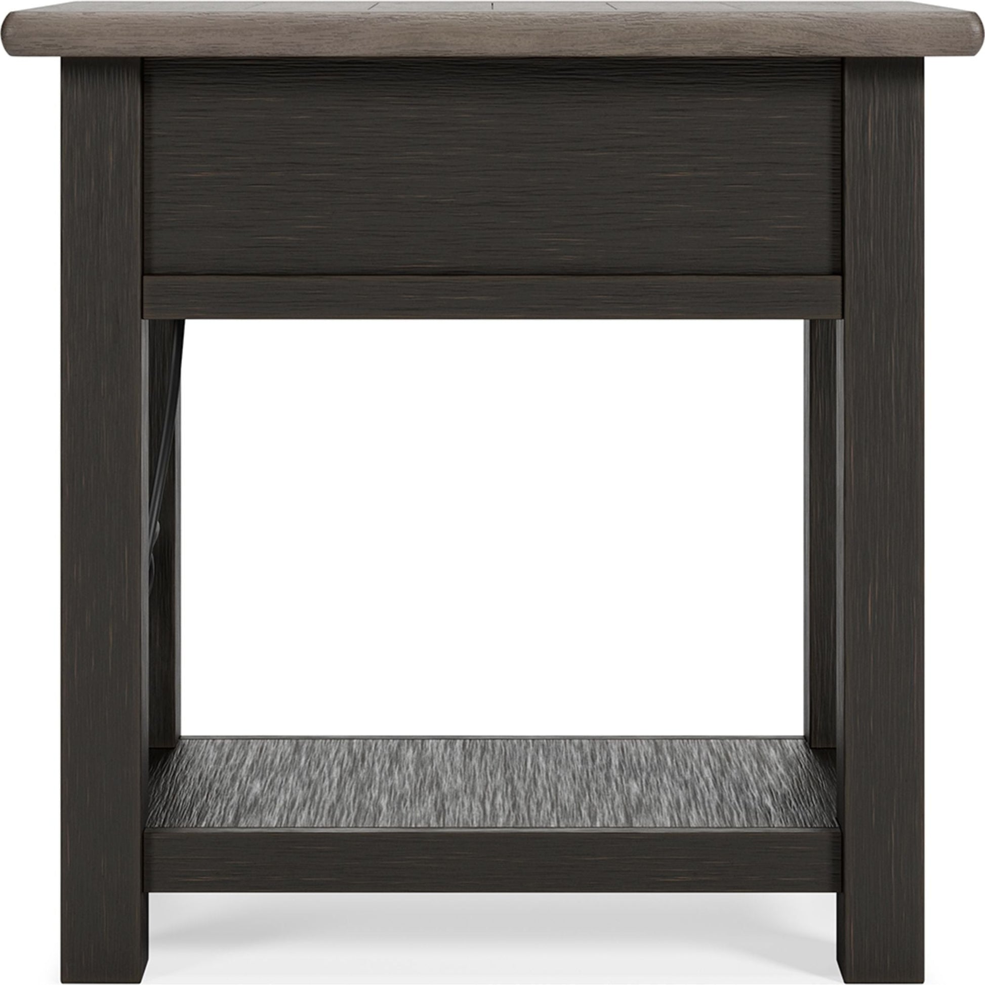 Fabriquée avec soin et dotée d'un style raffiné, la table d'appoint rectangulaire Tyler Creek saura vous charmer. Son esthétique bicolore associe un plateau gris-brun patiné à un piètement noir texturé brossé, à l'effet vieilli. Une étagère intégrée offre un espace de rangement pratique. Son alimentation 110 V intégrée, avec deux ports de chargement USB, permet de recharger facilement vos appareils.