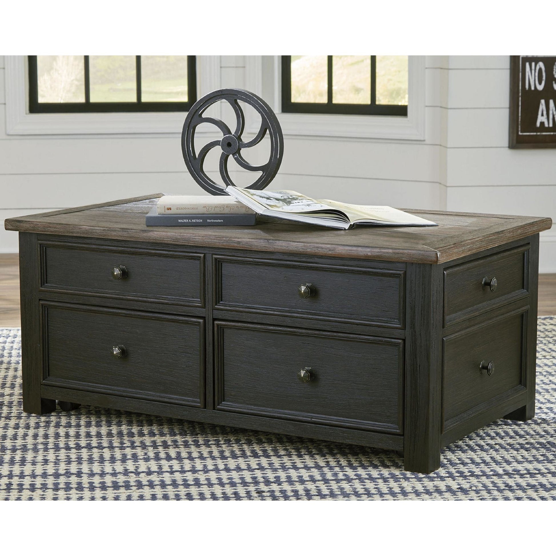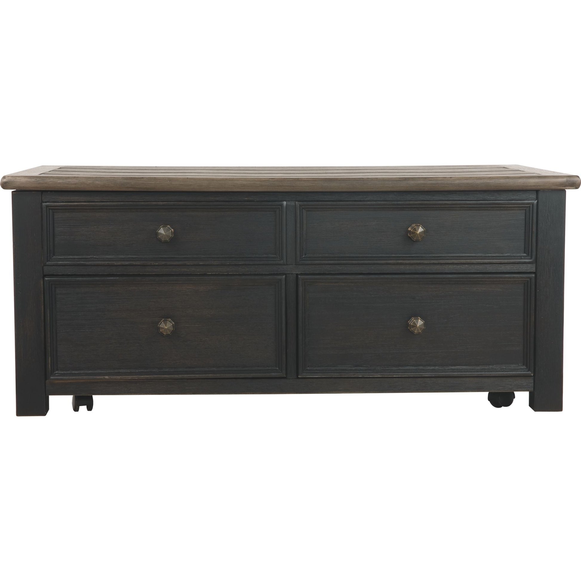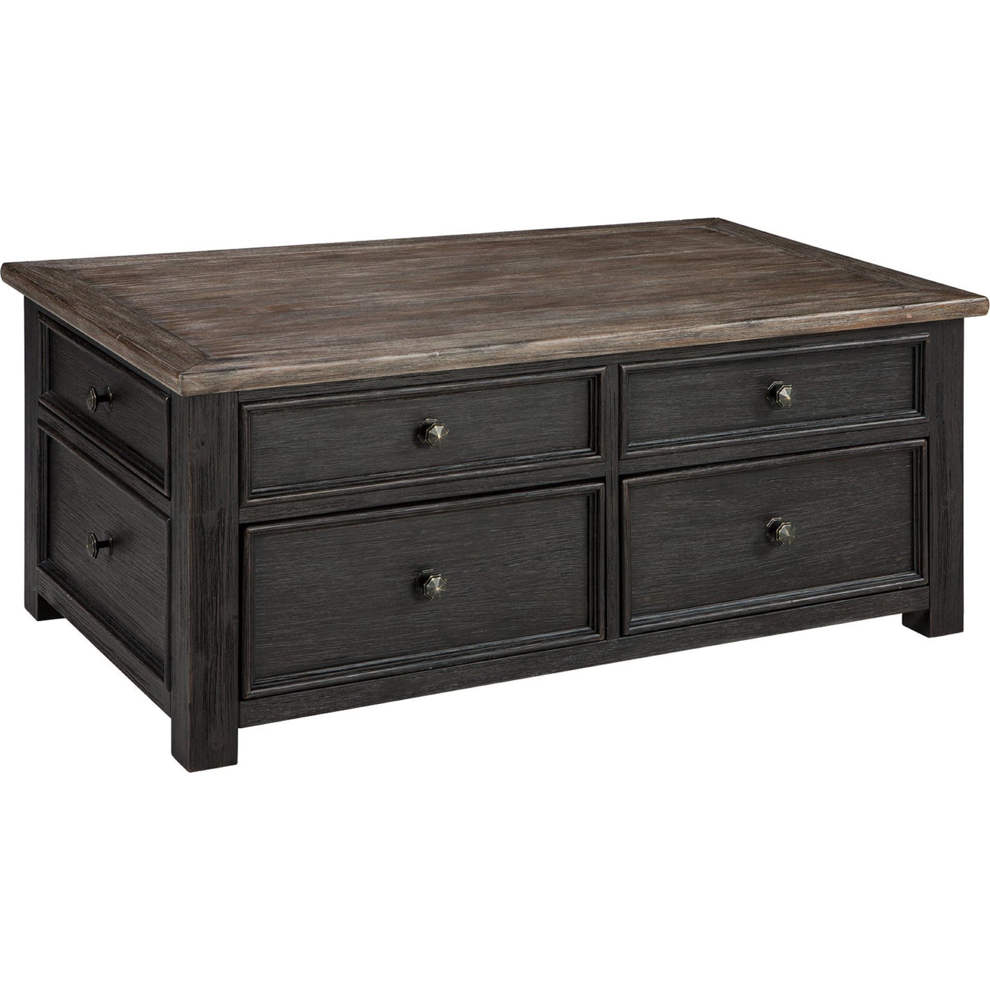 Un style shabby chic avec une touche rustique. La table basse relevable Tyler Creek, avec sa finition noire texturée, fait fureur dans le monde du design actuel. Le grain du bois transparaît sous le plateau gris-brun patiné, pour un charme authentique. Les tiroirs encadrés sont ornés de jolies poignées traditionnelles. Leurs glissières fluides permettent de ranger vos affaires avec style. Le plateau relevable transforme votre espace en coin bureau en un clin d'œil.