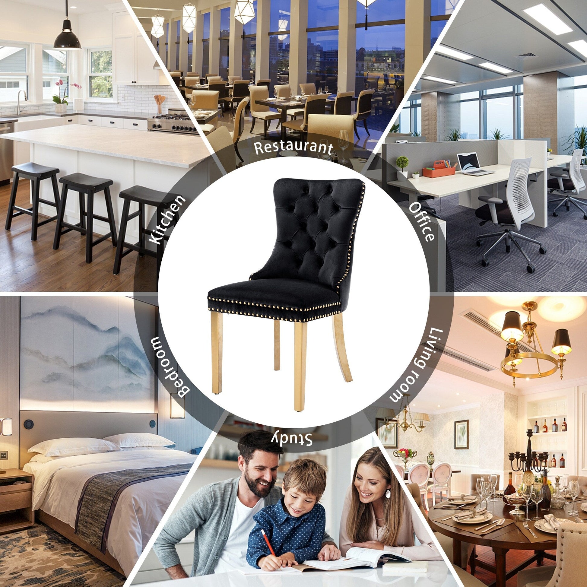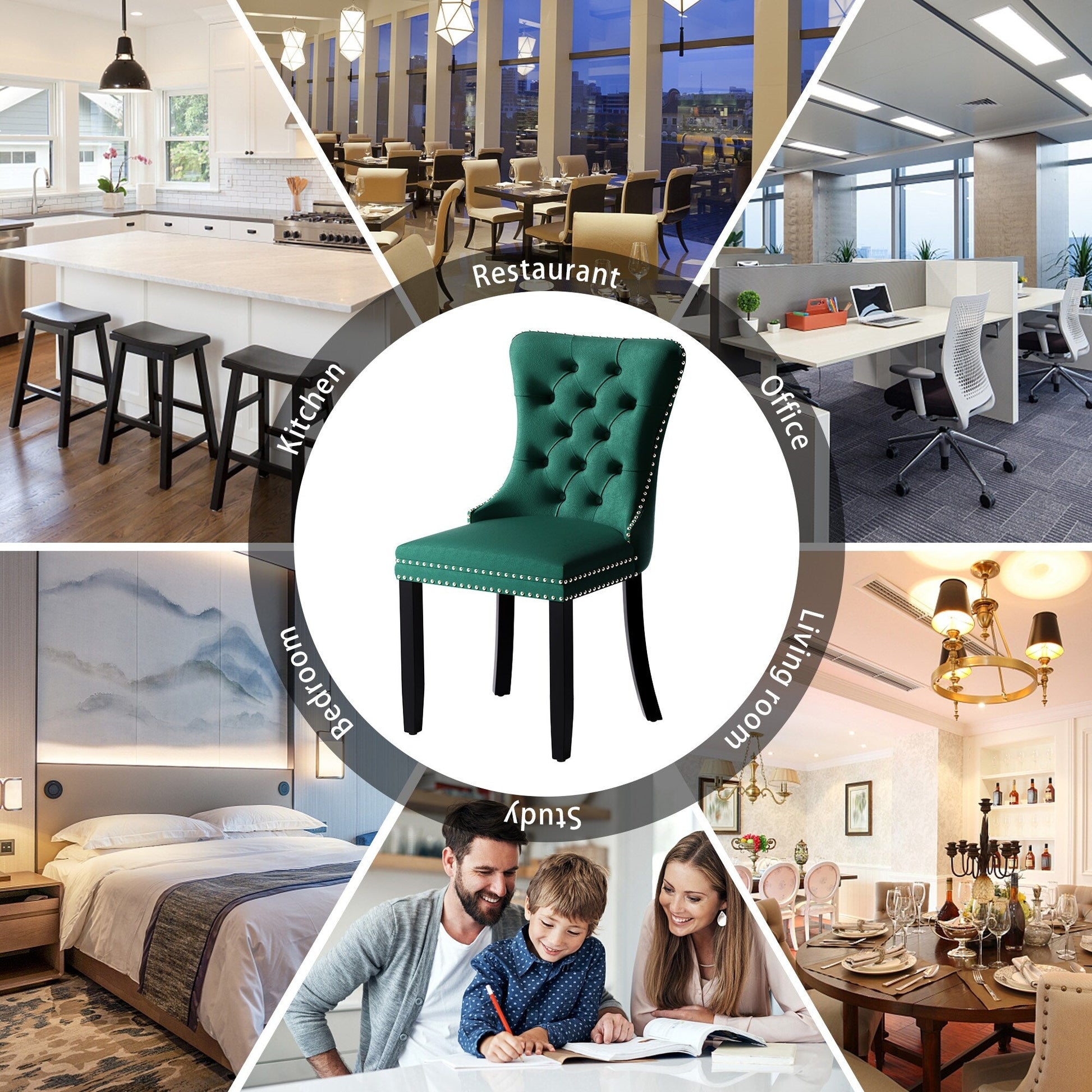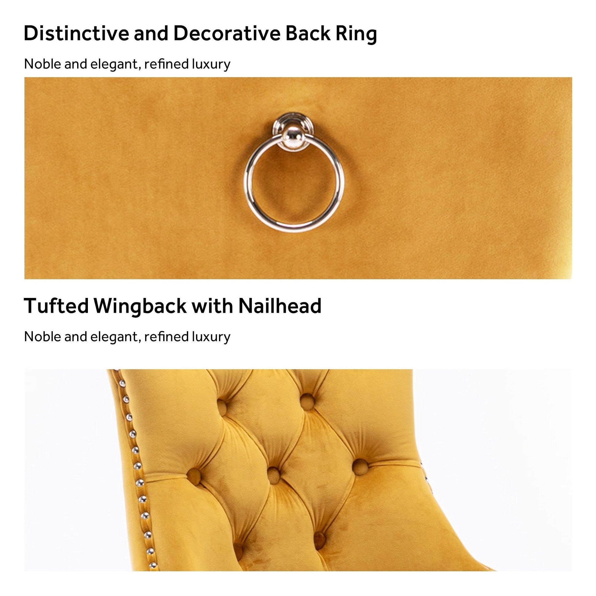Ces chaises de salle à manger à oreilles sont confectionnées en velours de haute qualité, extrêmement résistant à l'usure et inaltérable. Le tissu, épais et luxueux, offre un toucher d'une grande finesse. Cet ensemble de chaises de salle à manger en velours arbore un style mid-century résolument moderne. Dotées d'un haut dossier, ces chaises assurent un excellent maintien du dos. Les nombreux rivets décoratifs incrustés autour du coussin et du dossier confèrent à l'ensemble une allure noble et élégante, et une impression de luxe raffiné. Nous fournissons une notice de montage et des vidéos explicatives. Pour toute question, n'hésitez pas à nous contacter.