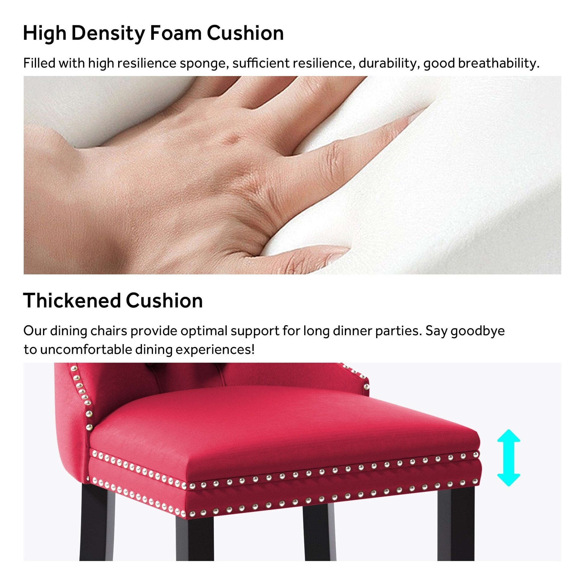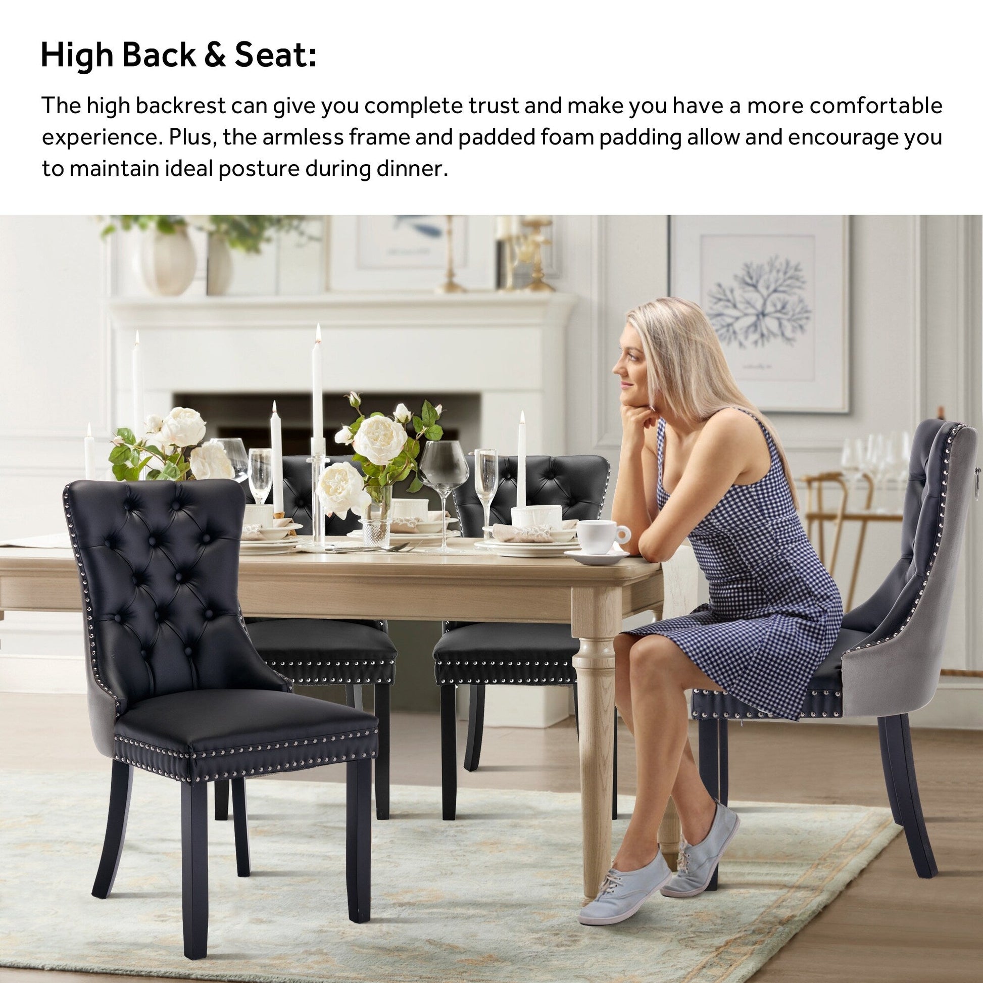 - Chaises de salle à manger rembourrées et robustes : la structure et les pieds de la chaise sont en bois massif et suffisamment solides pour supporter jusqu’à 136 kg (300 livres).
