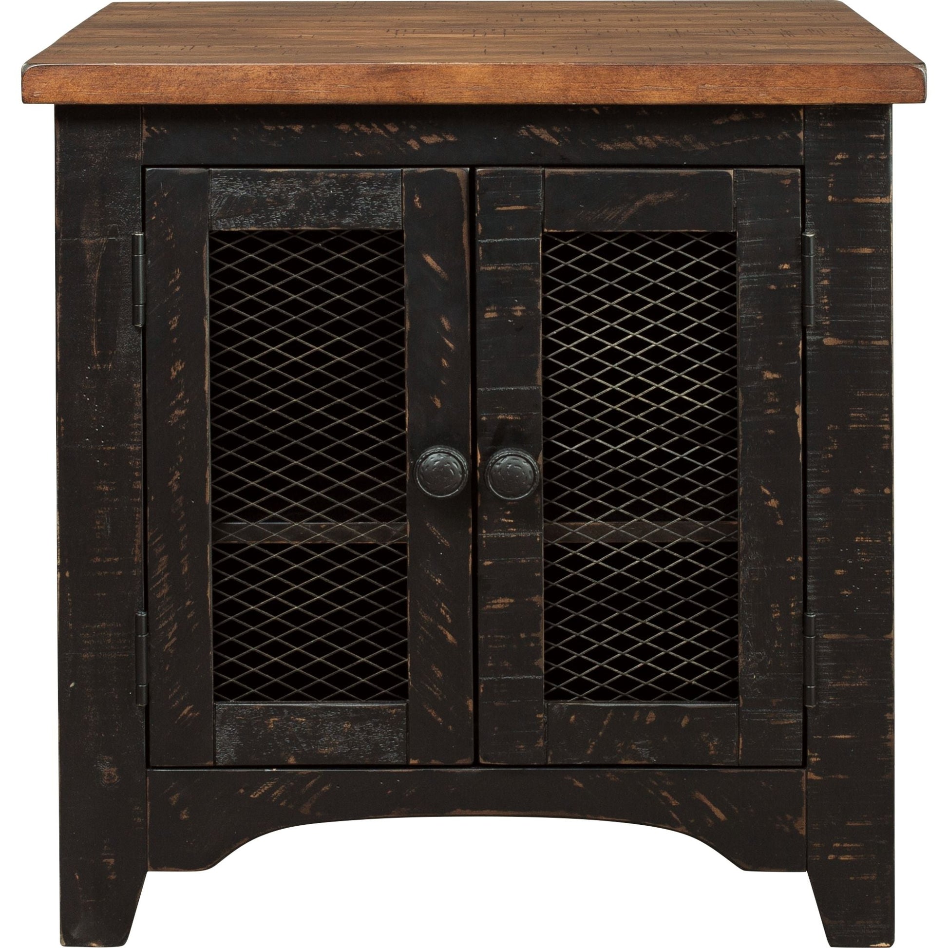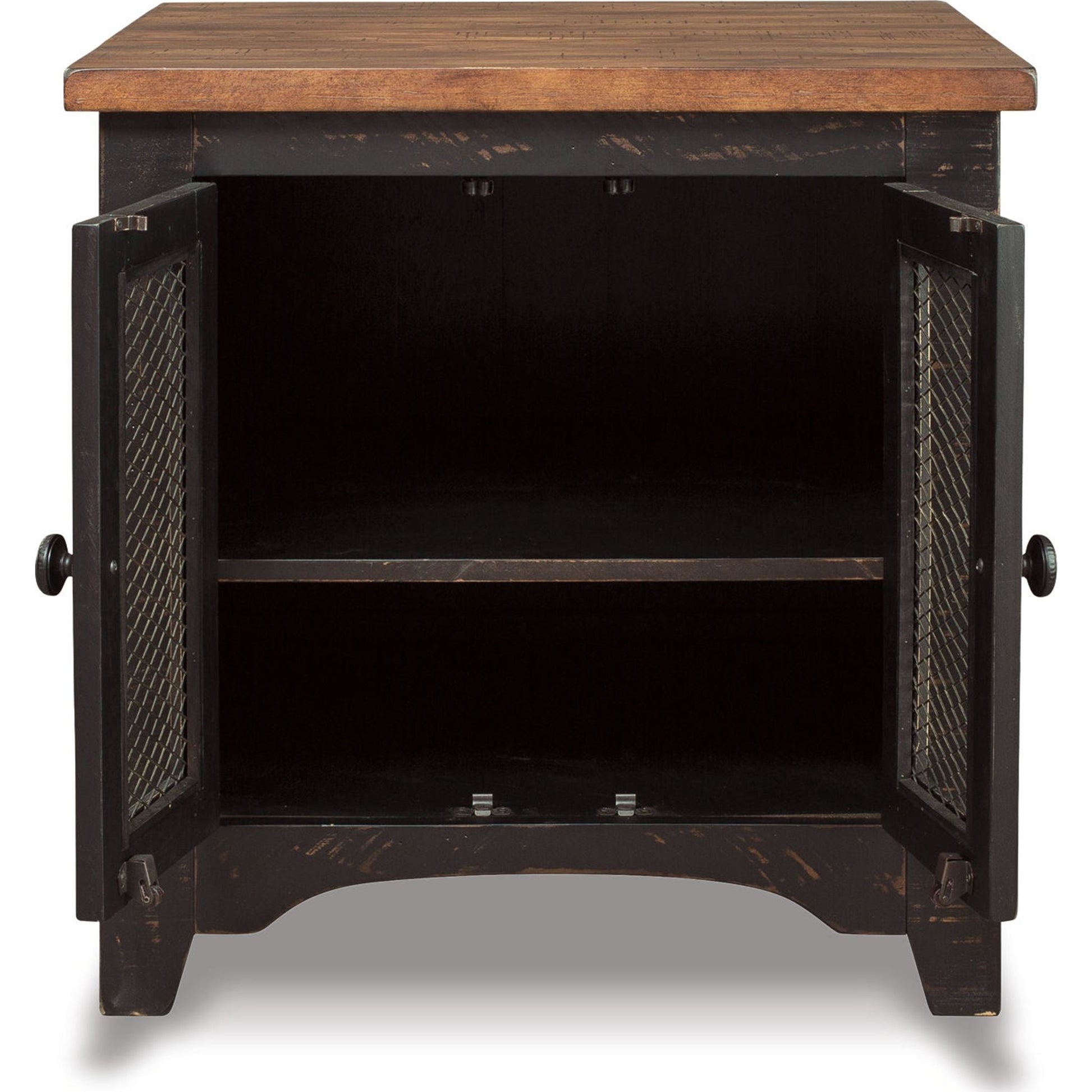 Pour les amateurs de charme rustique, la table d'appoint bicolore Valebeck est un véritable atout. Son style unique, avec son effet planches, ses marques d'usure et ses portes en treillis métallique, lui confère un caractère authentique.
