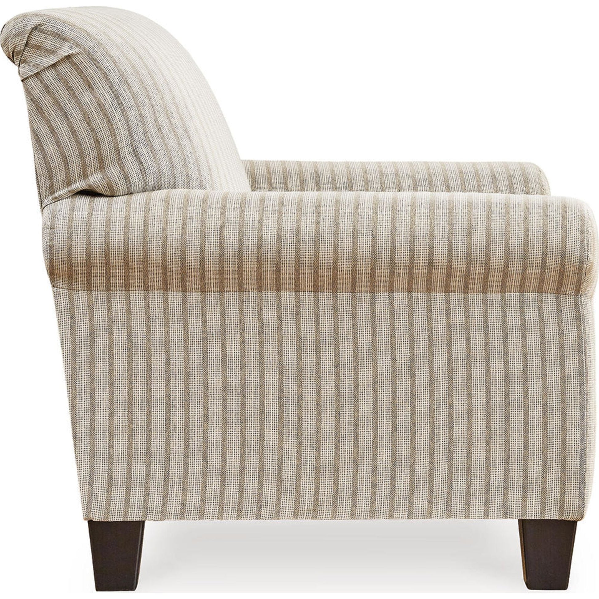 Envie d'un style simple et intemporel ? Découvrez le fauteuil Valerani. Son confort absolu s'intègre parfaitement à l'ambiance décontractée de votre salon. Un motif à rayures classique rehausse le charme naturel du tissu neutre, tandis que son assise profonde et moelleuse apporte une touche de douceur à ce meuble chic.