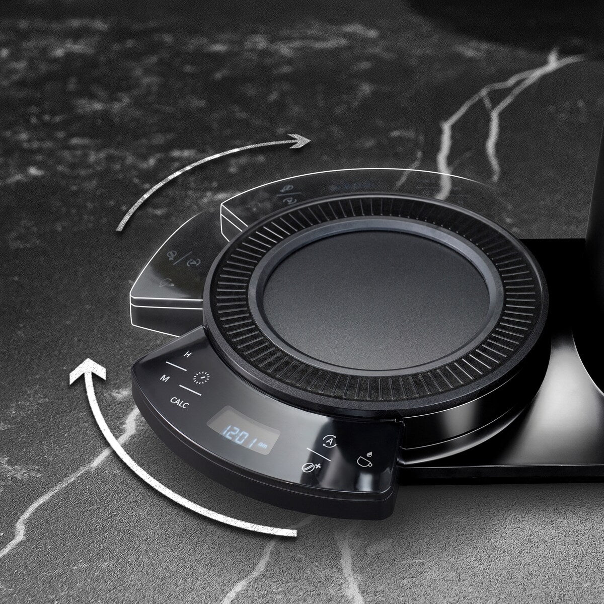 - Le tableau de bord pivotant permet de positionner la cafetière dans différentes orientations sur le plan de travail. Conçue pour les gauchers comme pour les droitiers.