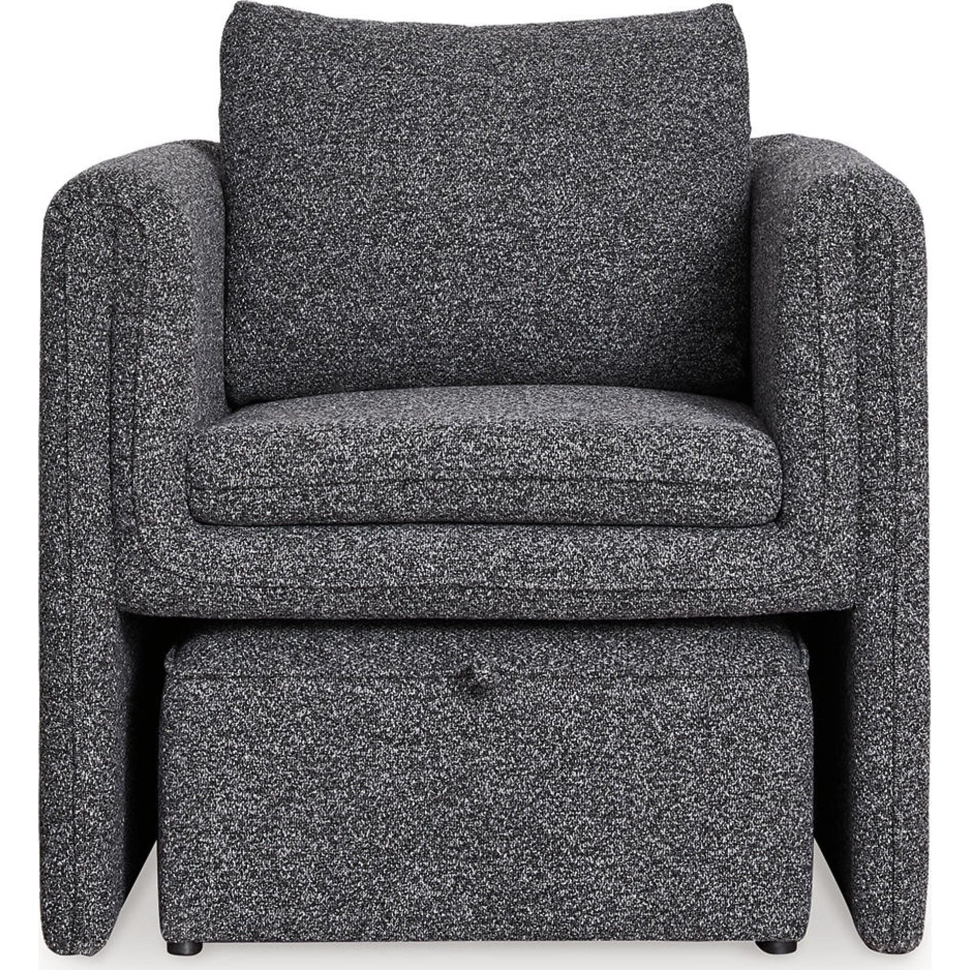 Créez un coin de détente élégant avec le fauteuil et son repose-pieds Vreni, un ensemble gain de place. Son revêtement sophistiqué en anthracite et noir apporte une touche de modernité aux petits appartements, salons, chambres d'étudiant et bien plus encore. Installez-vous confortablement dans le fauteuil et détendez-vous. Besoin de surélever vos jambes ? Il vous suffit de sortir le repose-pieds qui se glisse discrètement dessous. Le petit plus ? Cet ensemble est livré entièrement monté.