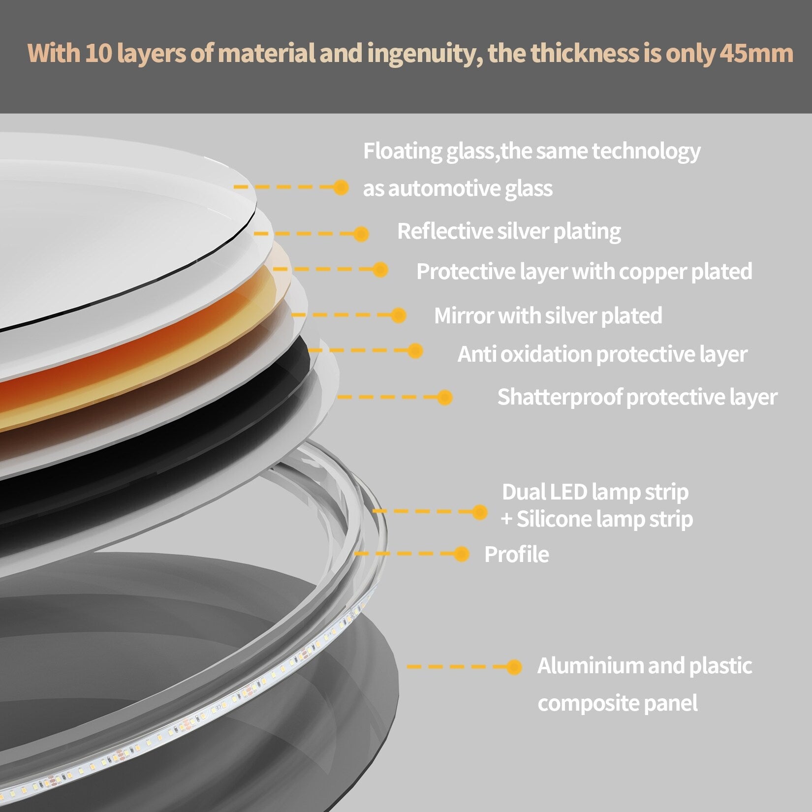 Matériaux : Cadre en alliage d'aluminium (20 %) + Miroir en verre HD (80 %)
