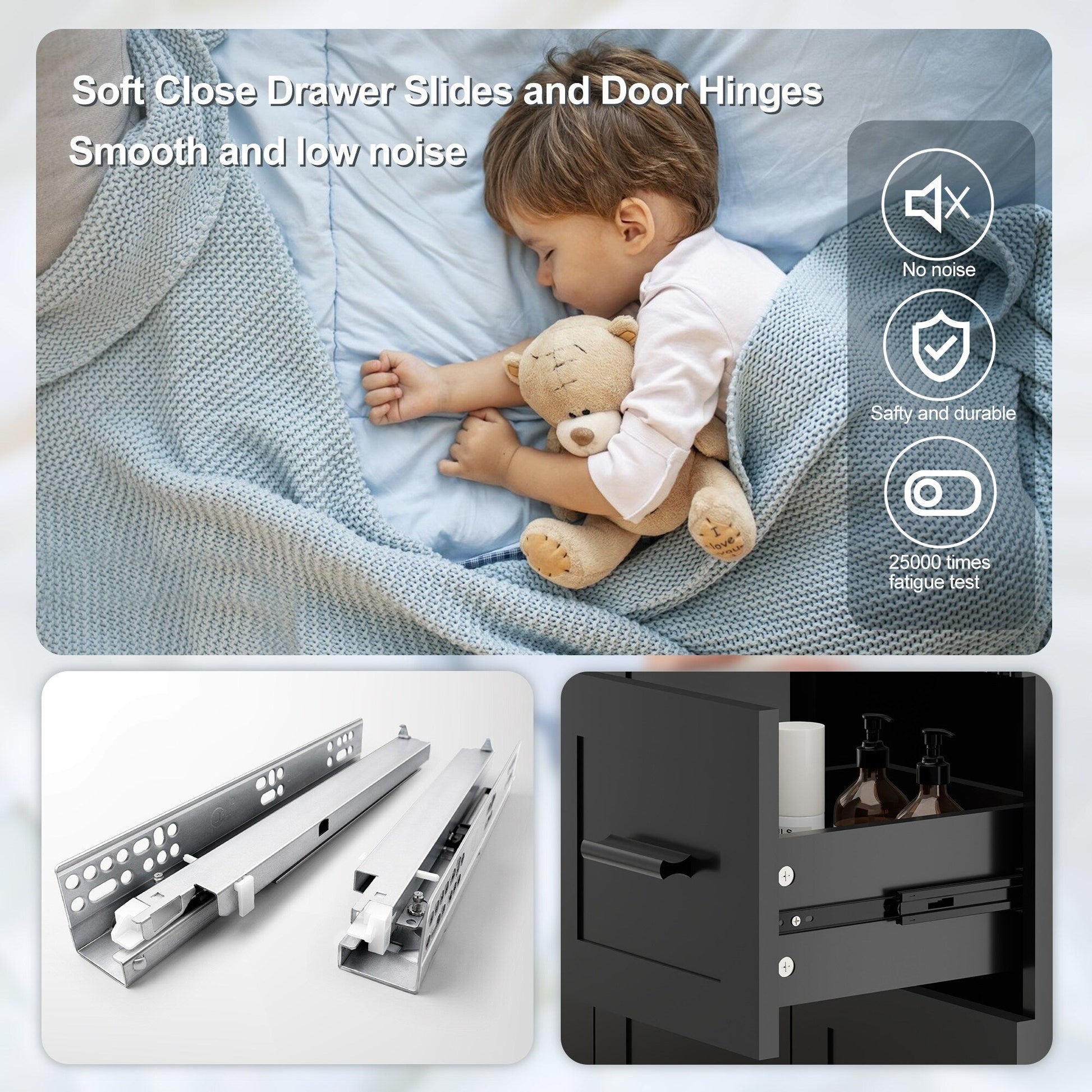 - Construction durable et hygiénique : façades de tiroirs de 0,6 pouce d’épaisseur résistantes aux rayures (imperméables et faciles à nettoyer), poignées en alliage de zinc noir mat antirouille.
